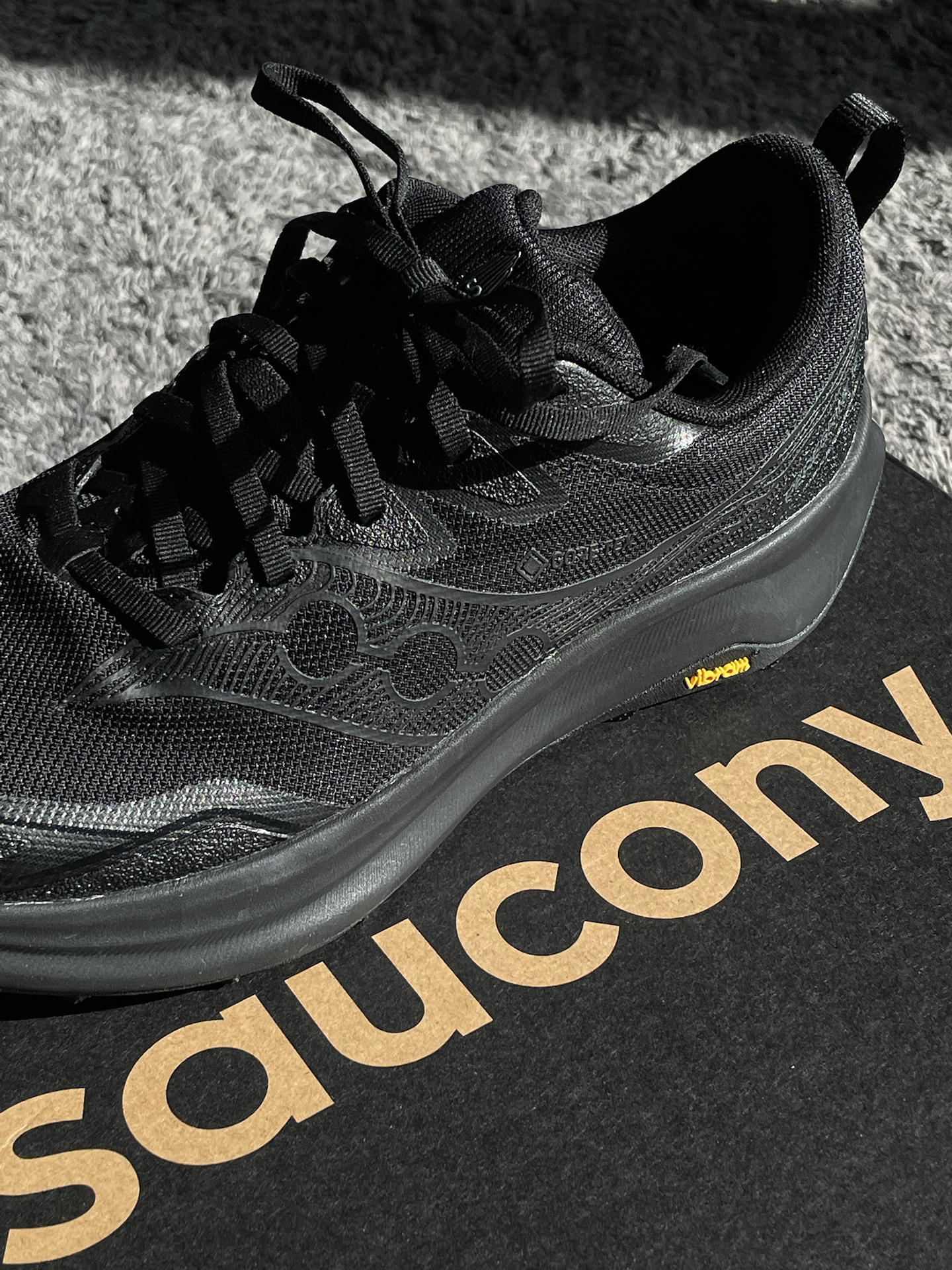 最近穿了 Saucony 游隼16,整体感觉挺稳的。鞋子重量很轻,上脚贴合脚型,不顶脚也不松,尺码正常,按平时穿的就行。 脚感偏扎实,中底有缓冲但不塌,重心不高,跑和走的时候不晃脚,安全感不错。作为偏户外定位的鞋,这点我比较看重。 我选的是全黑配色,日常也好搭。GTX 鞋面防水性不错,湿地路面不容易湿脚,外底抓地力和耐磨性都在线,冬天户外跑或通勤穿都合适。 #跑鞋新品速报 #穿上这双跑鞋去...