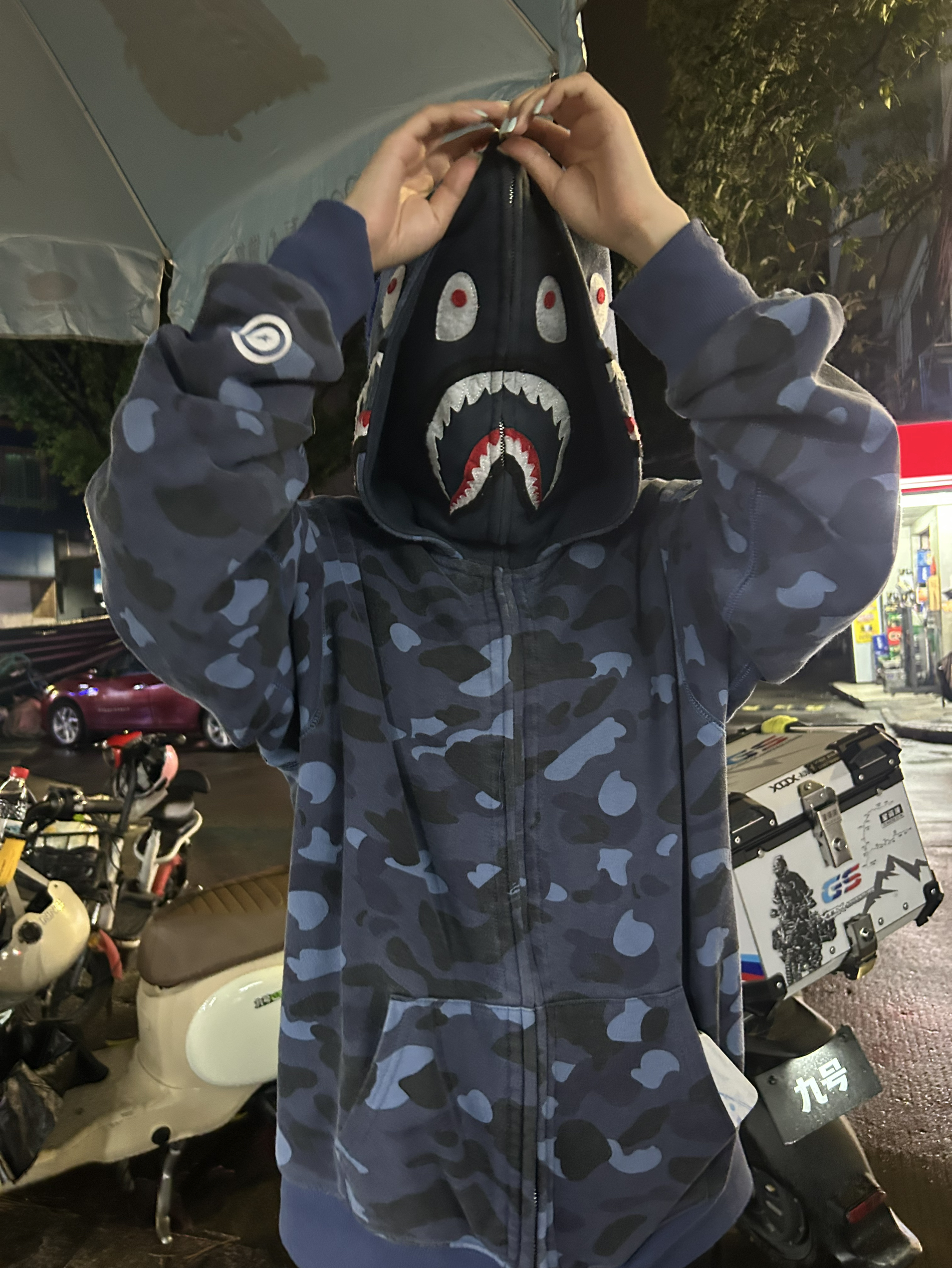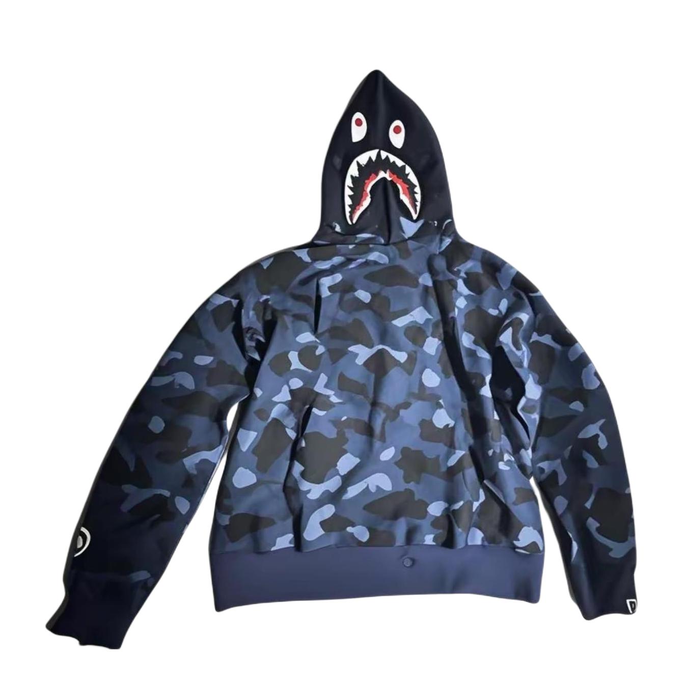 太对味了!标志性的鲨鱼嘴印花是品牌经典,藏青迷彩自带街头气场,连帽设计超有范,版型宽松还百搭,潮人本命款~穿上他回头率超高!!😃搭配牛仔裤或运动裤绝佳👍!