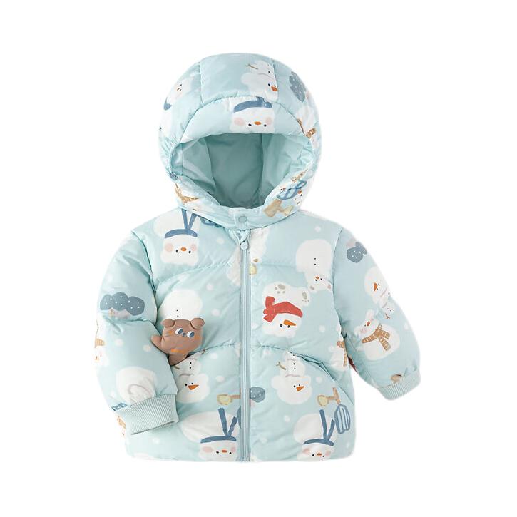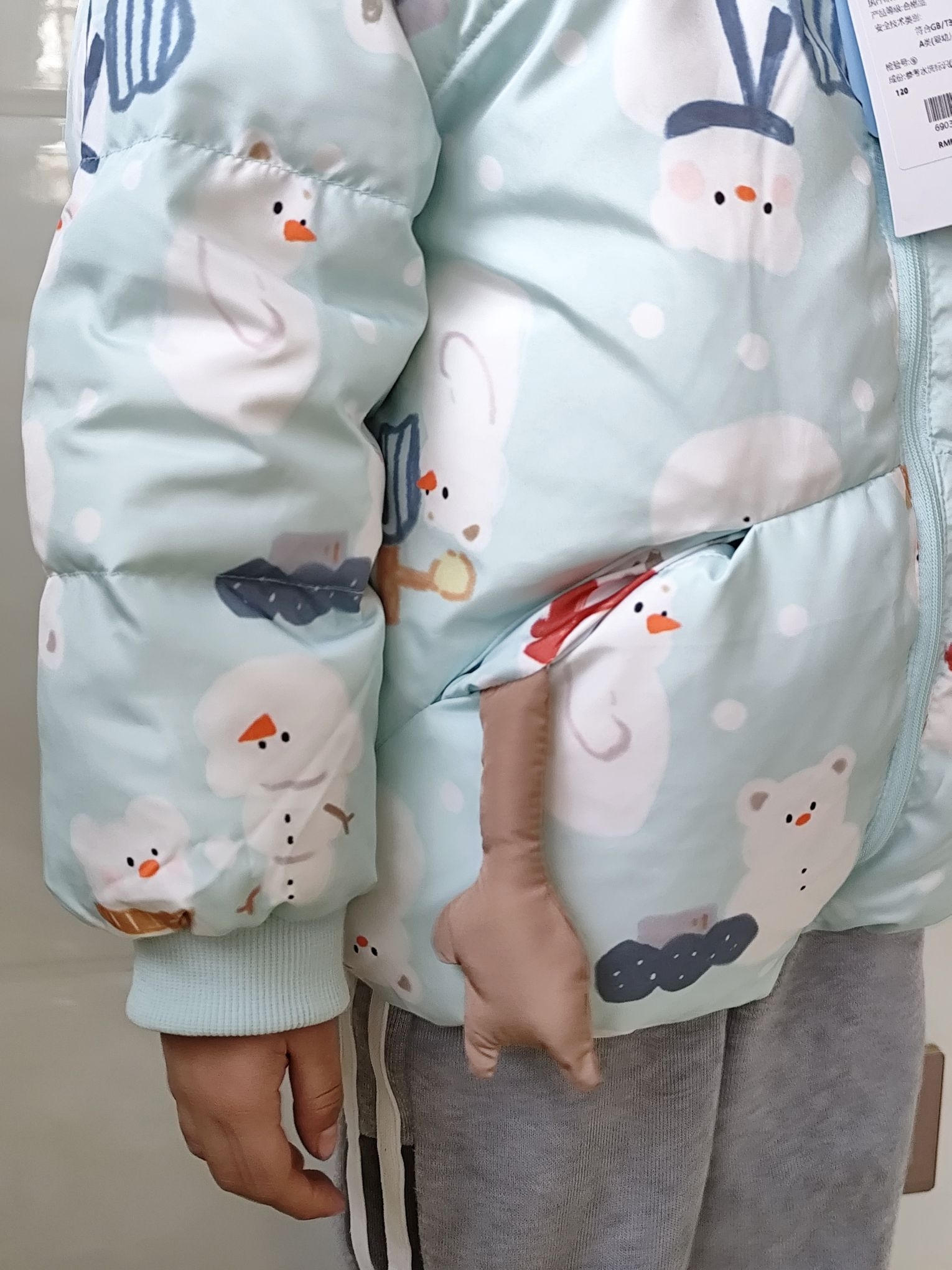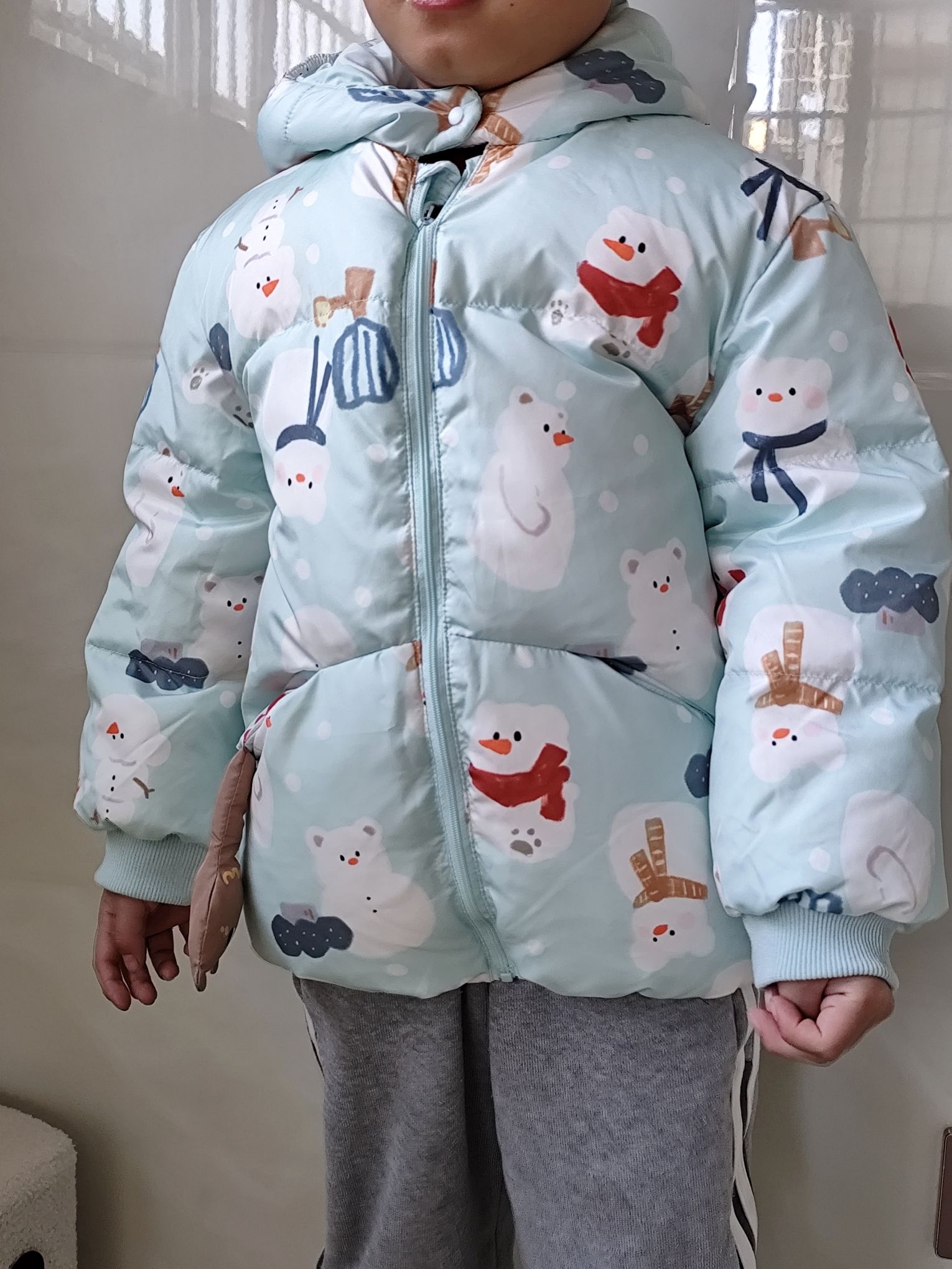以后入冬给娃挑羽绒服就锁定了#BALABALA 家了😄,给宸宝入的这款卡通印花连帽款,穿了快三周,从颜值到实用性都踩在我的心巴上,✌✌✌这款羽绒服是浅蓝底色搭萌趣的卡通动物印花,不是那种艳俗的图案,清新又可爱,我家娃第一次穿就说“妈妈,这件衣服上有小企鹅,我超喜欢”,主动穿衣服的次数都变多了~作为巴拉巴拉的经典款,它是90%白鸭绒填充,蓬松度够,摸起来软乎乎的,不像有些羽绒服硬邦邦的,娃穿在身上活...