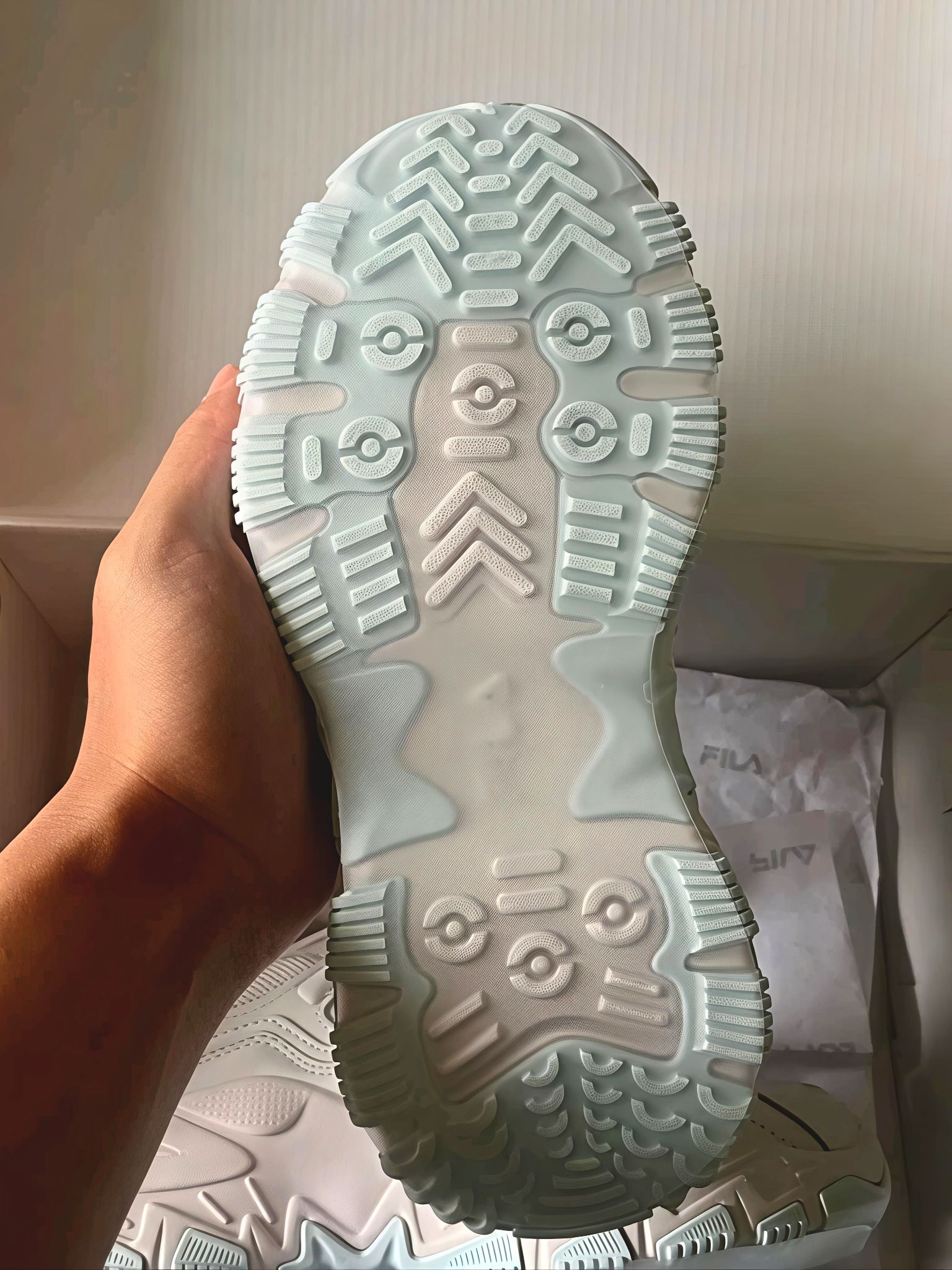 最近穿得最多的就是这双斐乐老爹鞋了!😌 浅灰色的配色低调又耐看,不管是日常通勤还是周末出游都适配。 鞋身的网面和皮革拼接设计,既保证了透气性又耐脏,打理起来超省心。 👟 鞋底的纹路很深,防滑效果超赞,下雨天走路也不怕打滑。最让我惊喜的是它的增高效果,5cm📈的隐形增高,腿显得又细又长,关键是一点都不累脚,暴走一万步都没压力。 真的后悔没早点入,现在直接焊在脚上不想脱了!