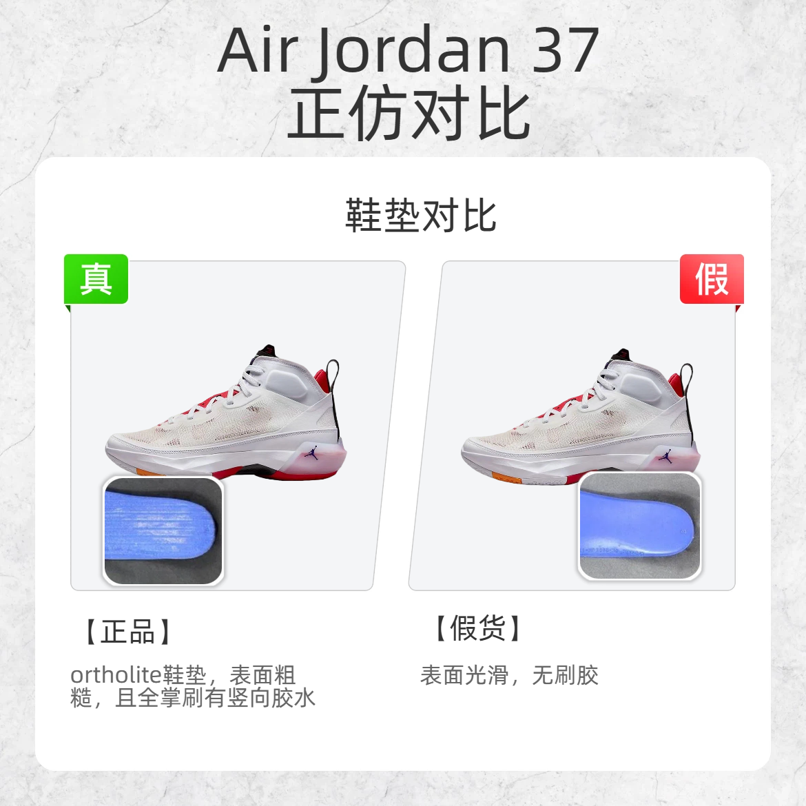 近期市面上竟涌现出了大量AJ37的假货,可谓是让人惊掉了下巴!为了避免小伙伴们在不知情的情况下踩坑,小编今天就来和大家细细盘点几个鉴别点~👇 1️⃣鞋垫 ✅正品:是经典的Ortholite鞋垫,轻量化,超柔软,反弹性极佳~ 鞋垫表面粗糙,全掌刷有竖向胶水 ❌假货:是普通的仿制鞋垫,表面非常光滑,并且没有刷胶 2️⃣鞋头 ✅正品:鞋头前片有一个明显翘起的弧度 ❌假货:鞋头前片几乎没有弧度 3️...