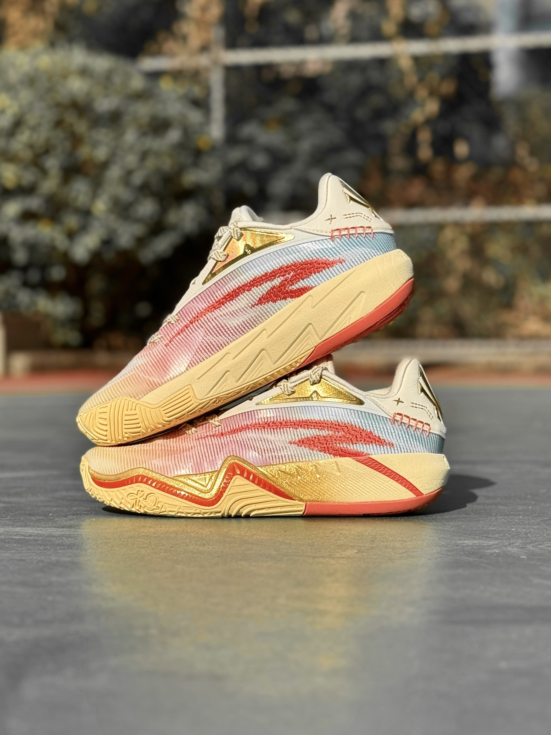 没想到安踏欧文3就这样悄无声息的来了! 首发居然还是CNY配色,叫骐骥! 还给了个欧文之盾的小挂坠~ 这颜值兄弟们觉得怎么样呢? 欧文3首次用了碳氮一体中底 重量也是3代中最轻的 力线更是没得说,嘎嘎正 值得一提,首发配色不限量!