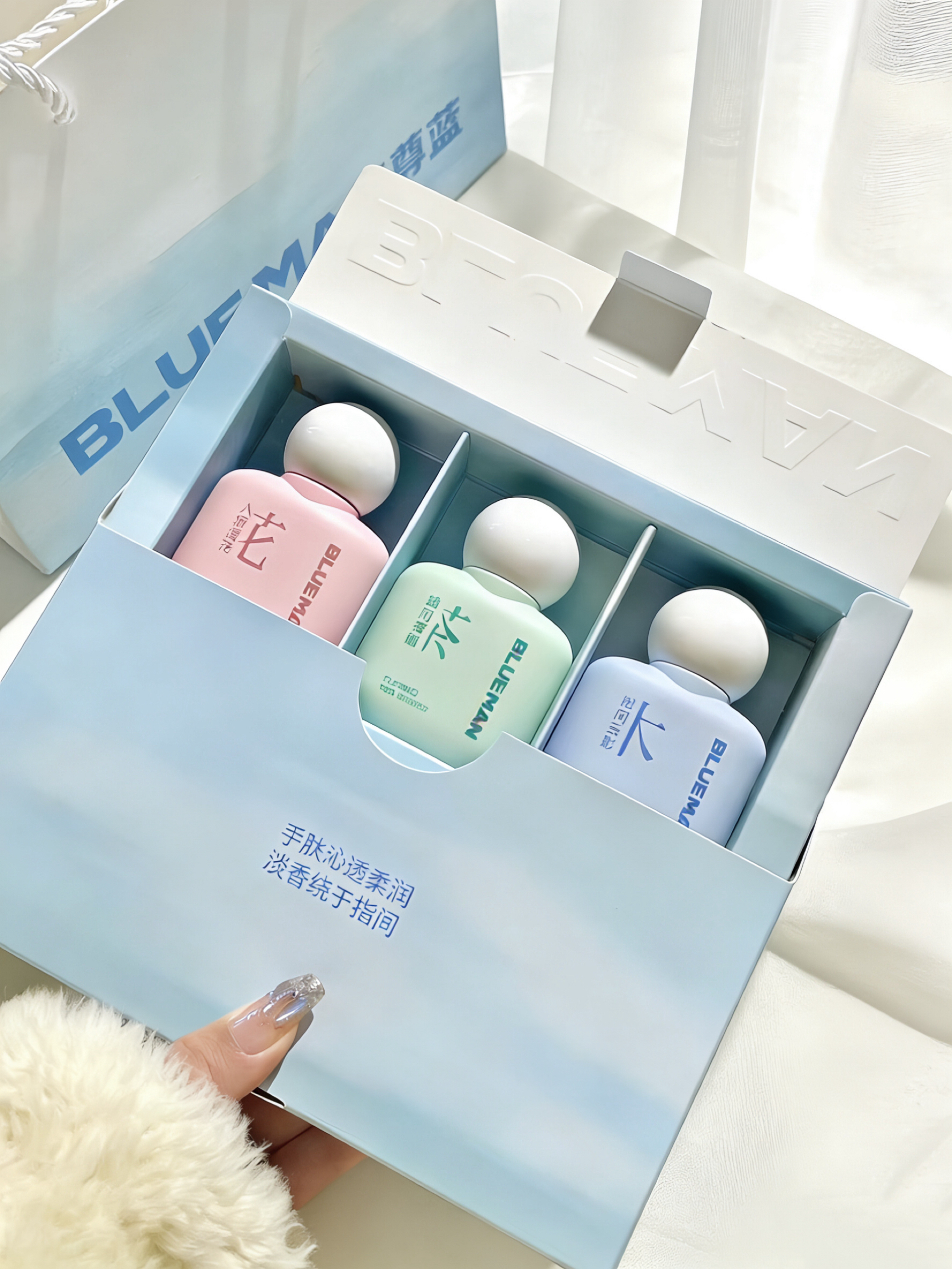 本篇笔记关联了BLUEMAN/尊蓝 水润光感香氛护手霜套装礼盒 保湿防干裂 入涧橙花50g+拂风茶烟50g+松间云影50g等商品,为用户提供真实的使用体验和购买参考。