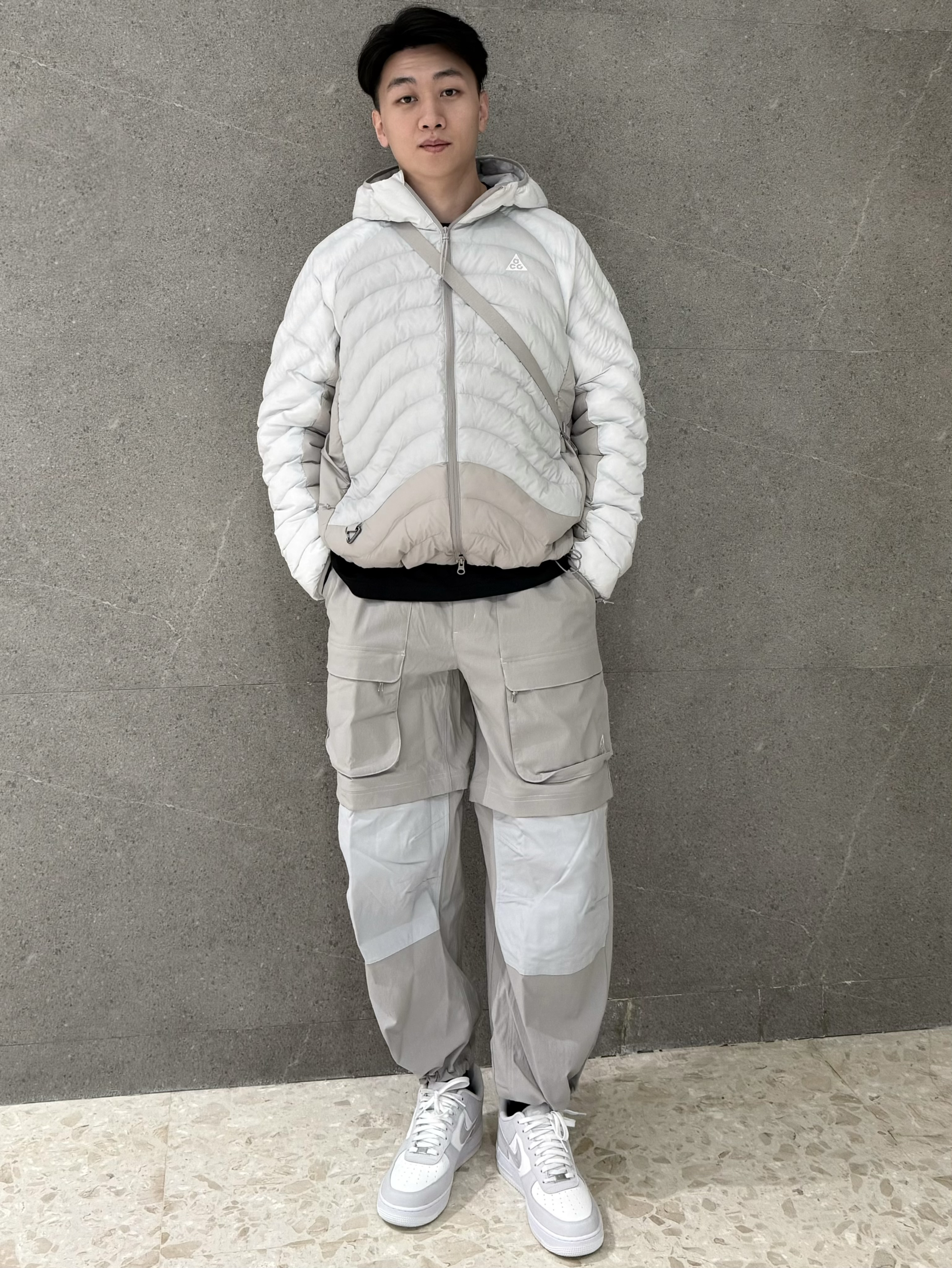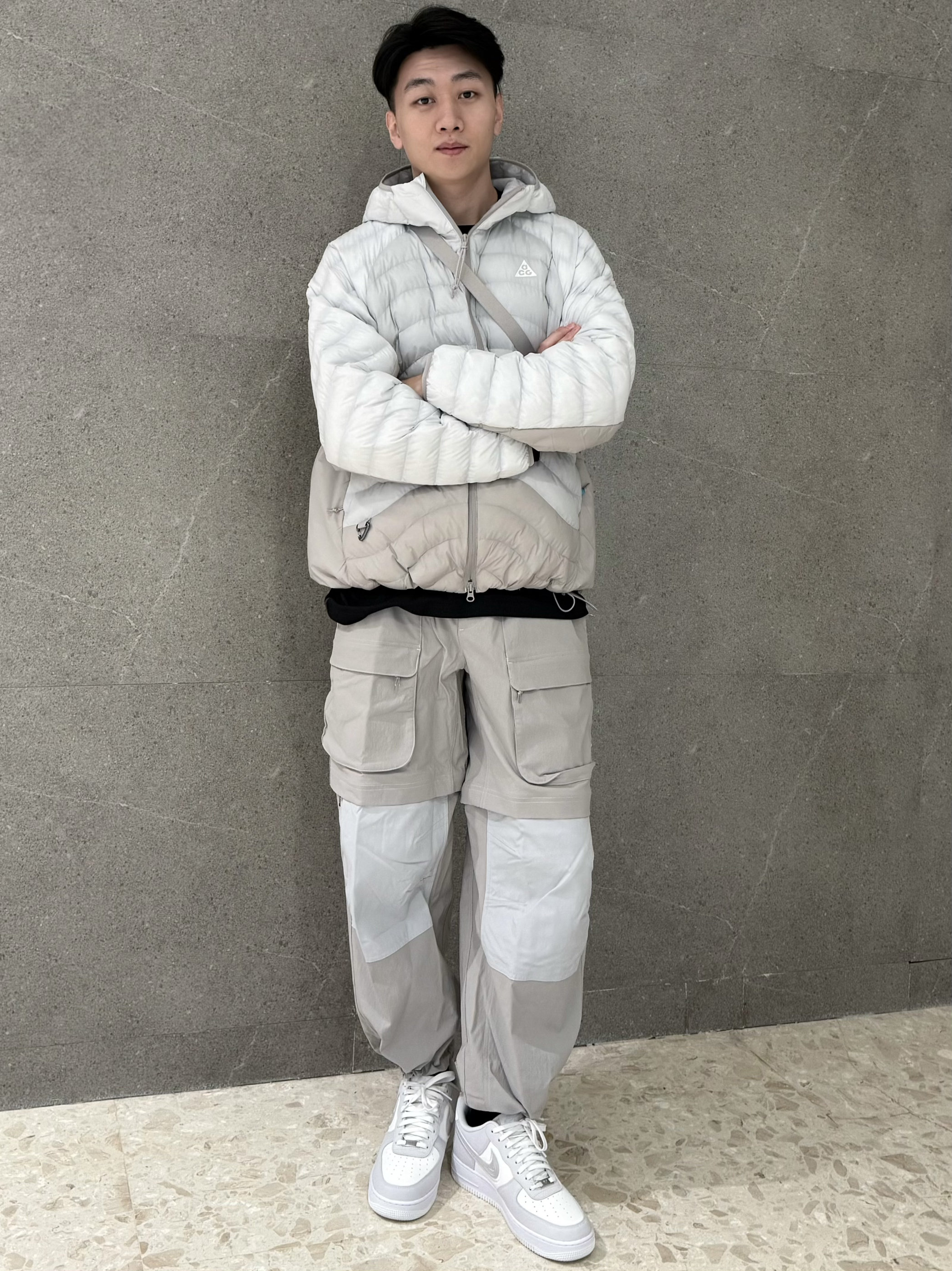 时尚就是一个轮回圈,这次是排骨衣!🪩 今天带来一套ACG户外穿搭,整体是简单大气的灰白搭配,工装户外长裤,膝盖处有拉链设计可以一裤两穿!外套是P棉填充,潮湿环境保暖也不错~😎