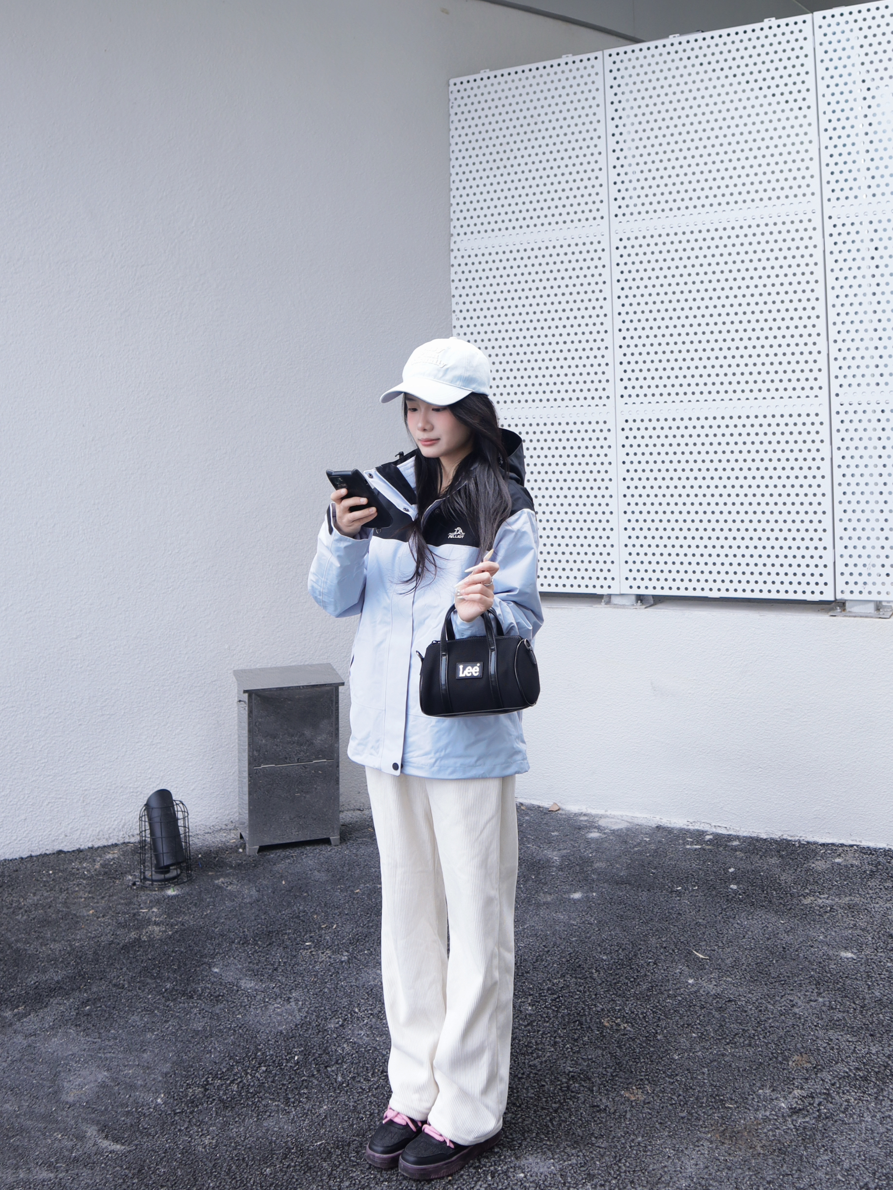 Lee这款黑色波士顿包很有街头风!休闲又时尚大方~ 网面拼接皮质的设计是很有质感,白色logo比较亮眼,小巧包型刚好装下手机、钥匙、化妆品这些随身物~ 手提斜挎都合适,搭配浅蓝冲锋衣瞬间拉满休闲酷感,日常出街拎着超百搭✨ 这件冲锋衣是防水透湿面料下雨天无惧风雨,临时没带伞可以直接走! 内里加绒锁温超暖和,下摆调节扣收紧能防冷风灌入,袖袢连接扣让内胆不位移,可拆卸设计还能适配不同温度,日常出街或轻...