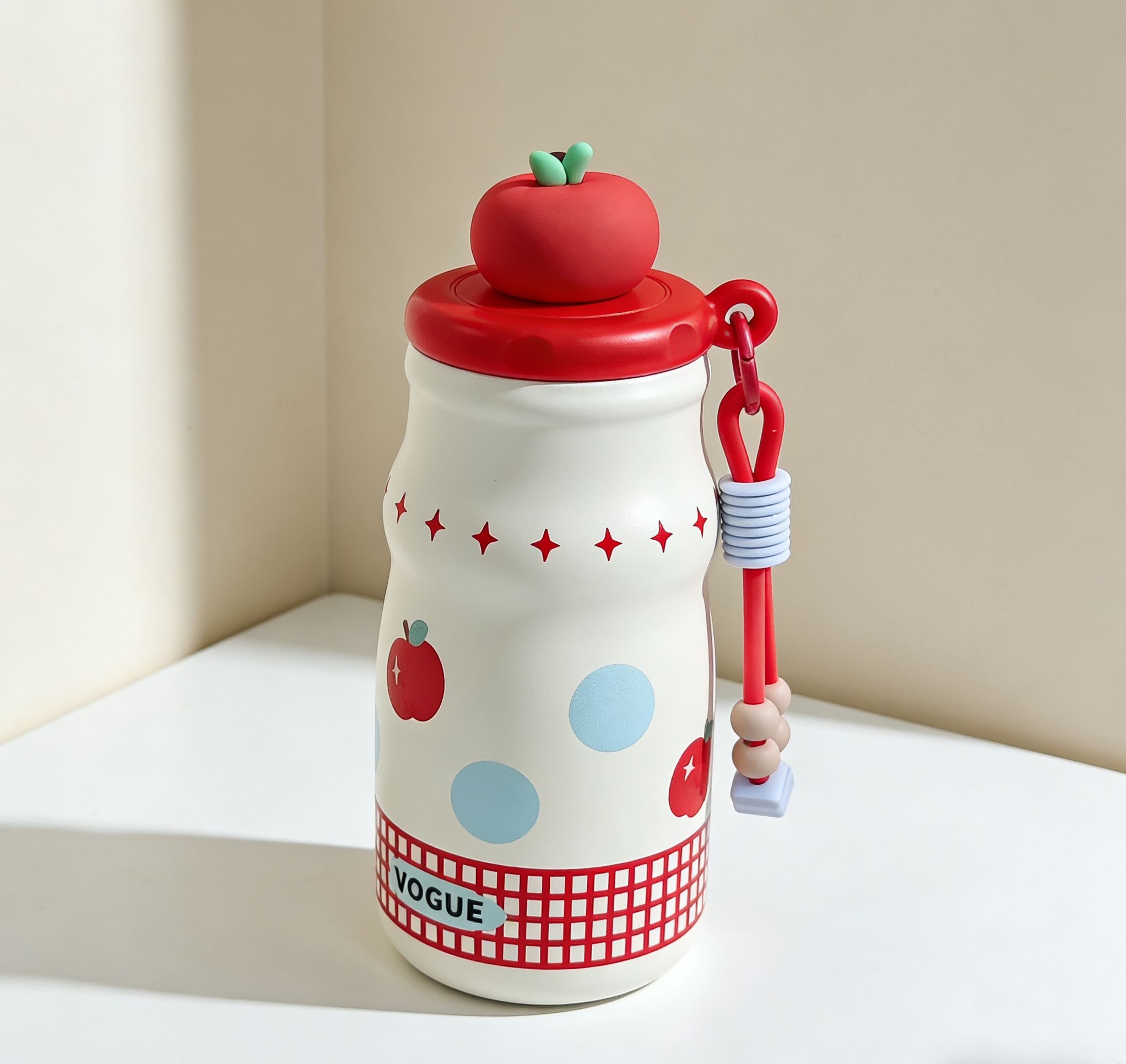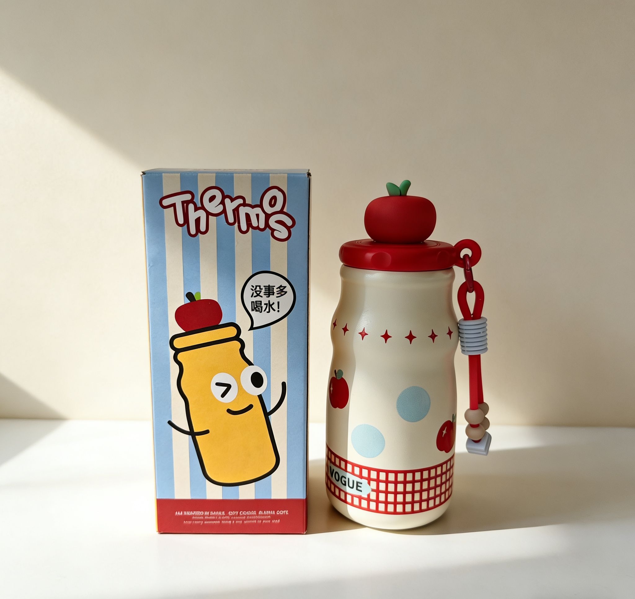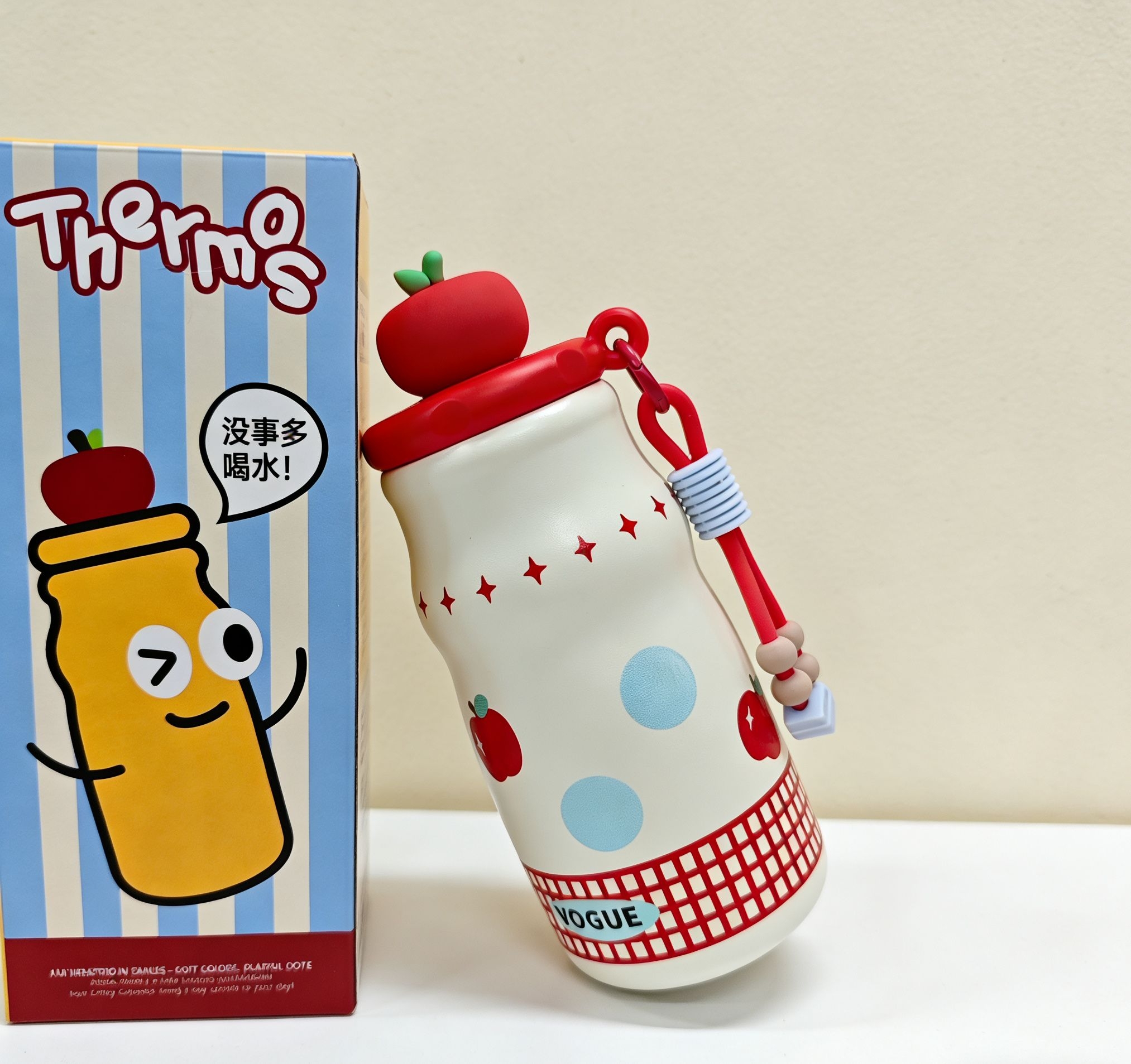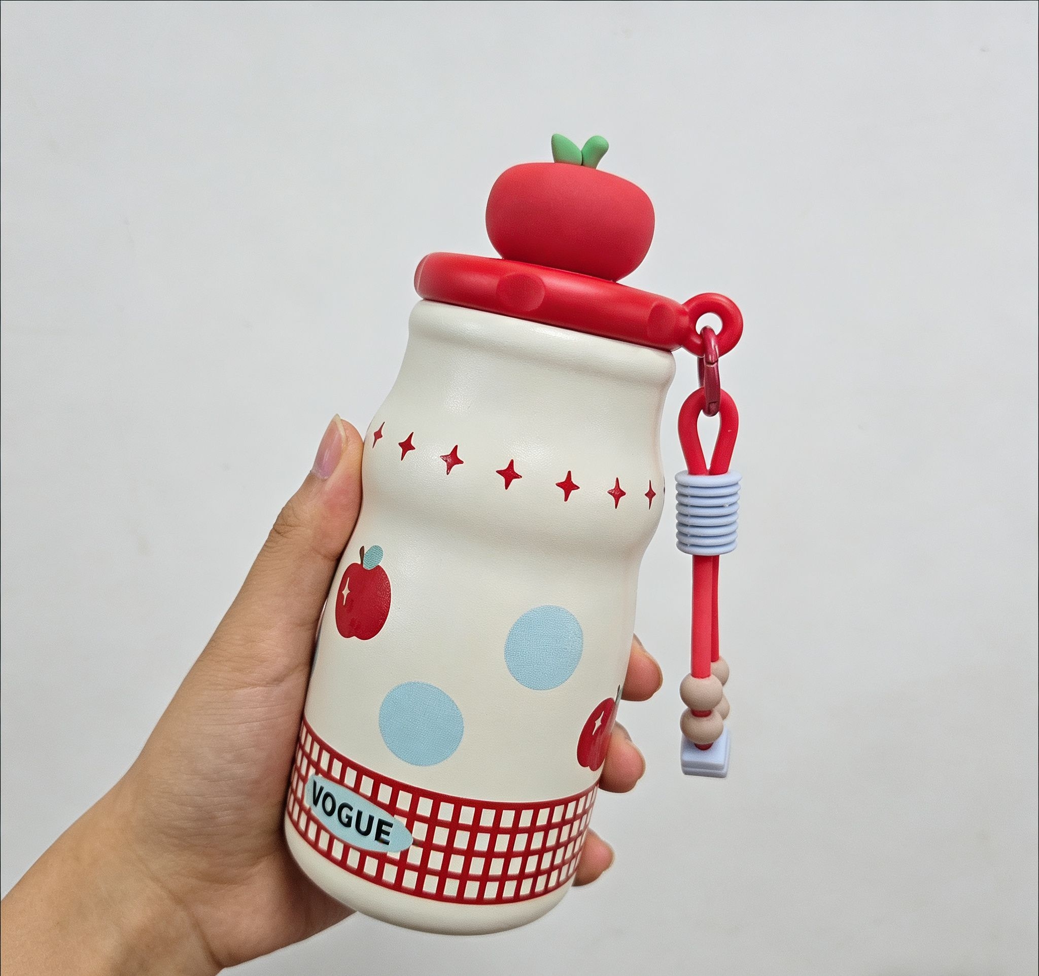 谁懂啊!最近挖到的这个保温杯直接让我抛弃了手里的大水杯,颜值和实用性直接拉满💯 首先颜值真的戳我,红苹果款的配色超元气,杯盖的小苹果装饰可爱到犯规,拿在手里被同事追着问链接!关键它看着小巧,实际有500ml的容量,日常喝温水、泡个果茶完全够了。 我最爱的是它的便携性,比我之前的保温杯轻太多,巴掌大小直接塞进口袋就行,出门逛街、上班通勤揣着毫无压力,搭配的硅胶拎绳还能挂在包上,户外带也超方便...