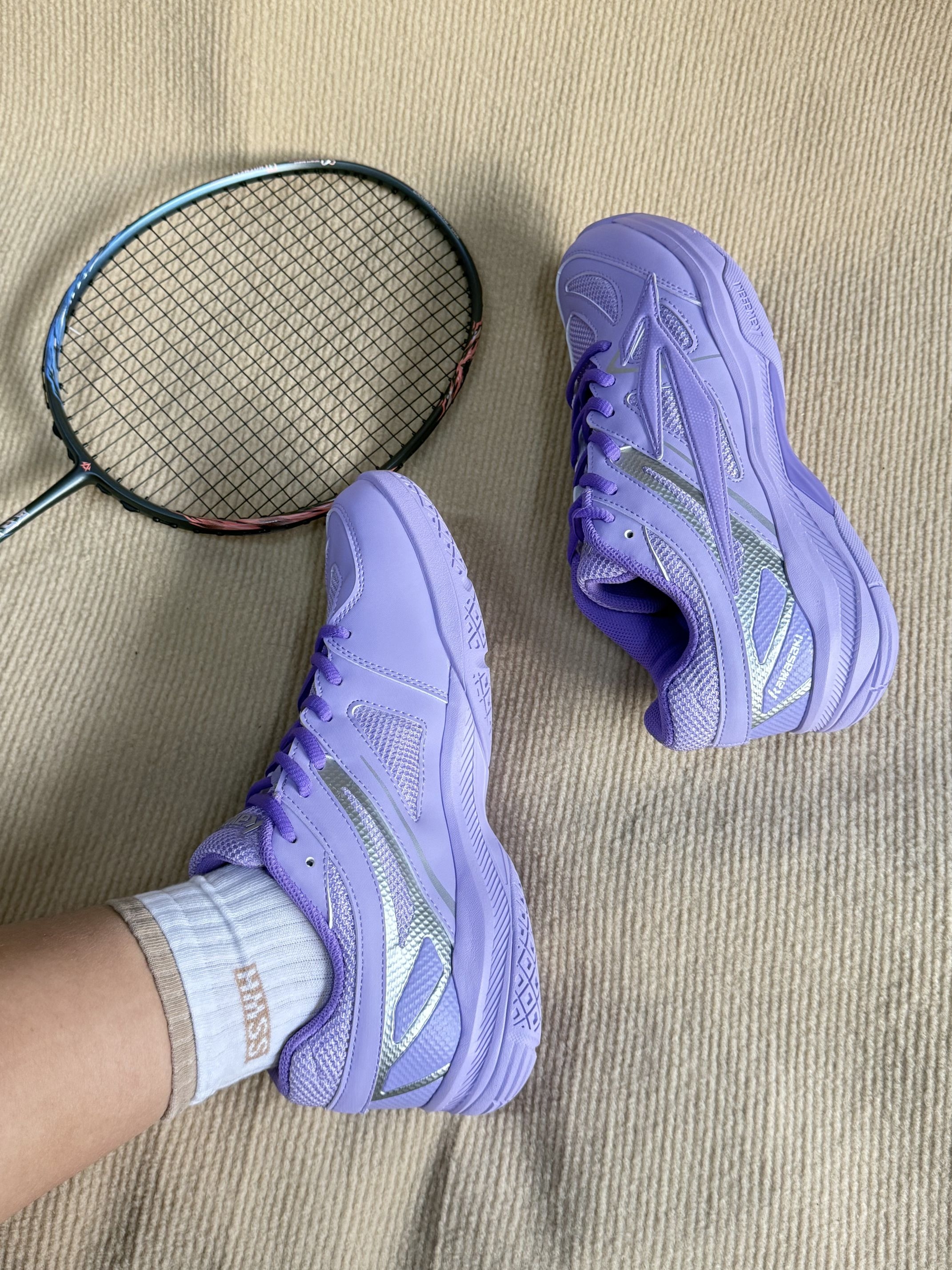 之前打球一直凑活穿跑鞋,直到入了川崎这款羽毛球鞋,才知道专业的就是不一样! 先说这双鞋,拿到手就感觉很轻,比我之前的跑鞋还轻 鞋底的防滑纹很深,防滑减震效果很好, 鞋底加宽碳板+TPU抗扭片,稳定系统,很好的帮助支撑 真心觉得,这颜值!不管是日常还是打球,这双鞋都值得入!