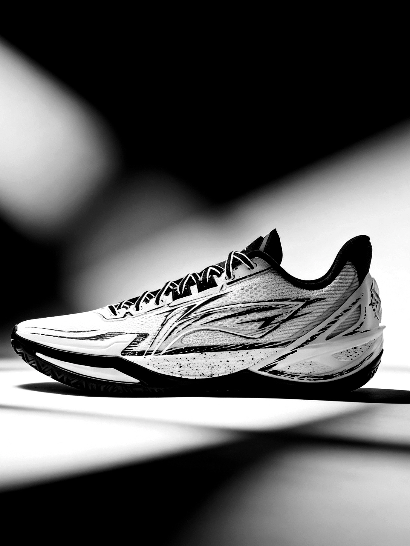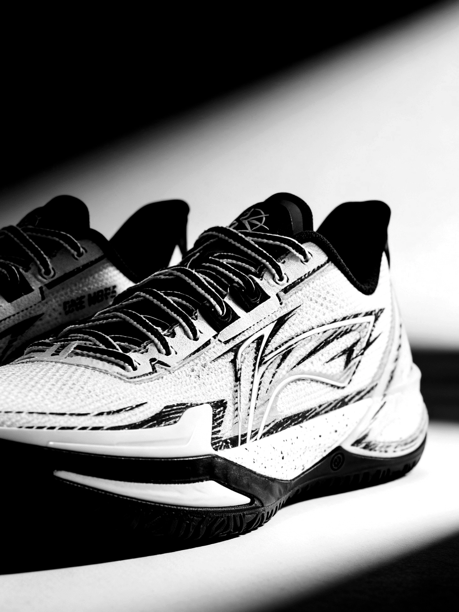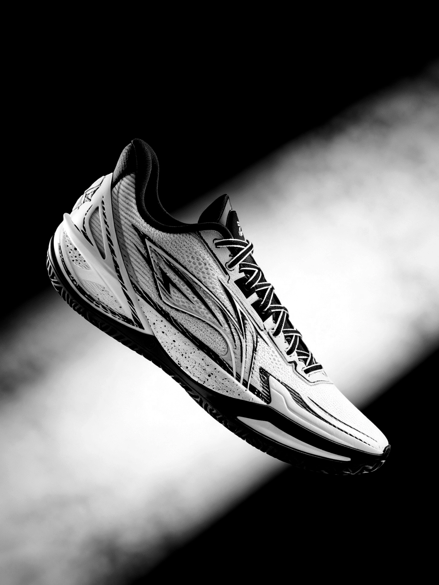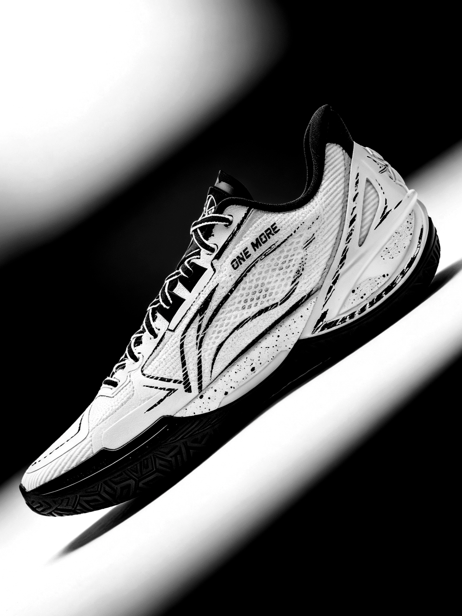 👟球鞋名称:利刃6 V2 ONE MORE 🔍分享理由:好看又好穿 🤔整体感受:白黑水墨纹理太有国风那味儿了!鞋面的墨痕线条不是印刷感很重的那种,而是带着渐变的笔触质感,光线下看层次超丰富。黑白撞色也不挑穿搭,配运动裤或者牛仔都很搭,日常出街也完全hold住。