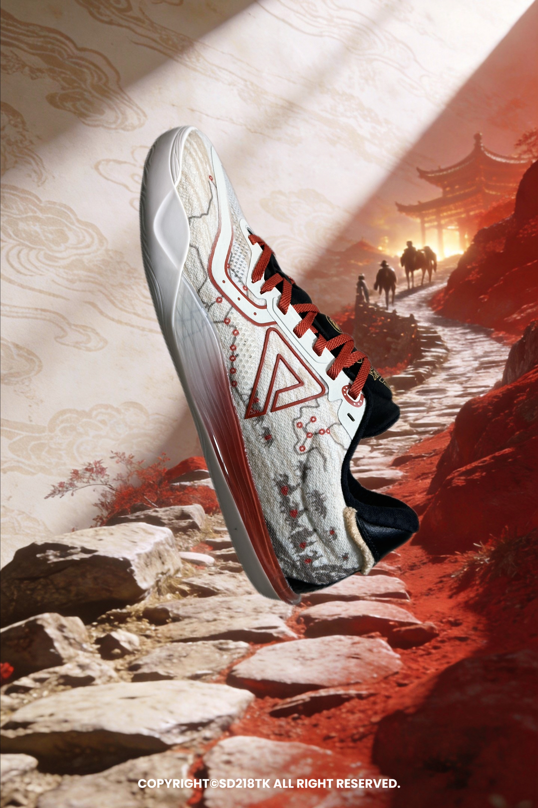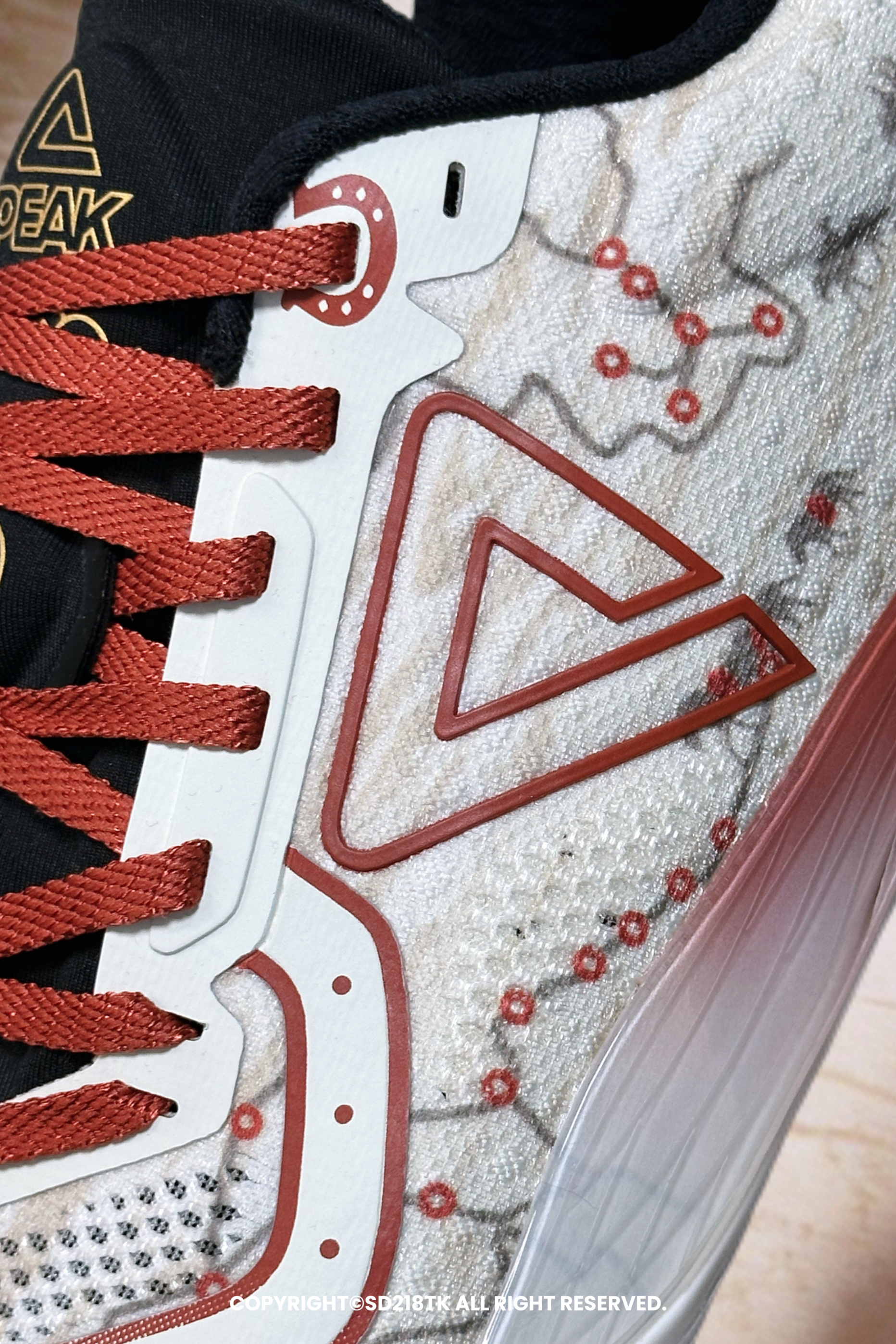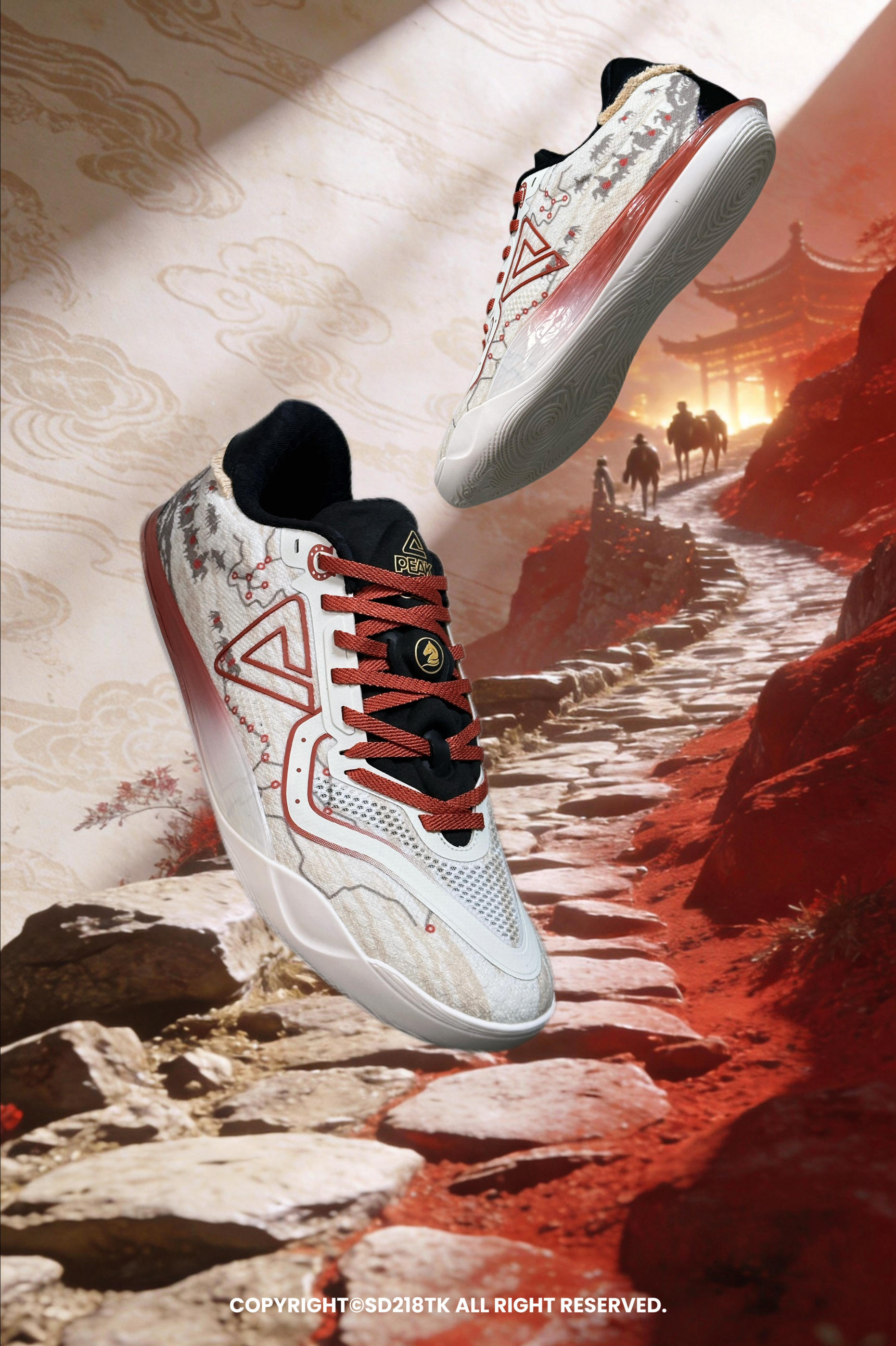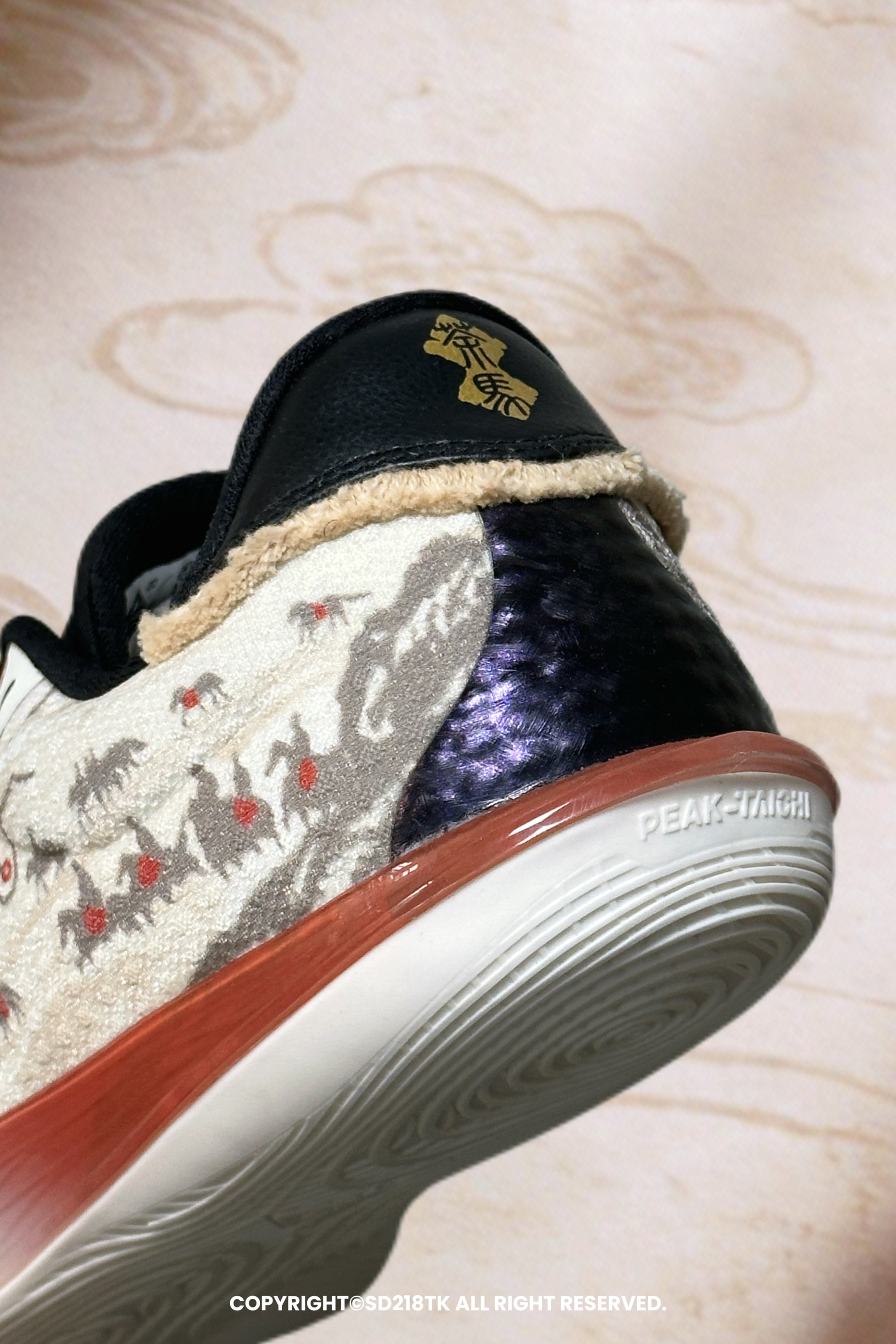 🎆球鞋设计 我有幸入手了一双匹克PEAK新年款的薄底快靴实战篮球鞋—— 无双EX。新年配色见多了,新年配色续写大漠里的商贸神话还是首见。这款鞋子的细节真的很丰富,鞋面大面积主题涂鸦设计还有茶马古道的线路图,鞋舌铜钱串还有马头标志,马蹄铁设计的鞋带孔护眼处,后跟马鬃流苏设计,处处彰显着马年主题和茶马古道主题的相结合,真的非常用心。配置方面EX版本会比普通版本有更好的提升。 🎇尺码搭配...