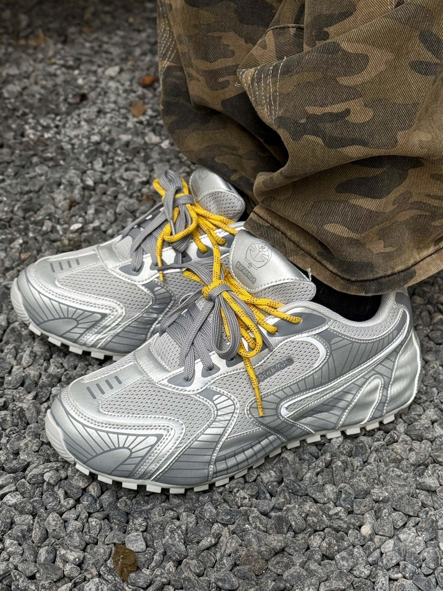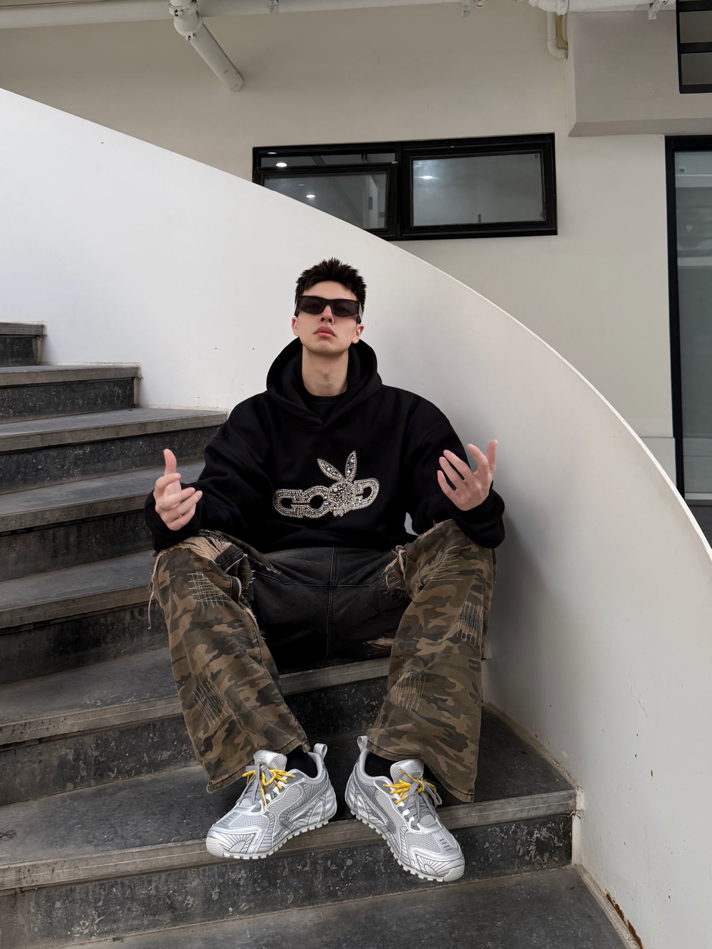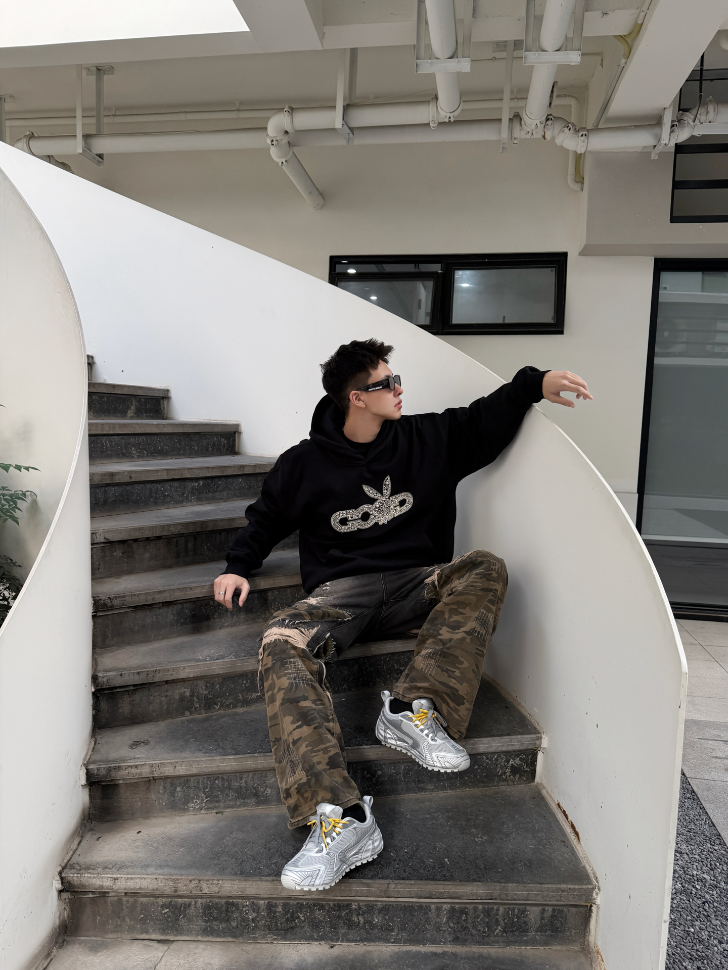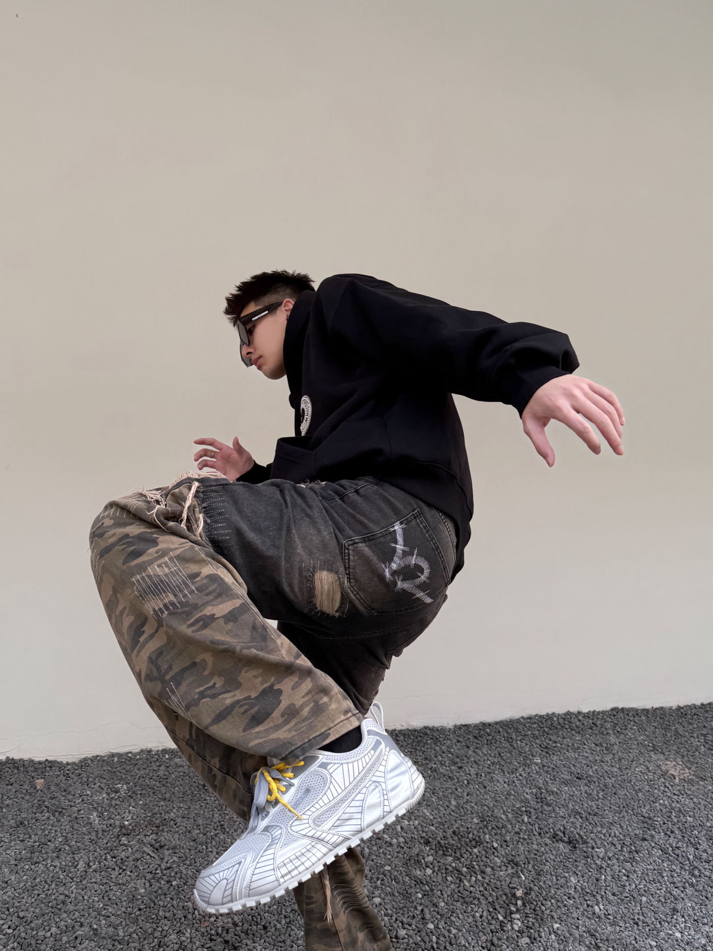 哆啦A梦银黄老爹鞋:给黑卫衣迷彩裤焊上未来金属感 黑色烫钻卫衣自带街头的精致酷感,闪钻图案打破纯黑的单调,宽松的连帽版型又藏着慵懒的潮味;搭哆啦A梦银黄老爹鞋时,银色鞋身的金属光泽像裹了层未来战甲,黄鞋带与迷彩的棕调呼应,厚底的版型适配阔腿迷彩裤,让硬核的街头风多了份卡通元素的软萌与未来感。 黑卫衣配迷彩裤的经典组合,靠一双金属感老爹鞋就能玩出新潮套路。 #doraemon哆啦a梦 #冬日城...