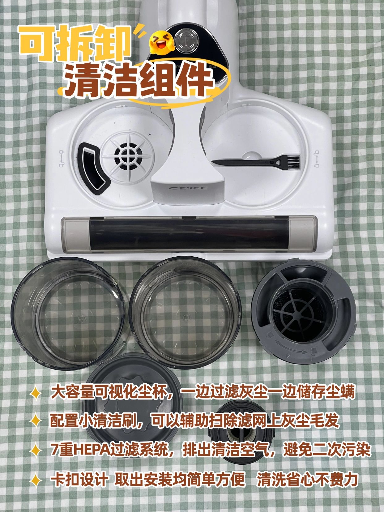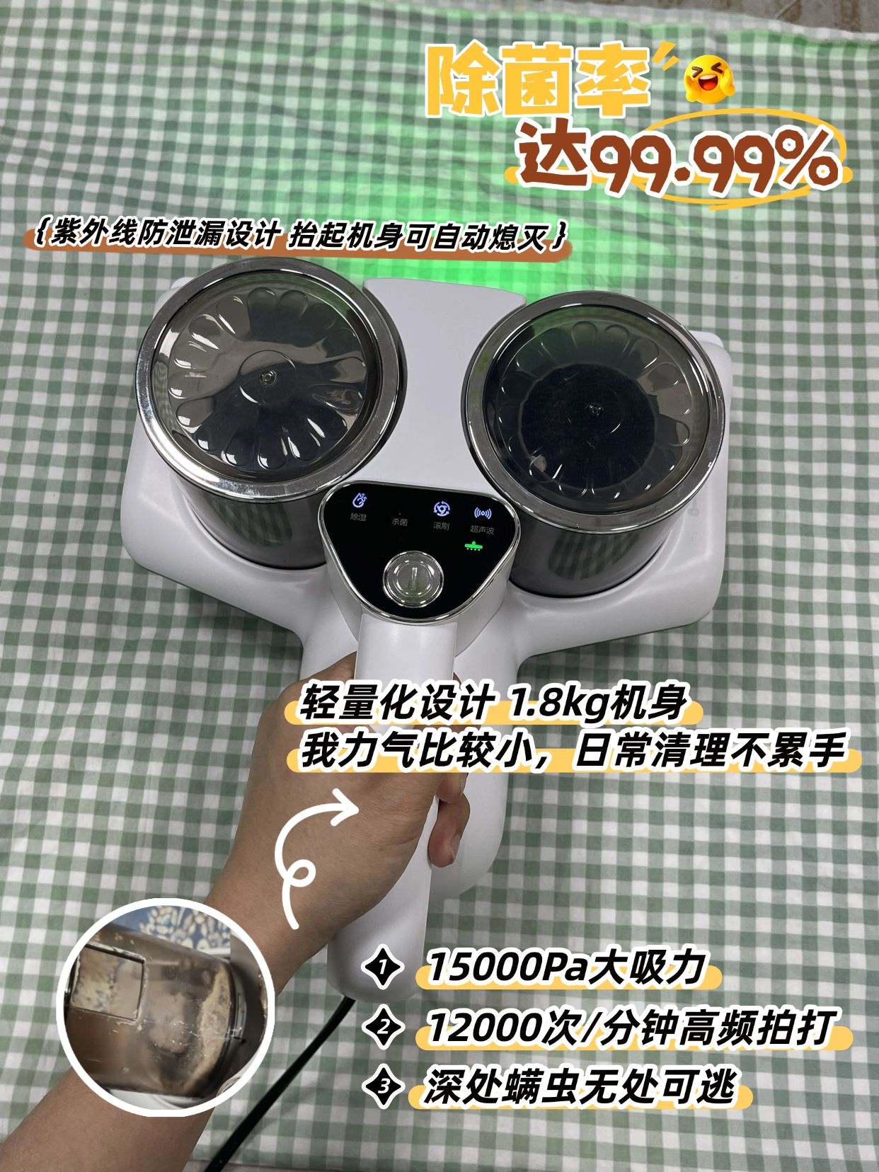 选除螨仪我只看硬实力,希亦15kPa大吸力搭配12000次/分钟高频拍打,能直接震松并吸走床垫、沙发纤维深处的螨虫、皮屑和灰尘,第一次清洁主卧床垫,5分钟就吸出满满一层灰絮,看得人头皮发麻。