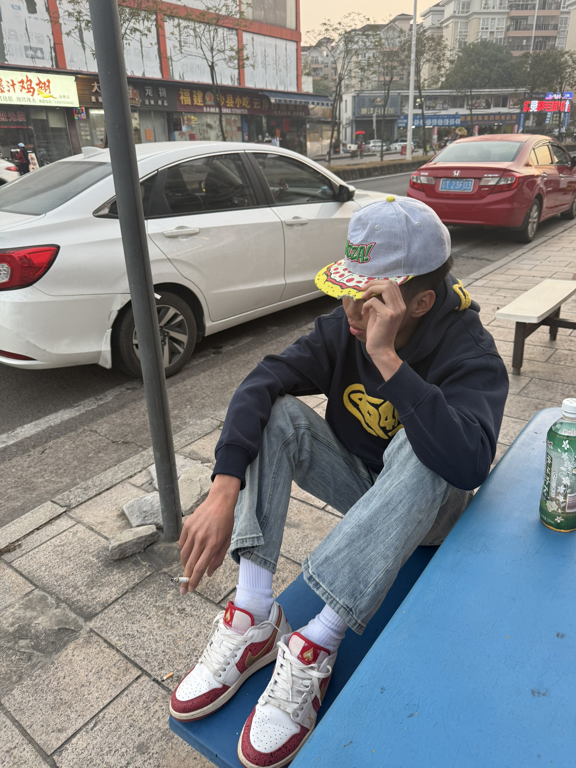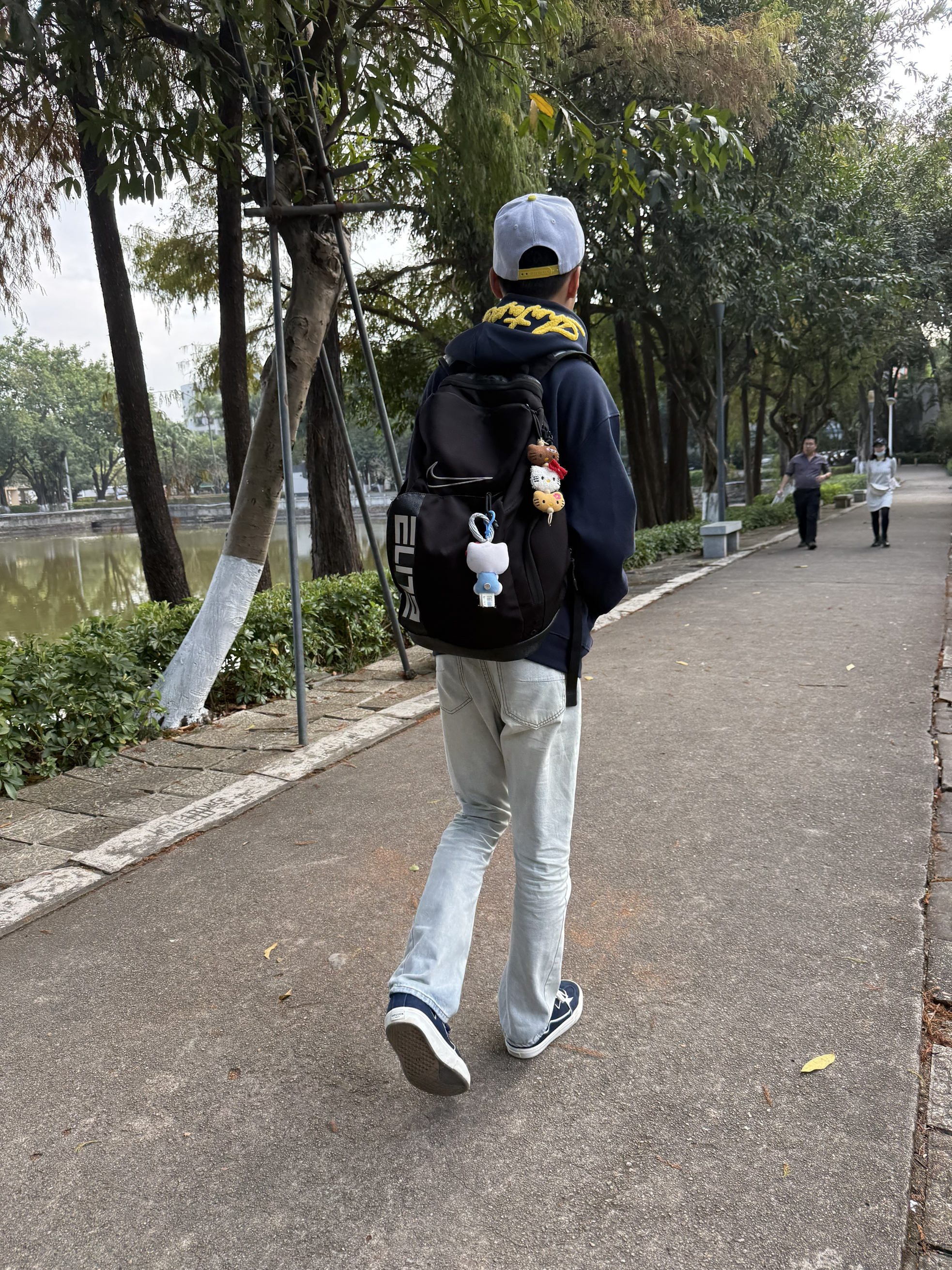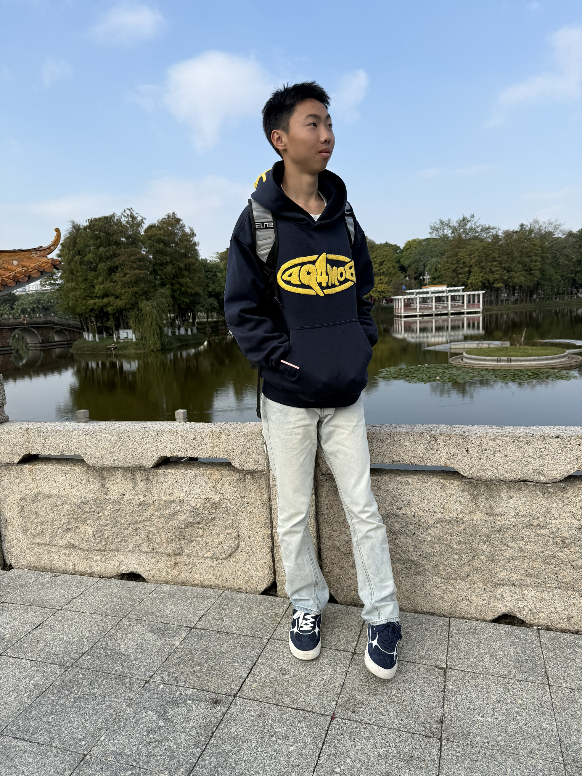 标题:藏蓝卫衣+喇叭裤,日常出街的少年感穿搭 这套穿搭很实穿,藏蓝色连帽卫衣带点黄色字母,不单调。搭配浅色牛仔喇叭裤,修饰腿型也舒服,蓝白运动鞋和整体色系呼应。双肩包一背,出门散步或日常逛逛都很轻松,主打一个自在随意,分享给喜欢简单干净风格的你。