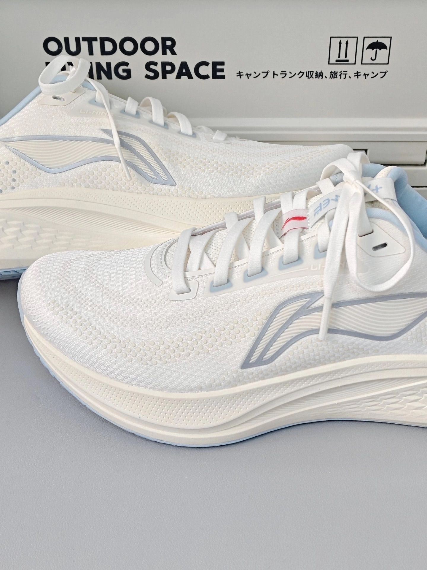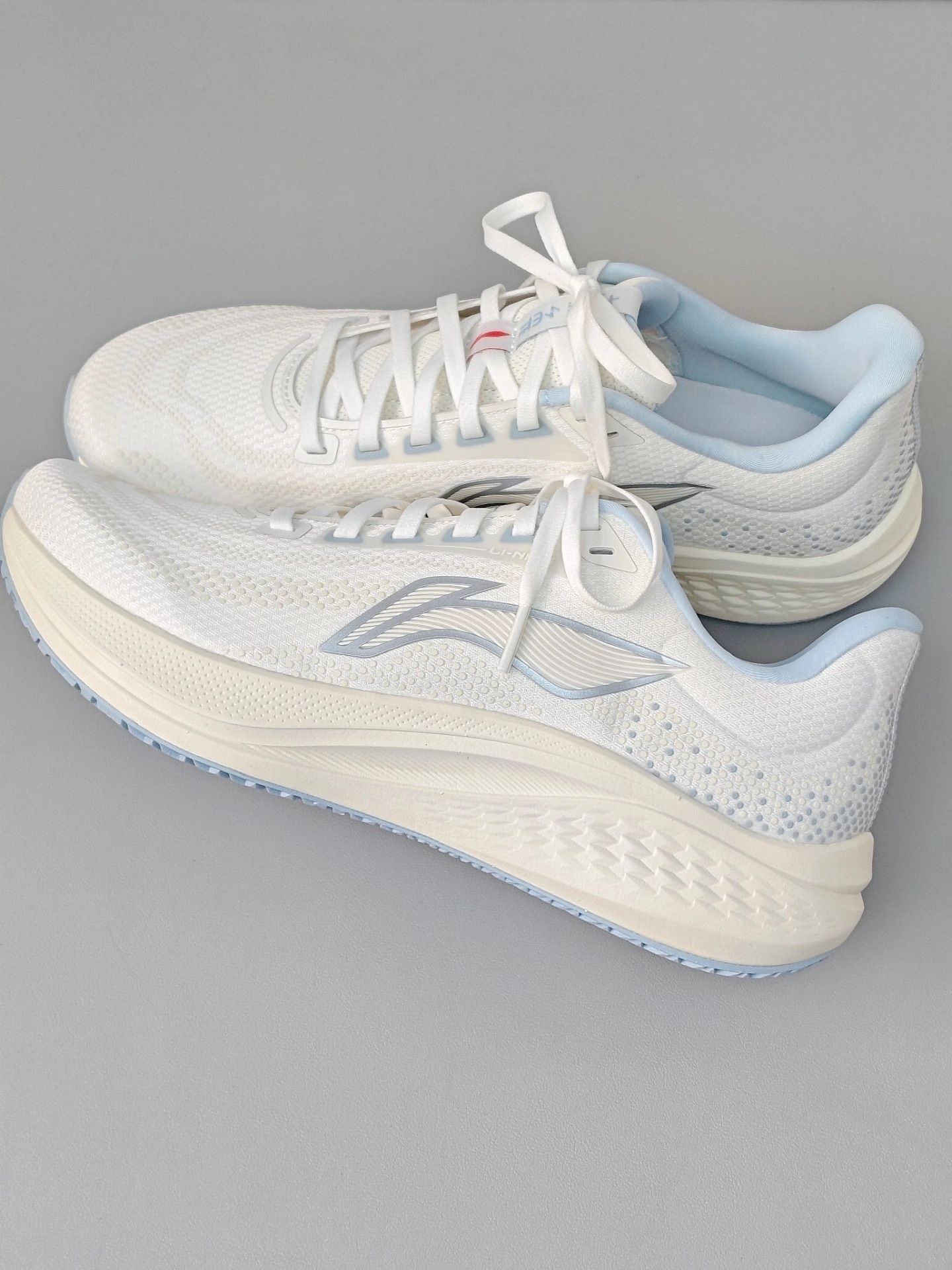 蓝白色看起来好温柔高级✨ 网面设计透气性也不错 🌸春天搭一些浅色系总归不会错的 缺点就是不耐脏 ☔️ 阴天就尽量不要穿了~