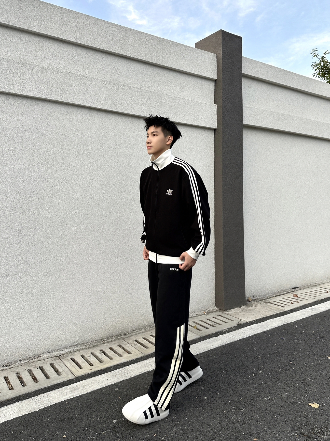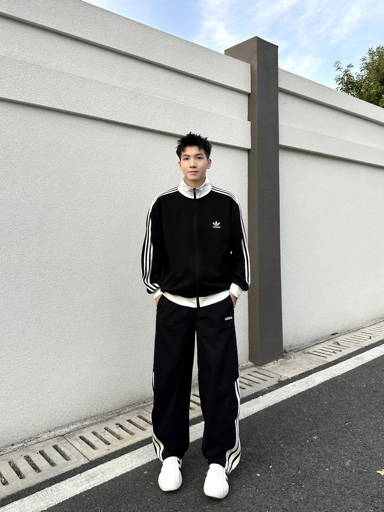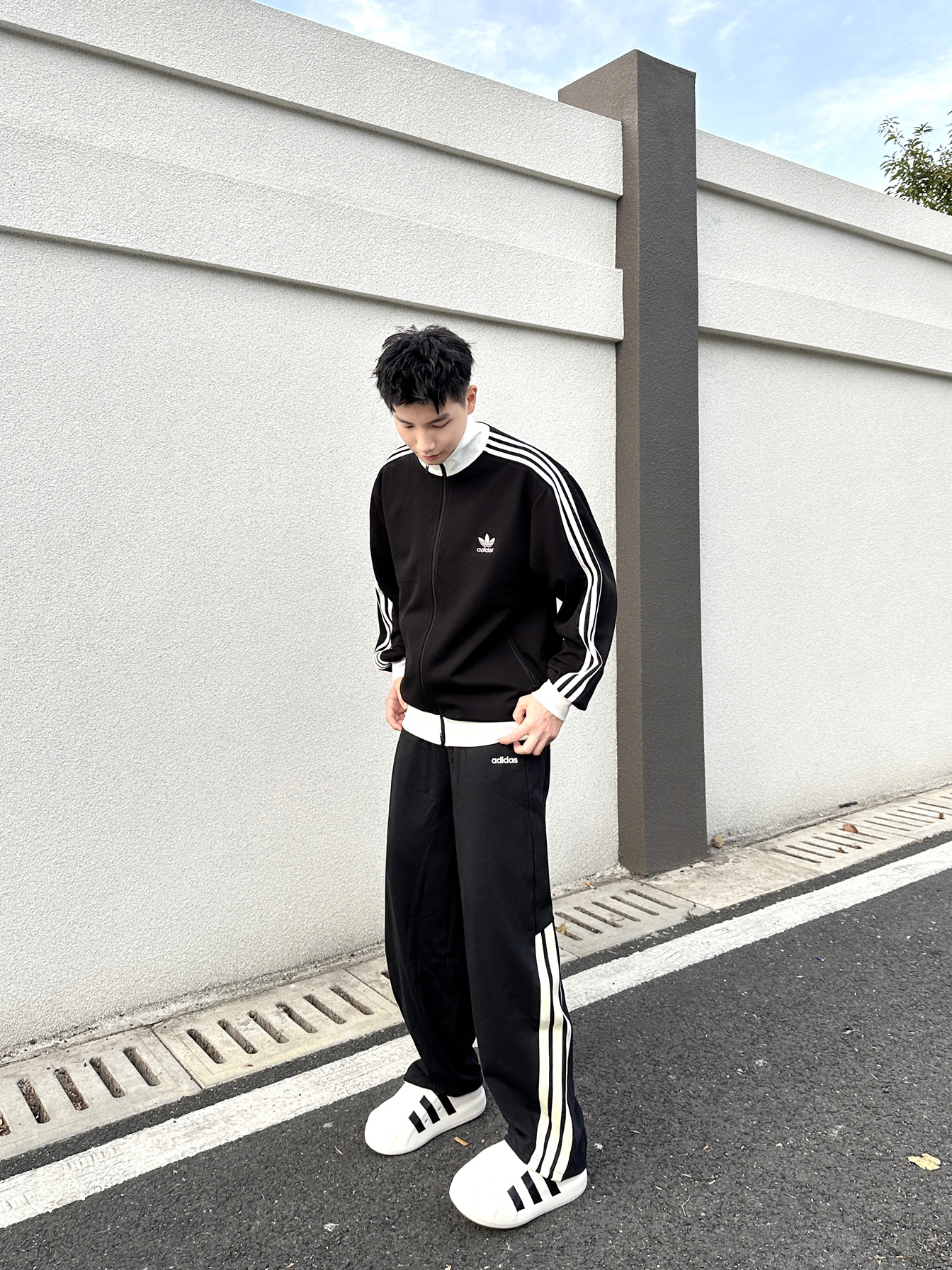 一套阿迪穿身上,帅帅的感觉真的棒🍂 上衣选择一件 adidas 华夫格黑白拼色长袖外套 宽松版的版型➕舒适面料上身简直太舒服咯 裤子搭配 adidas 三条纹设计宽松版型弯刀裤 面料柔软舒适,口袋处品牌小标设计细节感满满 侧边裤脚三条纹设计太帅咯!休闲运动穿搭都很酷 鞋子选择 adidas 白色橡胶运动休闲鞋 这套adidas黑白色系穿搭,帅气少年感拉满