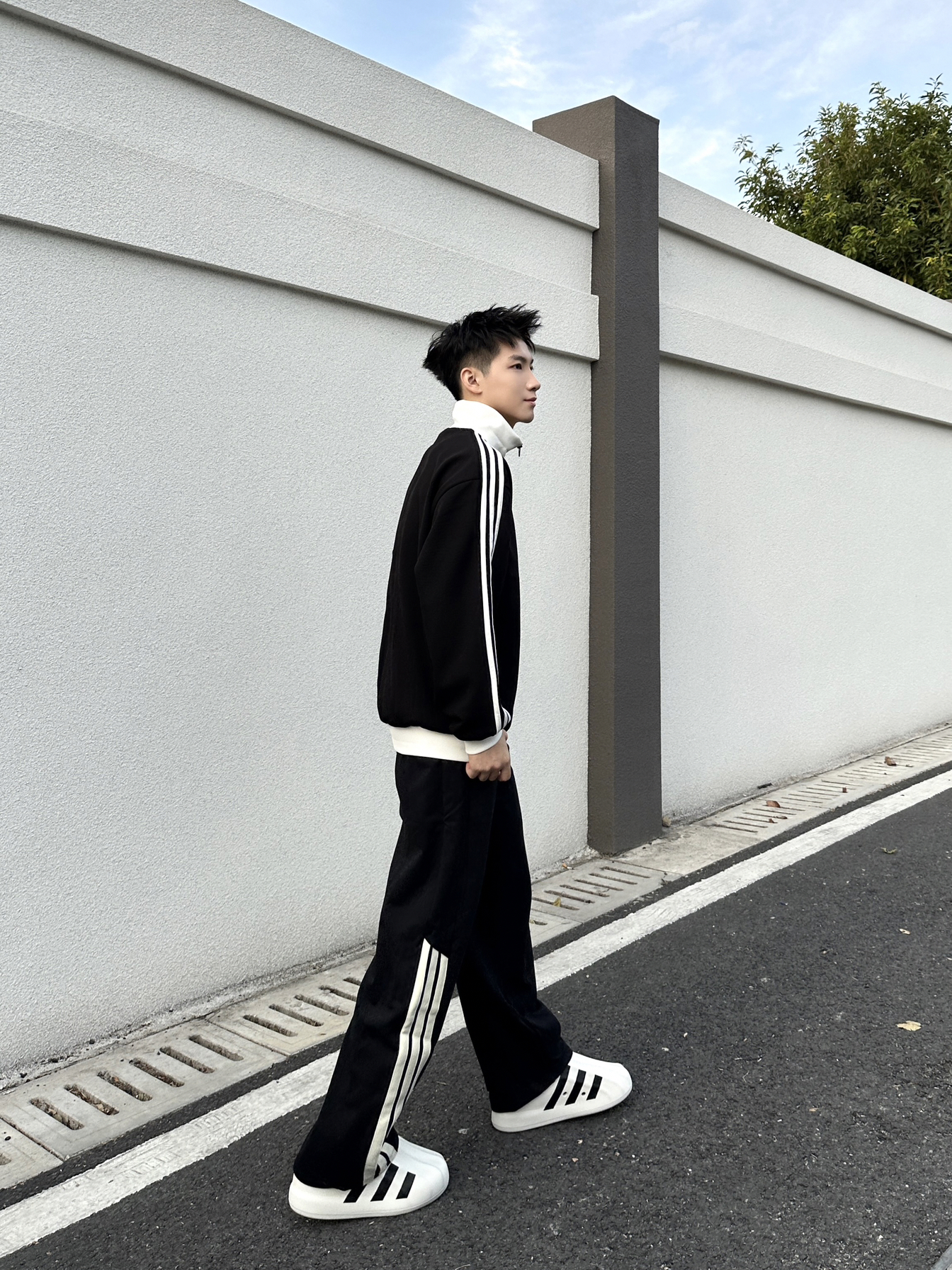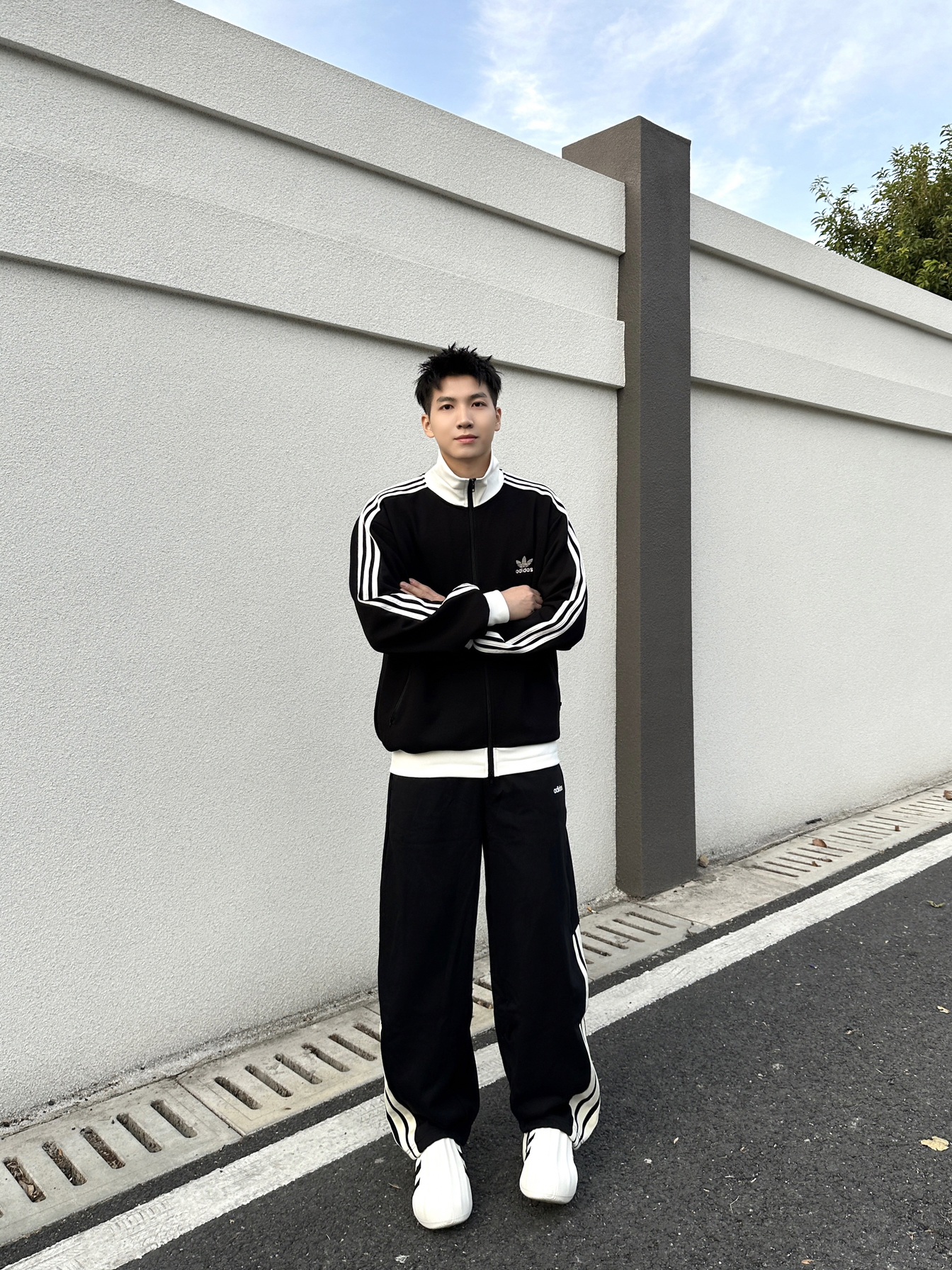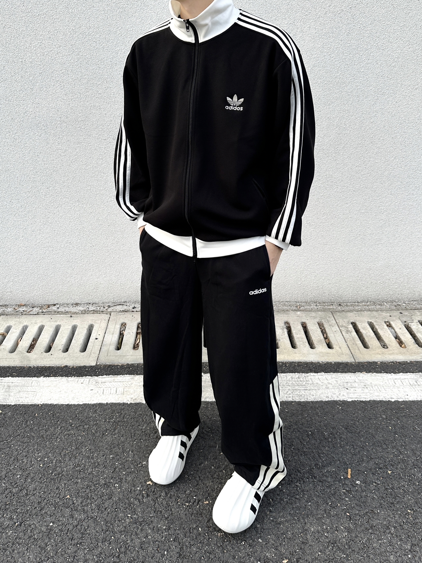 一套阿迪穿身上,帅帅的感觉真的棒🍂 上衣选择一件 adidas 华夫格黑白拼色长袖外套 宽松版的版型➕舒适面料上身简直太舒服咯 裤子搭配 adidas 三条纹设计宽松版型弯刀裤 面料柔软舒适,口袋处品牌小标设计细节感满满 侧边裤脚三条纹设计太帅咯!休闲运动穿搭都很酷 鞋子选择 adidas 白色橡胶运动休闲鞋 这套adidas黑白色系穿搭,帅气少年感拉满