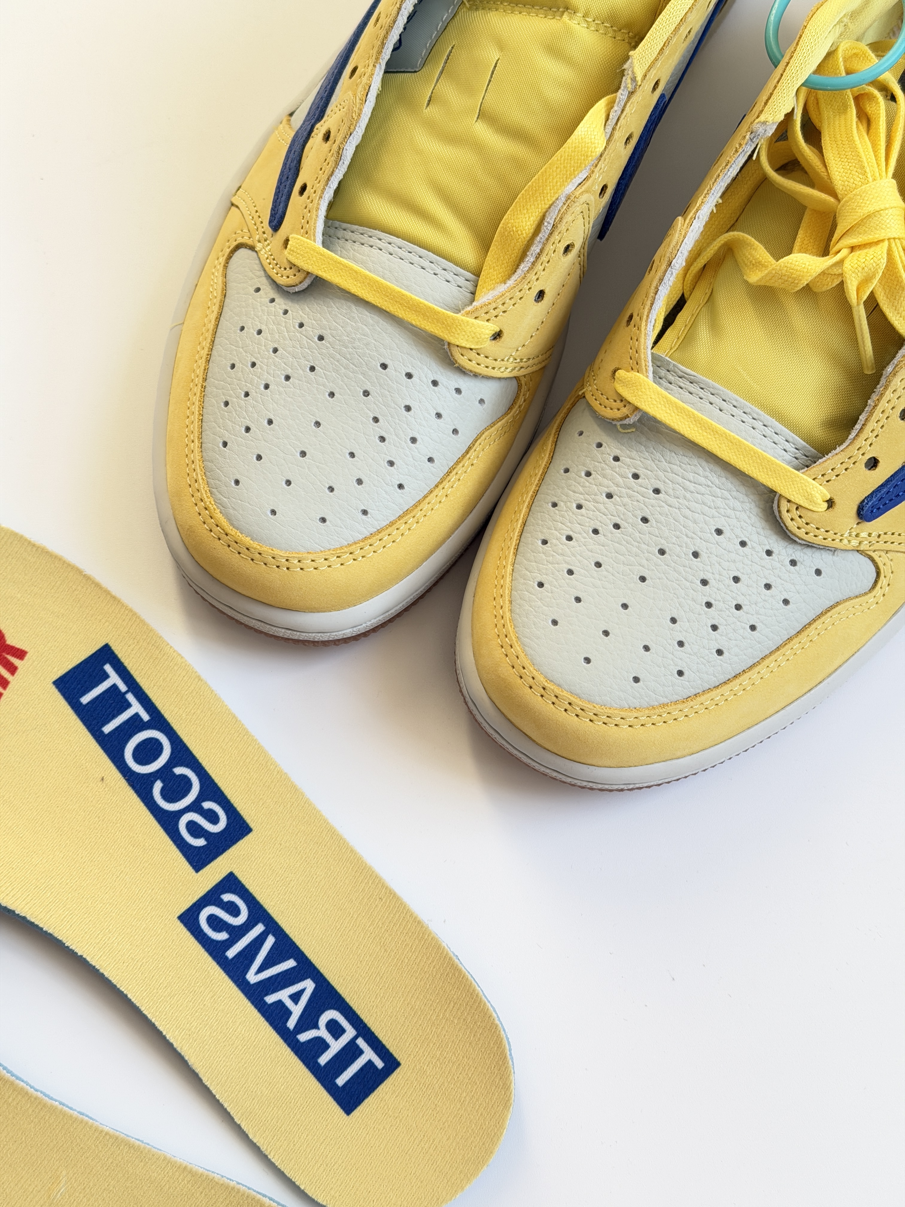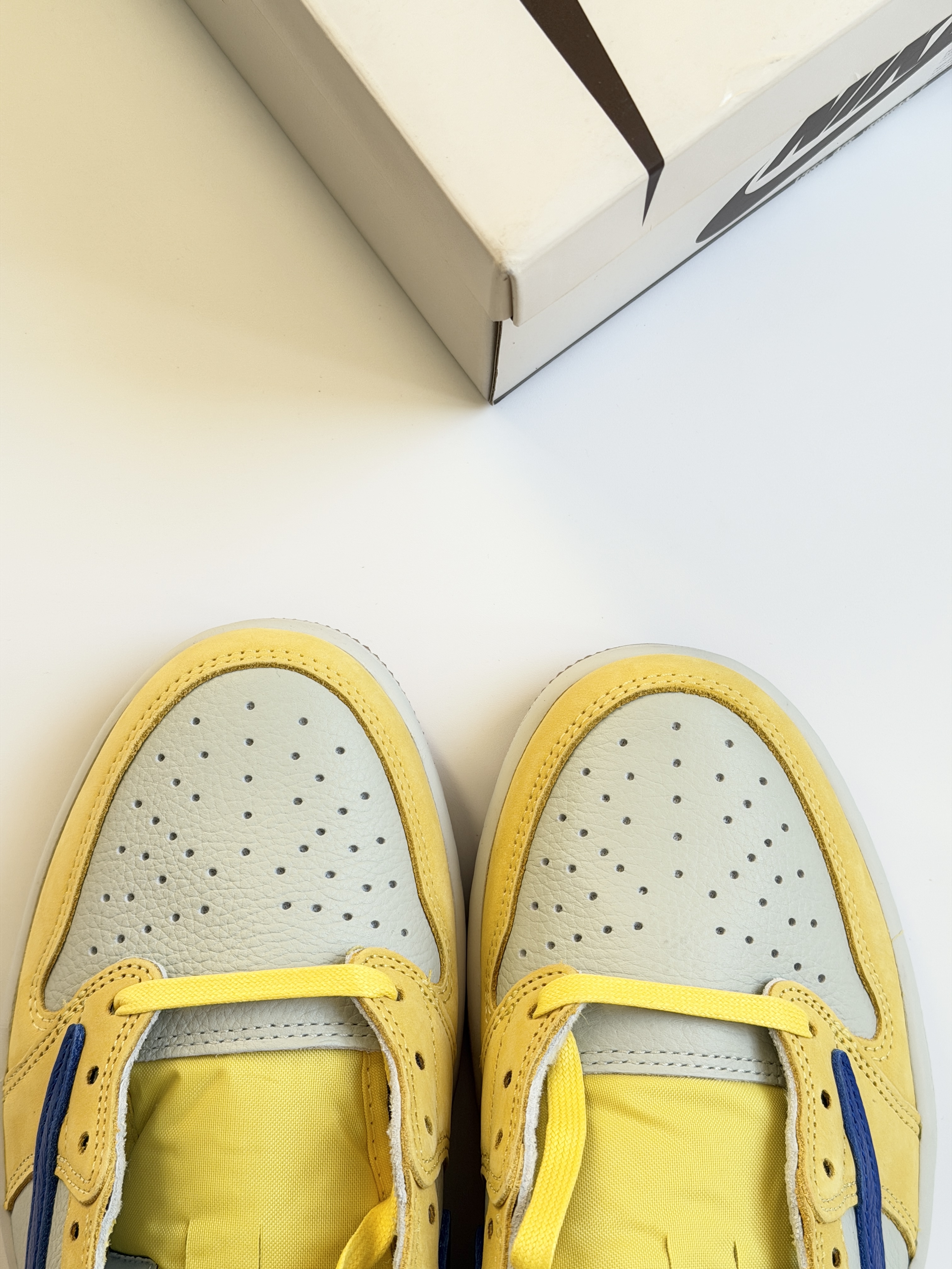 本篇笔记关联了Air Jordan 1 板鞋 运动休闲鞋 复古潮流支撑合成革 Travis Scott联名/倒钩7.0/女款/金丝雀黄/蓝色等商品,为用户提供真实的使用体验和购买参考。