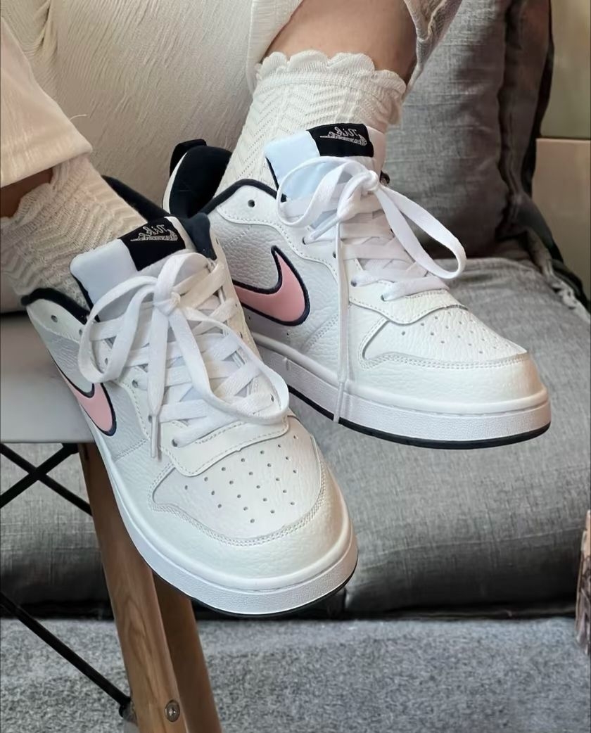 这双Nike板鞋把「甜酷风」焊在脚上了 谁能拒绝白×粉×藏蓝的神仙撞色啊!🖤 皮质软乎乎的巨好摸,上脚显脚小还舒服到暴走 日常搭牛仔裤、短裙都很绝,甜妹辣妹切换自如 Nike控闭眼冲,这波颜值与质感双在线的宝藏款,入股不亏,不仅颜值高的一批,而且上脚非常舒适柔软,百搭更是如此轻松,姐妹们不要再错过了!!