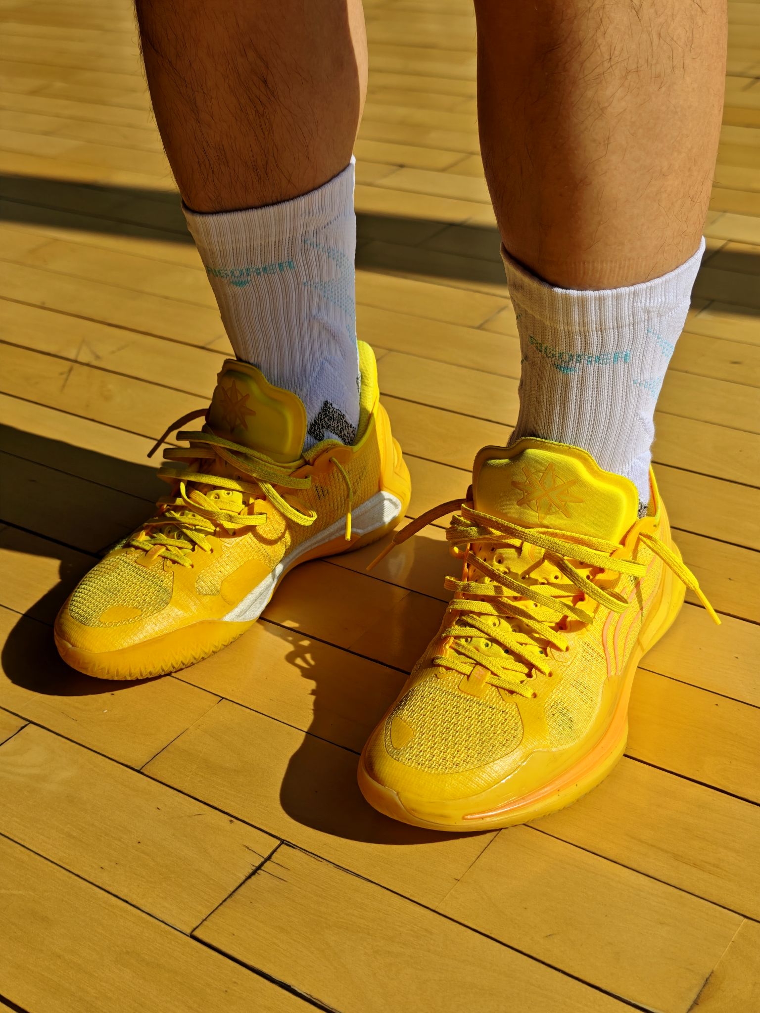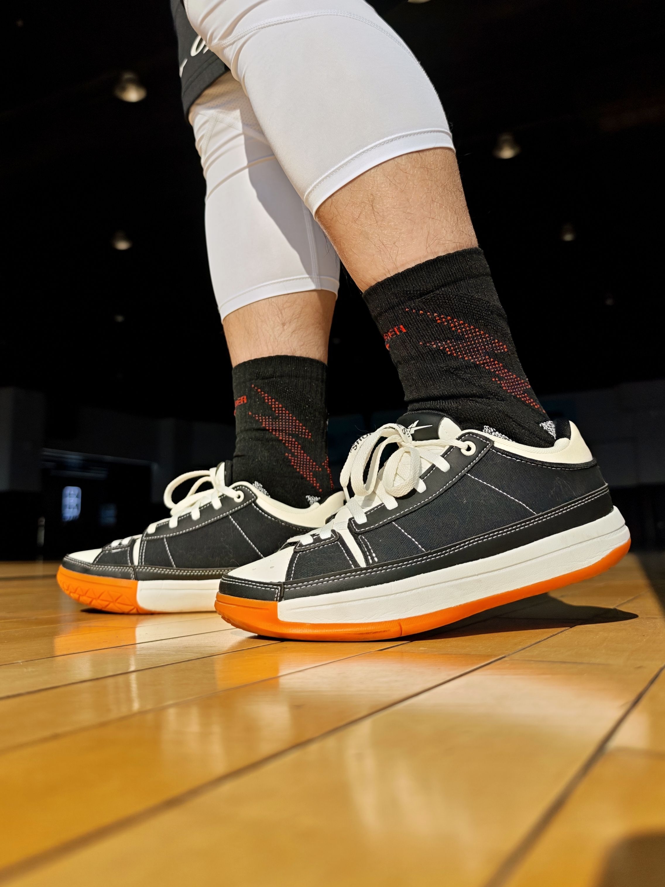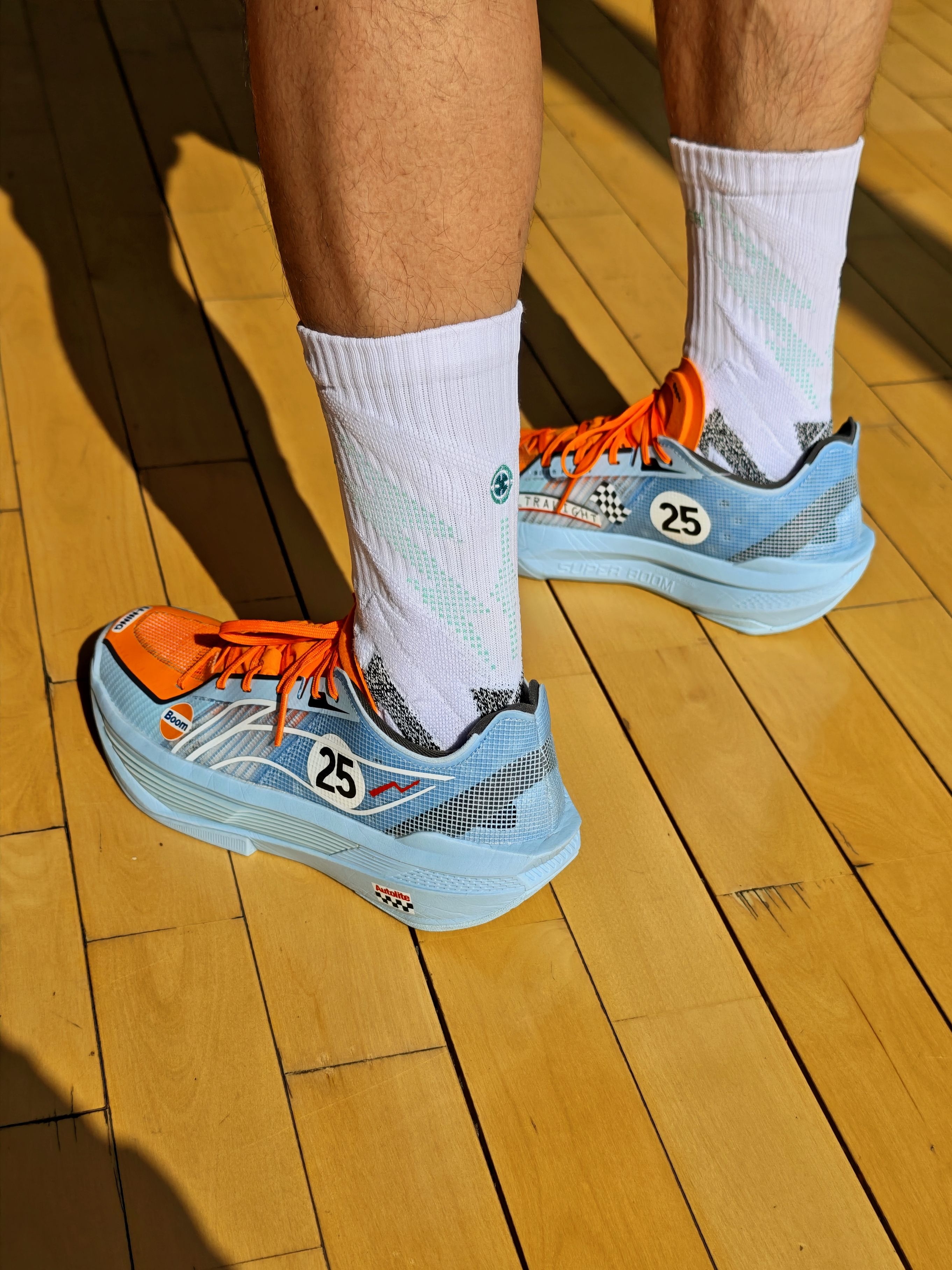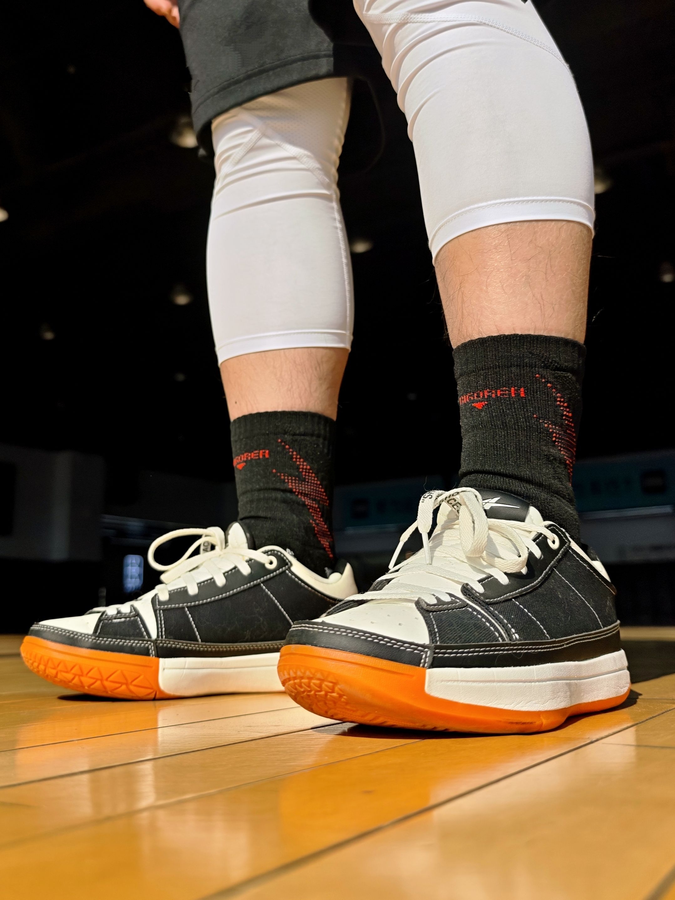 白黑闪电纹上脚超有辨识度,搭黑绿实战鞋往球场一站,光看袜子就知道是速度型选手✨。莱卡橡筋的袜筒弹性贼好,热身拉伸时扯到最大也不松,打满全场袜筒还紧紧贴在小腿上,完全不卷边也不勒得慌。 变向突破那一下,脚底防滑纱线跟鞋底粘在一起似的,急停再蹬地压根不打滑,快攻冲起来脚步都更利索了;抢板起跳落地,加厚毛圈把震感卸得干干净净,膝盖都少了不少压力。脚背的网眼跟开了小空调似的,三伏天打外场,打了三节脚还是...