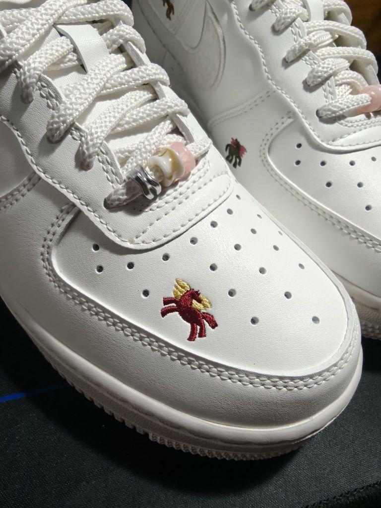 ✨一眼心动的新年限定 谁懂啊家人们!这双Nike Air Force 1马年限定真的美到我心坎里了~奶呼呼的白色鞋面配上精致小刺绣,鞋头的小蜜蜂🐝和花朵🌺图案超有新年氛围,黄粉渐变鞋带扣更是点睛之笔,阳光下还会反光! 👟上脚体验绝绝子 - 经典低帮设计对小个子超友好,显腿长一绝! - 鞋面是那种软软的皮质,踩进去像踩云朵☁️,暴走一天脚也不疼 - 透气孔设计夏天穿也不会闷脚,暴走两万步依旧干爽 🎁...