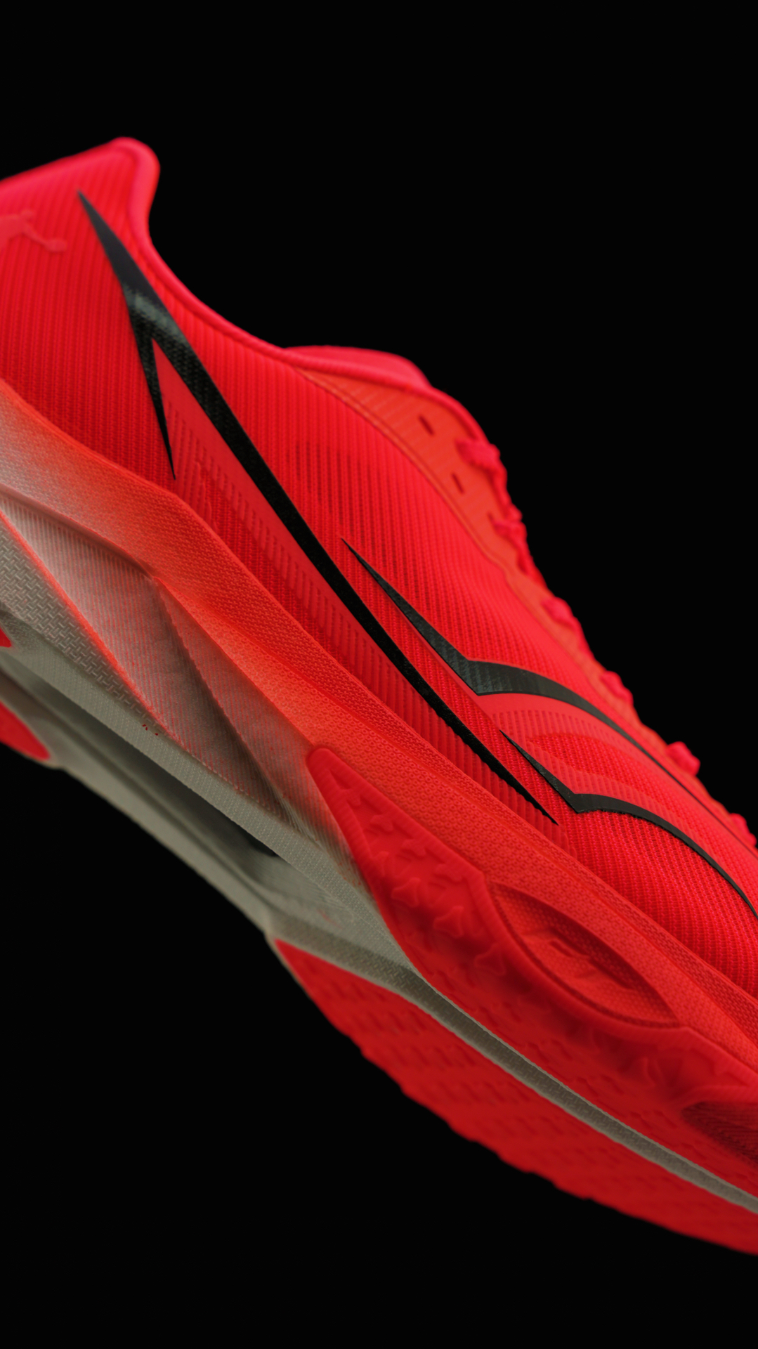 给兄弟们推荐一下这双#飞腾3风火轮 橘色鞋身加黑色线条,实物到手还挺帅。 鞋型属于那种偏薄底的竞训鞋,鞋面透气不错,很贴合我的脚背。脚感属于轻弹那种,缓震优秀,跑起来也不拖沓。很喜欢它在场地跑时的扒地感,前掌内外侧橡胶上翻,过弯很稳,中底的那块尼龙板,给了一定的支撑和推进,平时穿它上体育课、跑个间歇或者体考体测都够用,尺码我觉得正常选就行。 #新鞋零时差 #飞腾3 #飞腾3稳过弯超在前 #飞...