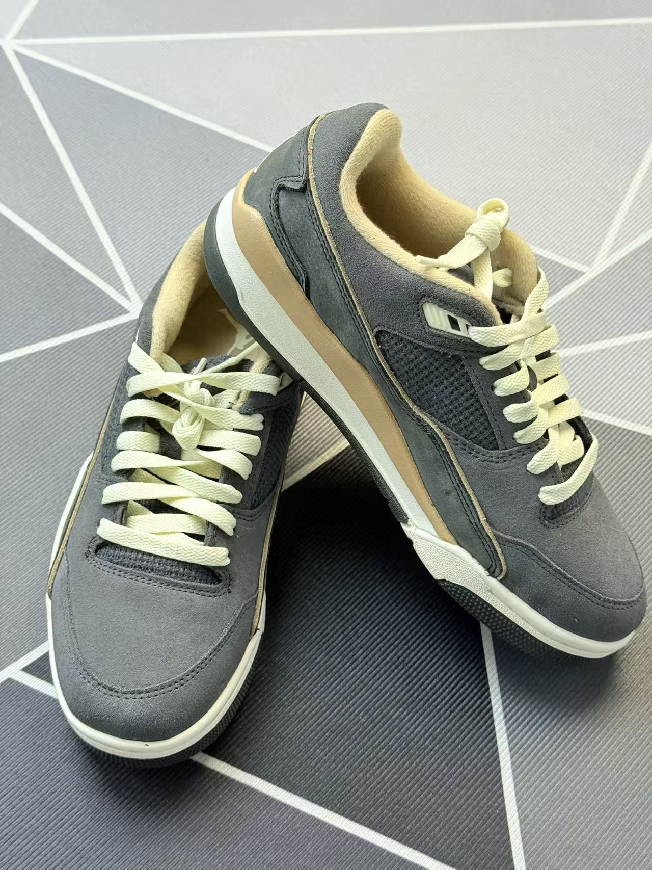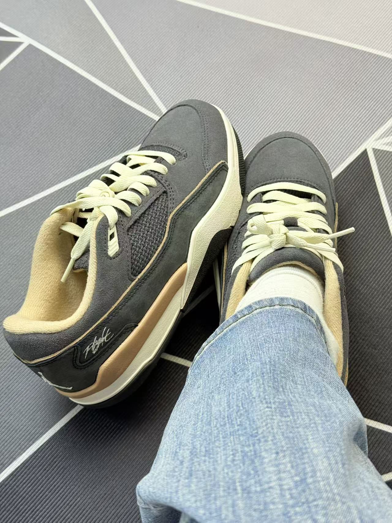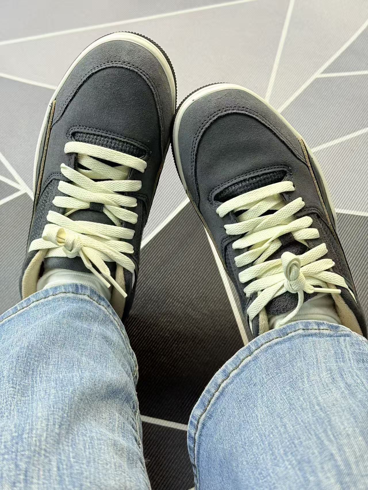 分享这双复古风板鞋的上脚感受吧🥾 鞋面是翻毛材质,摸起来质感很扎实,深灰拼米棕的配色特别有复古味儿,搭直筒牛仔裤很出效果,鞋型偏低帮,不会显得脚踝臃肿。鞋内里是绒面的,刚上脚的时候软乎乎的,贴脚感还不错。中底的缓震度适中,日常逛街走个几公里,脚底不会有明显的酸痛感。 缺点也很明显😮💨翻毛面特别容易吸灰沾污渍,穿了两次鞋头就蹭上了黑印,得用翻毛清洁刷慢慢打理。而且鞋楦偏窄,我正常脚型穿久了前掌...