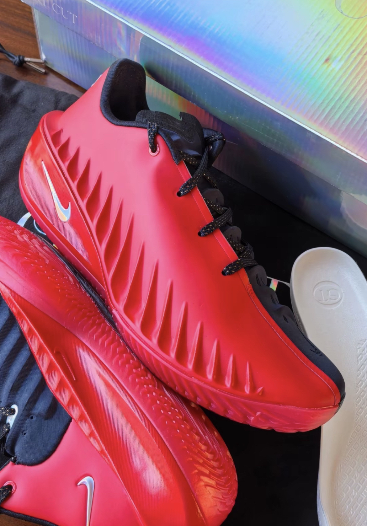 Cut4也是来了,原本是为了避开布克2推迟到2月,没想到现在直接偷跑,发售价依旧1499,配置全掌ZoomX鞋垫+全掌Zoom Strobel气垫,鞋垫脚感很软,感觉一脚就到底了,体感重心和1代差不多,但是鞋面的鞋脚一体性真的和1代没法比,不贴合还卡脚