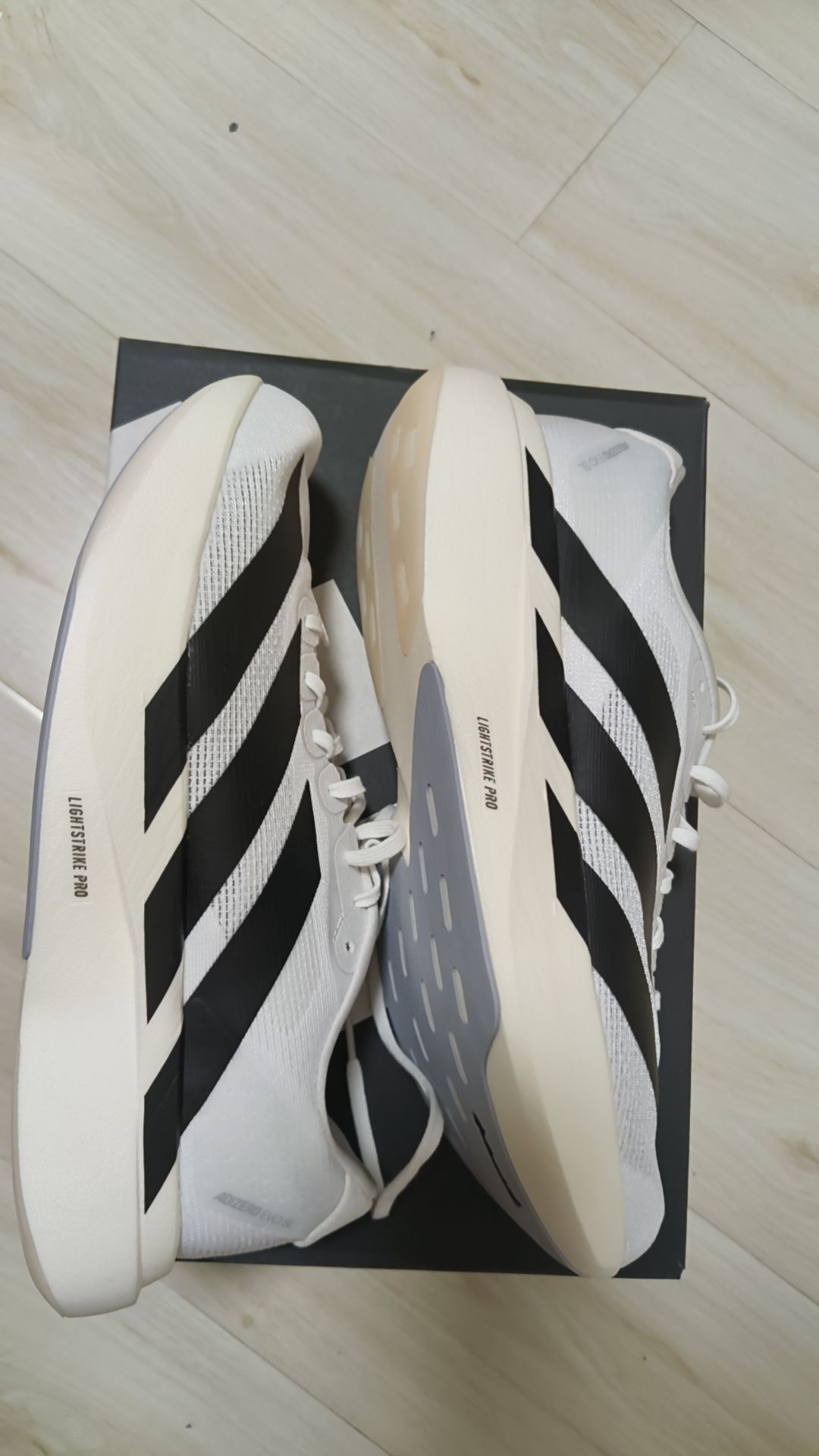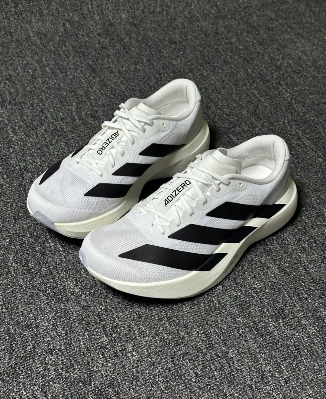💨 耐克优点: 脚感是真轻弹:中底踩上去像裹了层“能量垫”,跑间歇的时候每一步都省劲,配速一给就能冲起来😉 包裹够贴脚:鞋面裹得稳稳的,跑变向也不会晃,安全感直接拉满 缺点: 浅色太容易脏了!出门沾点灰就看得清清楚楚,洁癖党得勤刷鞋🧹 中底偏软厚,脚踝力量弱的话,落地可能会有点晃 💨 阿迪优点: 支撑性很在线:鞋面和中底的包裹感很稳,跑长距离也不会觉得“飘”,落地踏实 - 颜值耐看:白+黑的经典配...