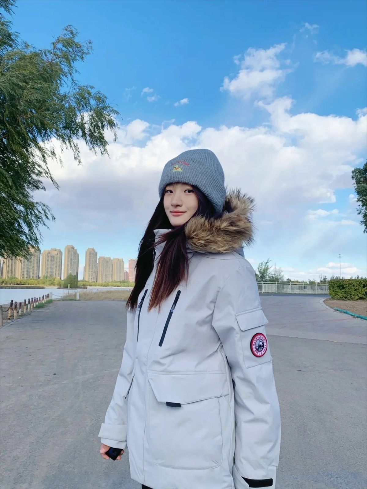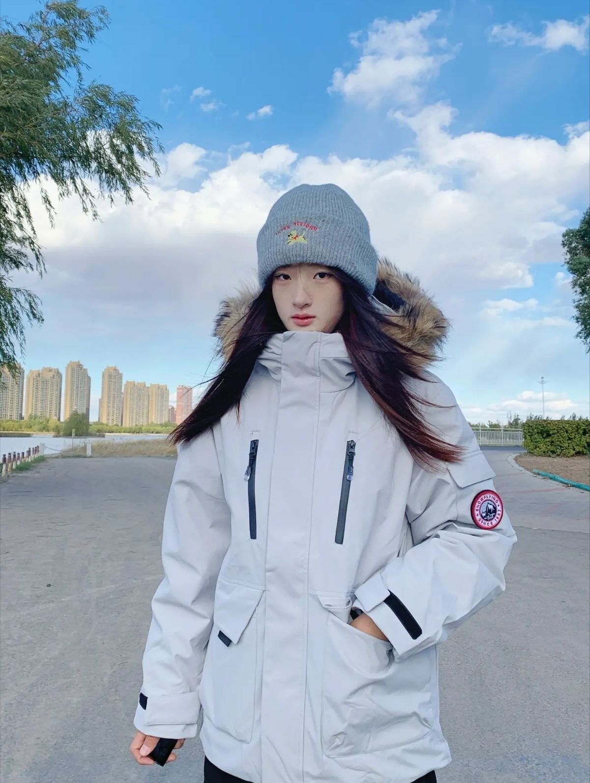 今天穿#雪中飞 SHOW FLYING 的这件灰色派克服 美到心巴了,韩系感满满(๑><๑) 配上同色系针织帽,有风度也有温度🫶🫶 袖子上的标志做的很吸睛,是雪山的图案🌨 里面填充的是鸭绒,量很足不会冷!今天室外只有2℃,但是穿着这个很暖和🤩🤩 长领设计就很抗风,脖子也不冷啦 最后想说的就是这个毛领,点睛之笔就是他了 很高级的颜色 给这件衣服更加添上一抹色彩啦~ 163/104M码刚刚好