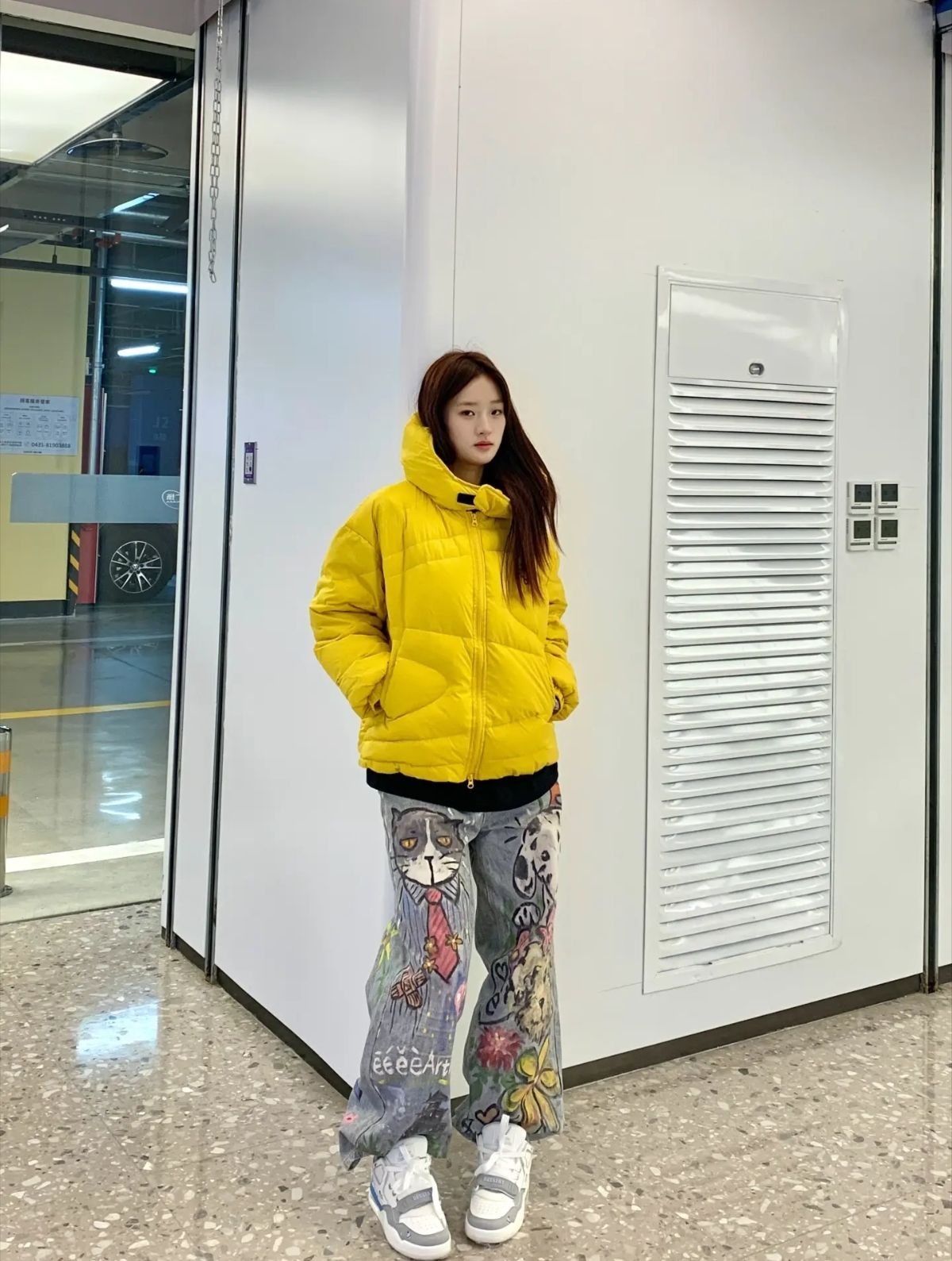 冬天不想再穿黑白灰 那就试试早乙女惠子家的黄色羽绒服💛 面料滑滑的 我穿的M码 充绒量有159g 内里填充的是白鸭绒 上身的版型敲好看 不仅可以搭配出可爱风 潮流感也是不在话下 冬天❄️出片就靠它啦!