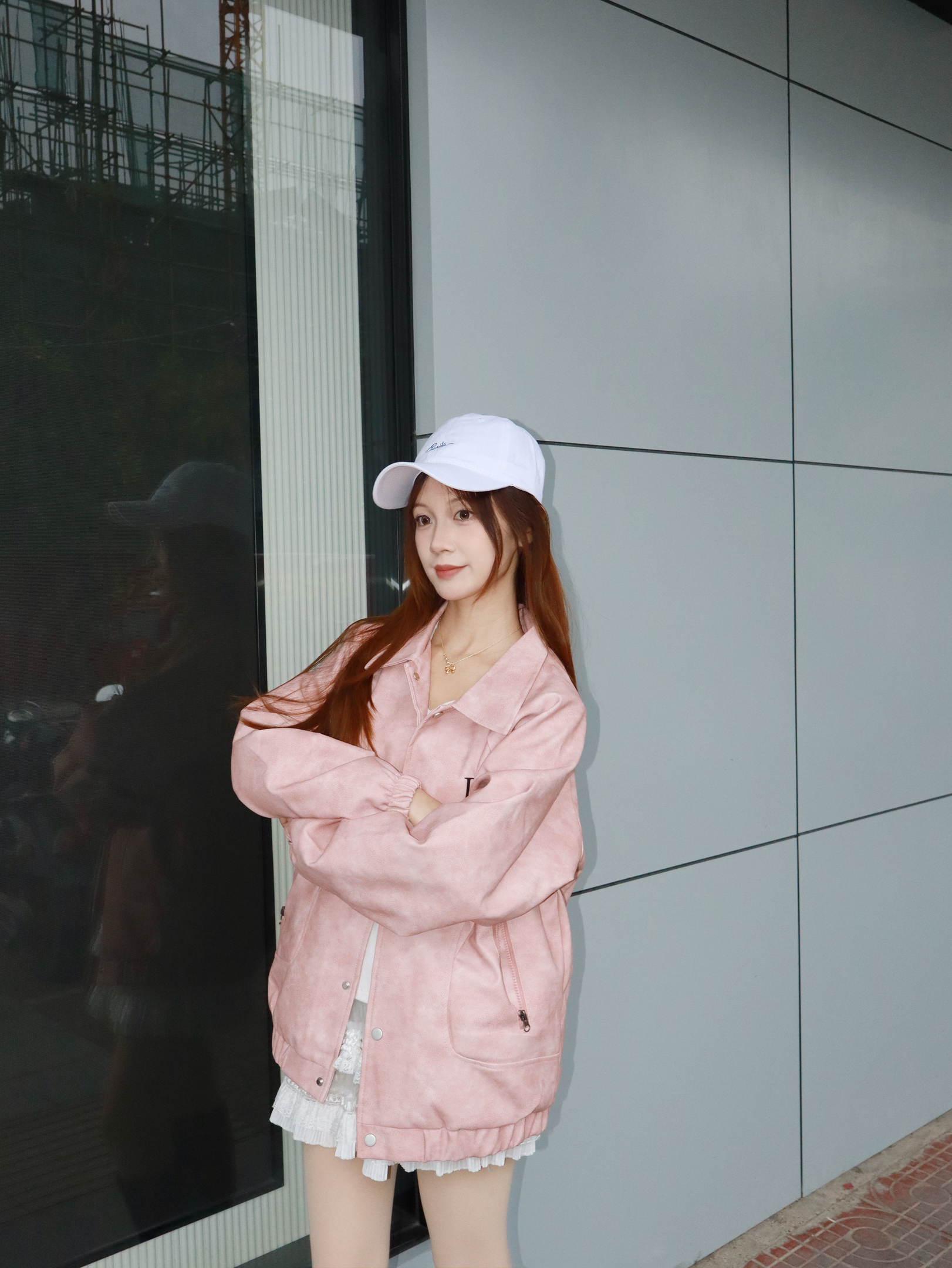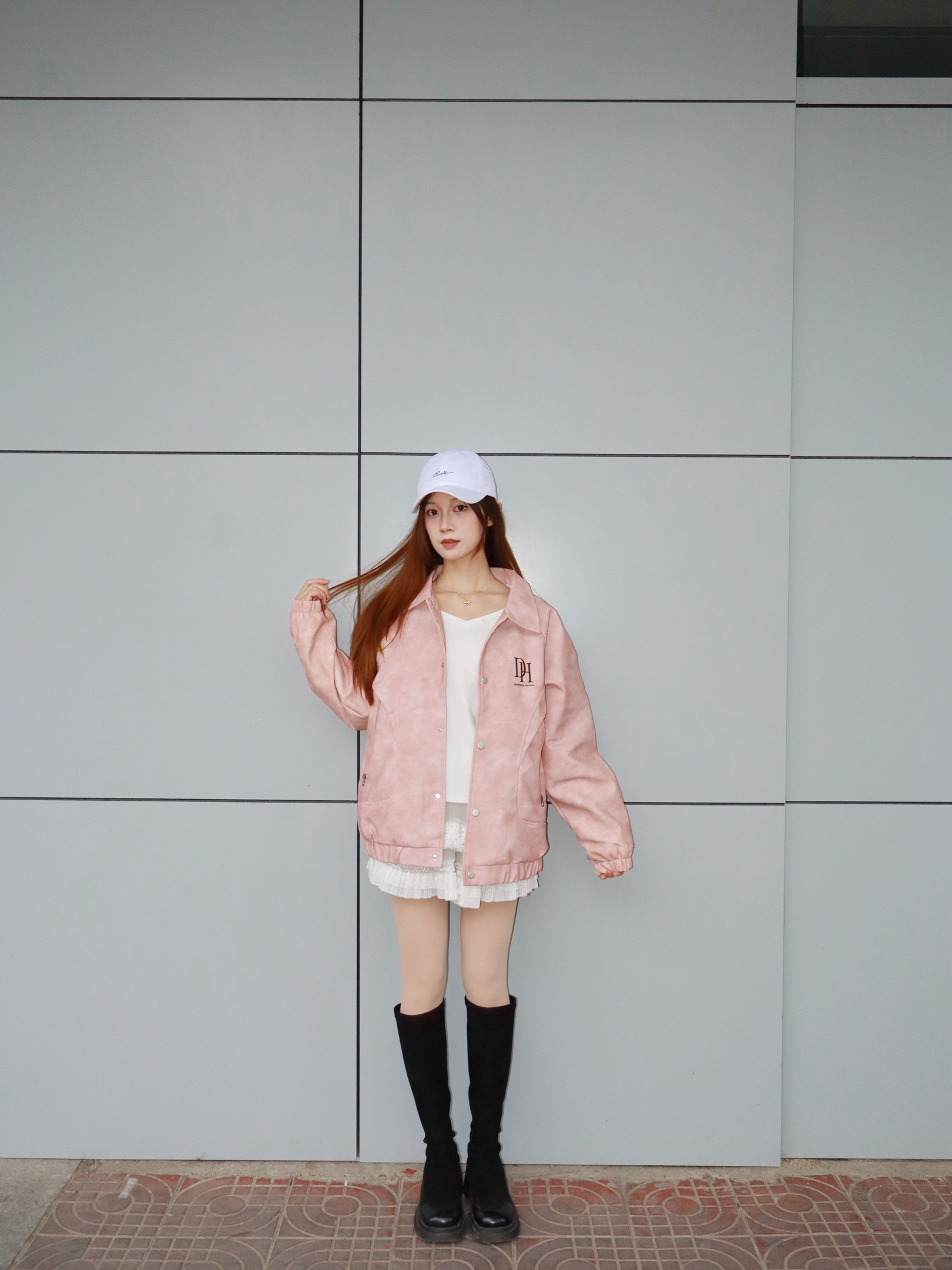 粉色棒球服也太少女了吧,软乎乎的面料贴身穿很舒服,搭配长靴露一点点裙摆,甜酷感拉满~日常出门随便搭都不踩雷,宽松版型对身材的包容度也超赞。