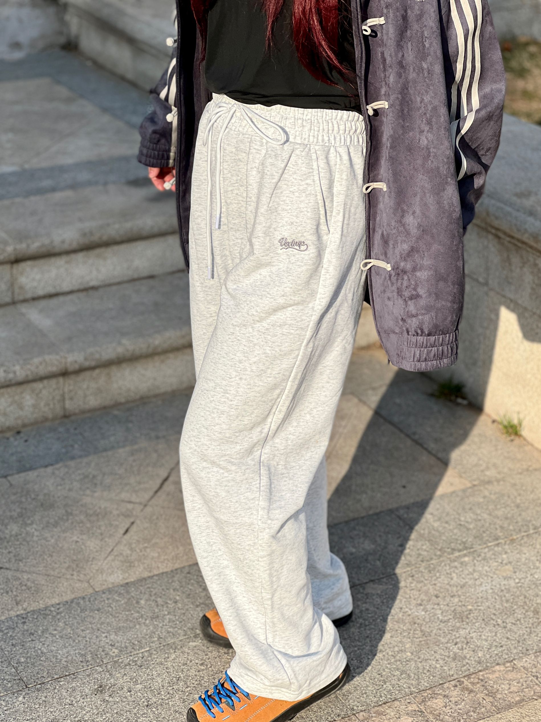 小个子o型腿实测📝这条卫裤真的显腿直显腿长❗️ 宽松➕直筒双重buff,想不显腿长都难~ 我觉得休闲穿搭少不了一条舒适又随性的卫裤 宽腰头更显质感也更遮肚子 口袋处的🏷️ 维动 VEIDOORN 刺绣低调又点睛 我身高158cm,体重54kg,穿得花灰色s码 宽松舒服,活动自如。