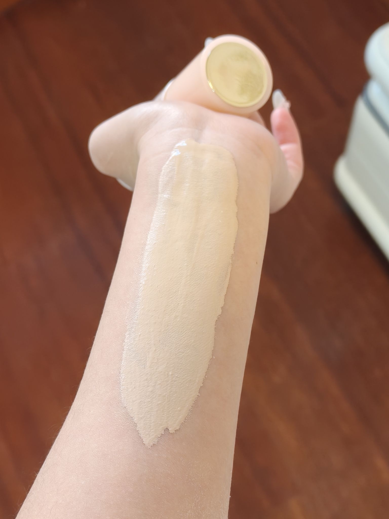 一到换季皮肤状态就跟开盲盒似的 底妆卡粉斑驳到想直接摆烂 直到我挖到这个半桃轻氧裸肌粉底液 现在底妆服帖到像自己长出来的第二层皮 挤出来是那种水润到会流动的丝滑质地 上脸用美妆蛋随便拍拍就扒得敲牢 滋润还不会假白 反而是那种透着光的自然裸肌感 小痘印泛红都能遮得七七八八 随便抹抹都能拥有妈生好皮既视 持妆度也OK 出去玩一整天都没怎么脱妆 这个冬天有它在终于可以安心啦