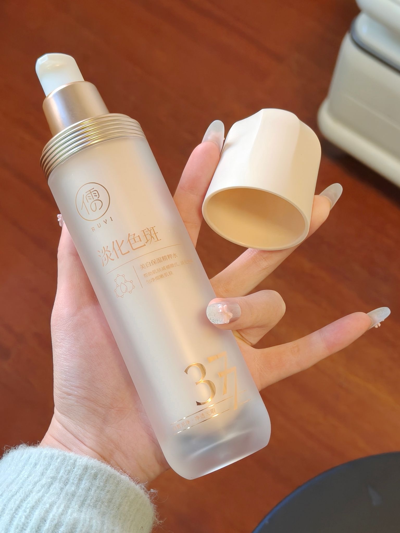 连续一周熬夜到凌晨睡 镜子里的自己黄得像颗蔫了的柠檬 直到被闺蜜按头安利了儒意377美白淡斑水乳 现在我直接焊死在脸上 主打的377美白成分+烟酰胺buff叠满 淡斑提亮+深层补水双管齐下 黄气暗沉痘印什么的都不存在的 精华水流动性很不错 上脸嗖地一下就吸收了 精华乳是糯叽叽的酸奶质地 抹开水水润润不黏枕头 后续上妆服帖到不行 连粉底液都省了 爱熬夜的姐妹们冲就完了