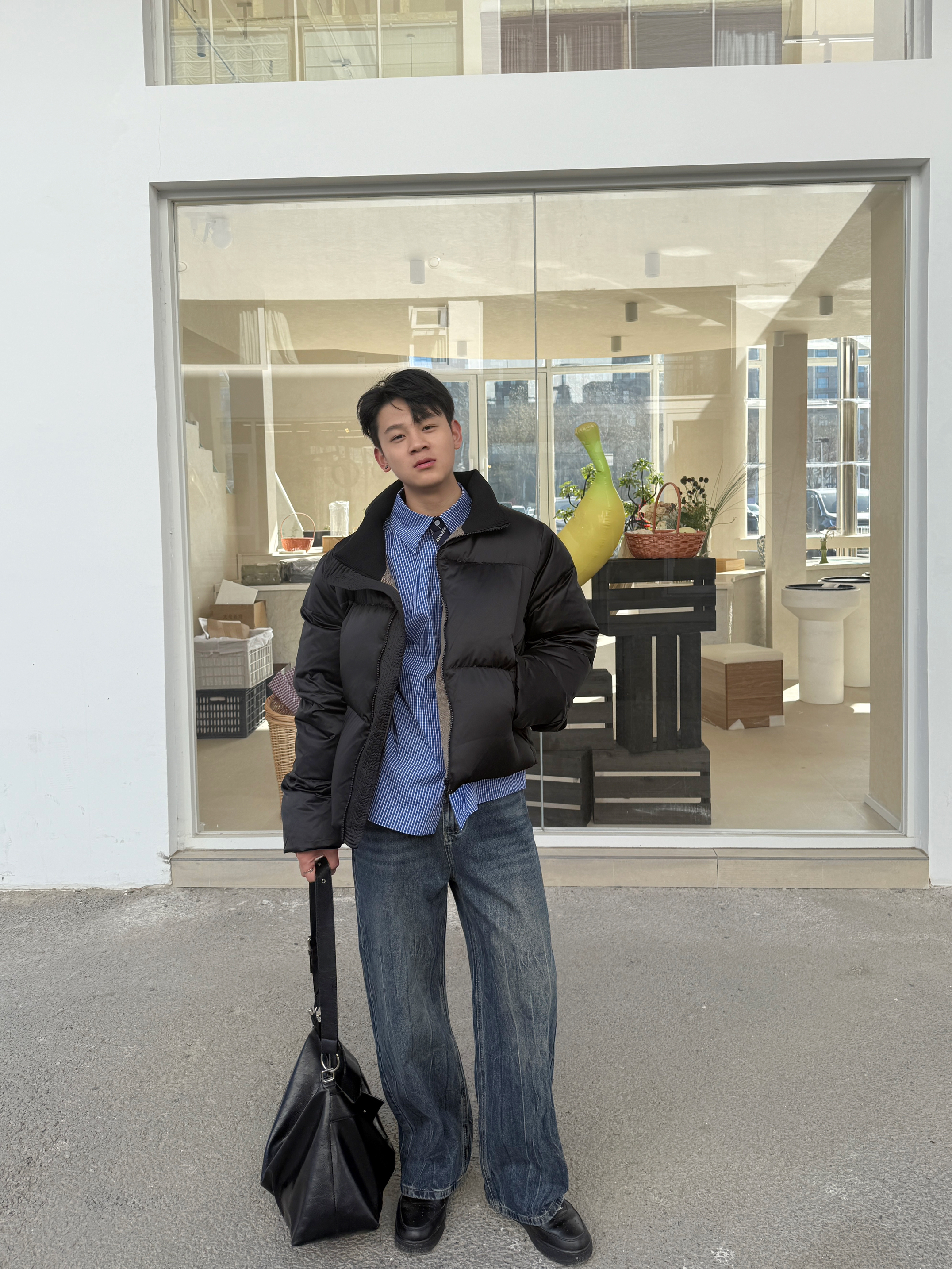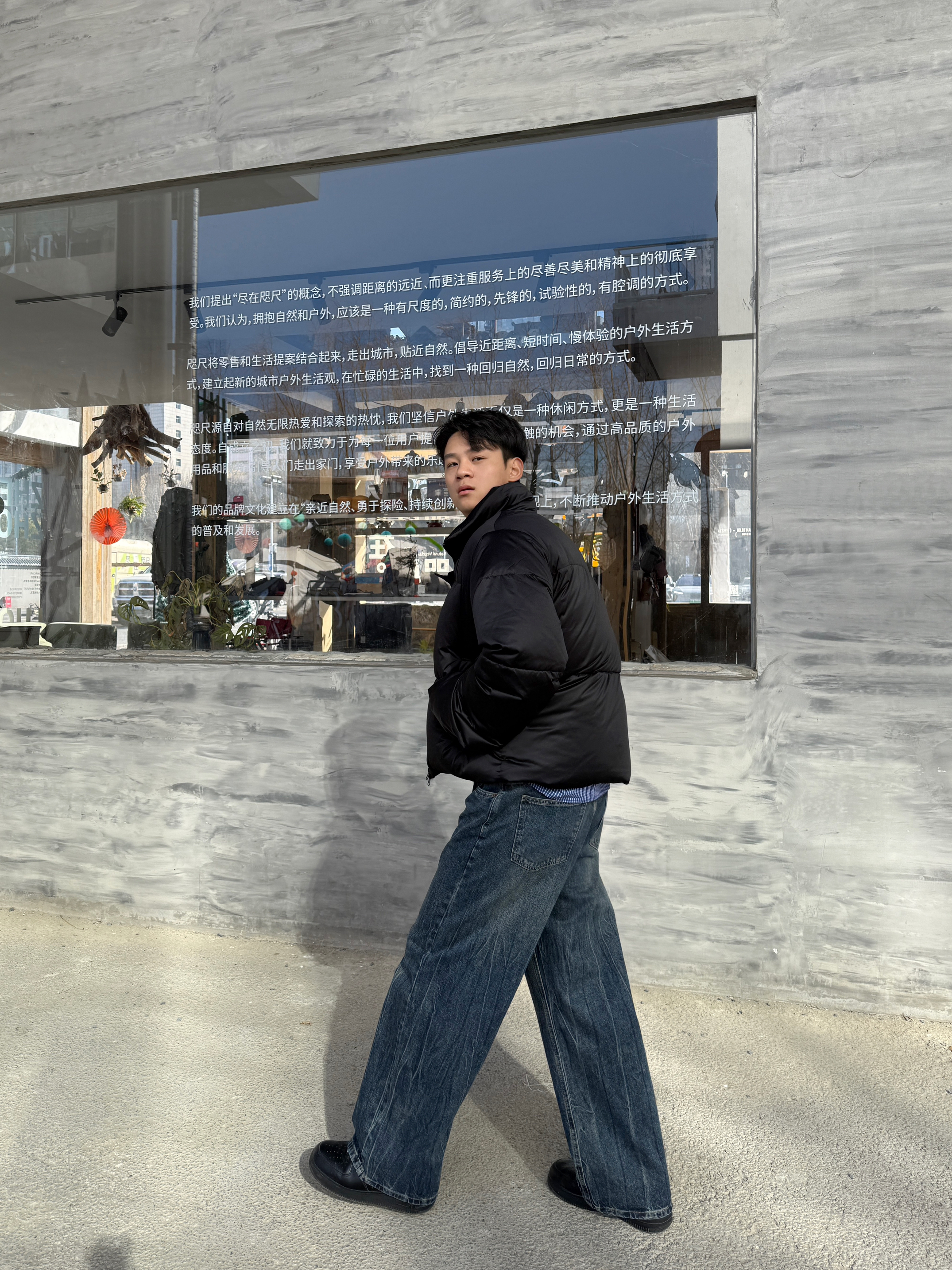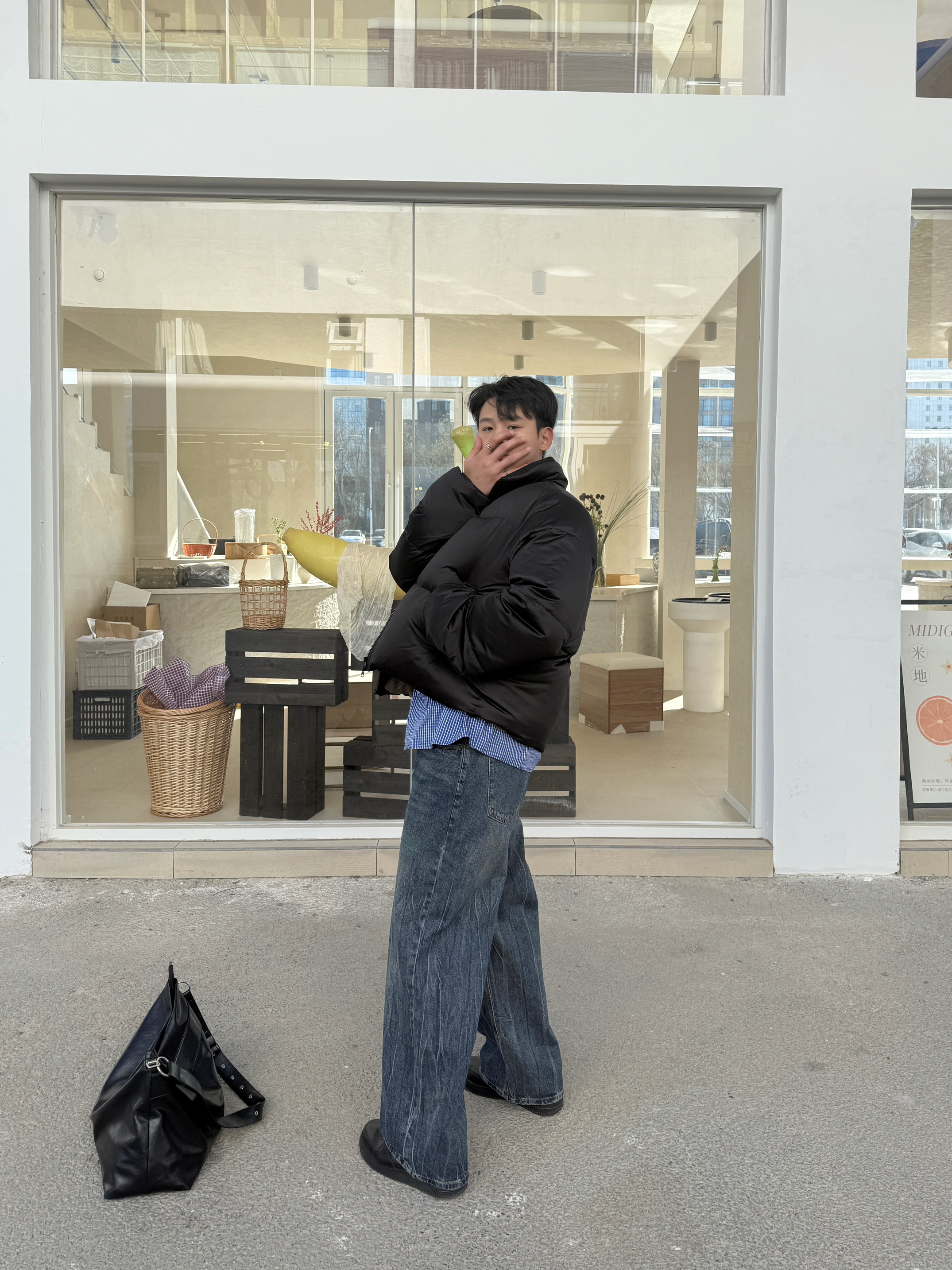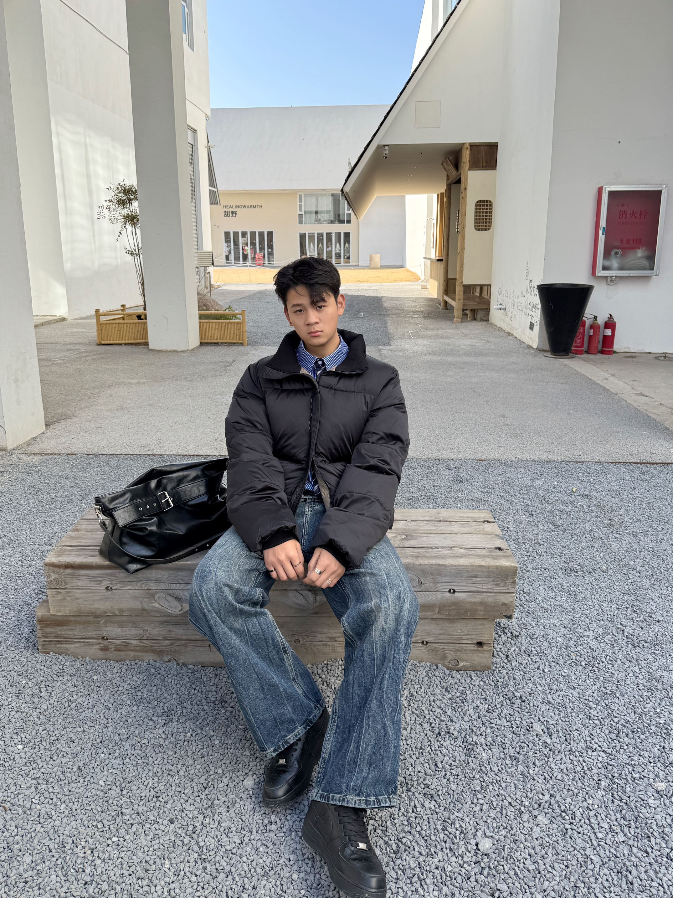 冬天的穿搭往往在于裤子的选择 来看看我的今日份ootd 上衣我选择一件短款棉服 蓝色衬衫作为内搭,层次感明显 裤子我选择一件美式水洗做旧牛仔裤 直筒微宽松的版型穿起来不挑腿型 水洗做旧牛仔面料,垂感十足 最后鞋子来一双黑色板鞋 这样一身下来复古感多一点
