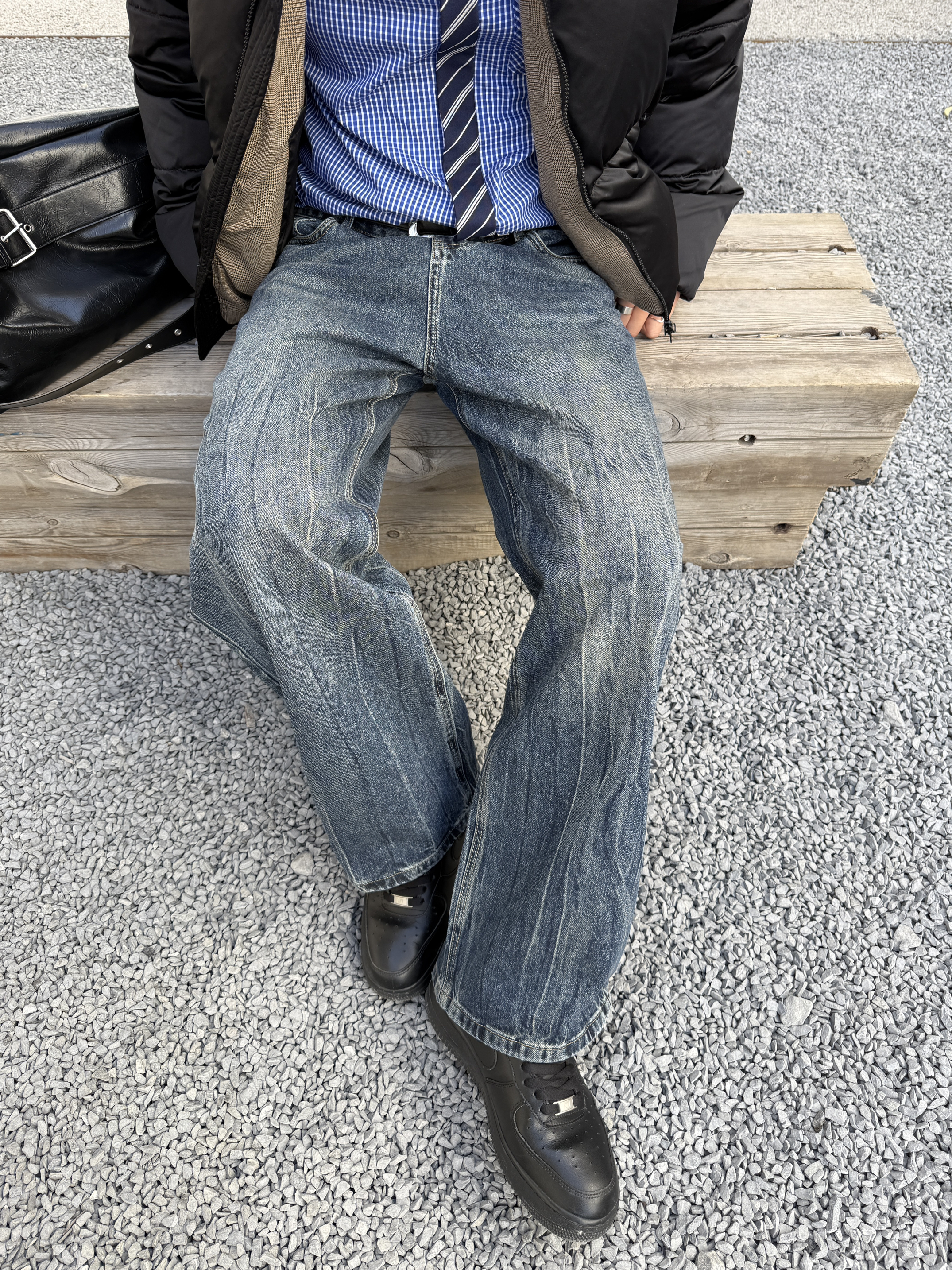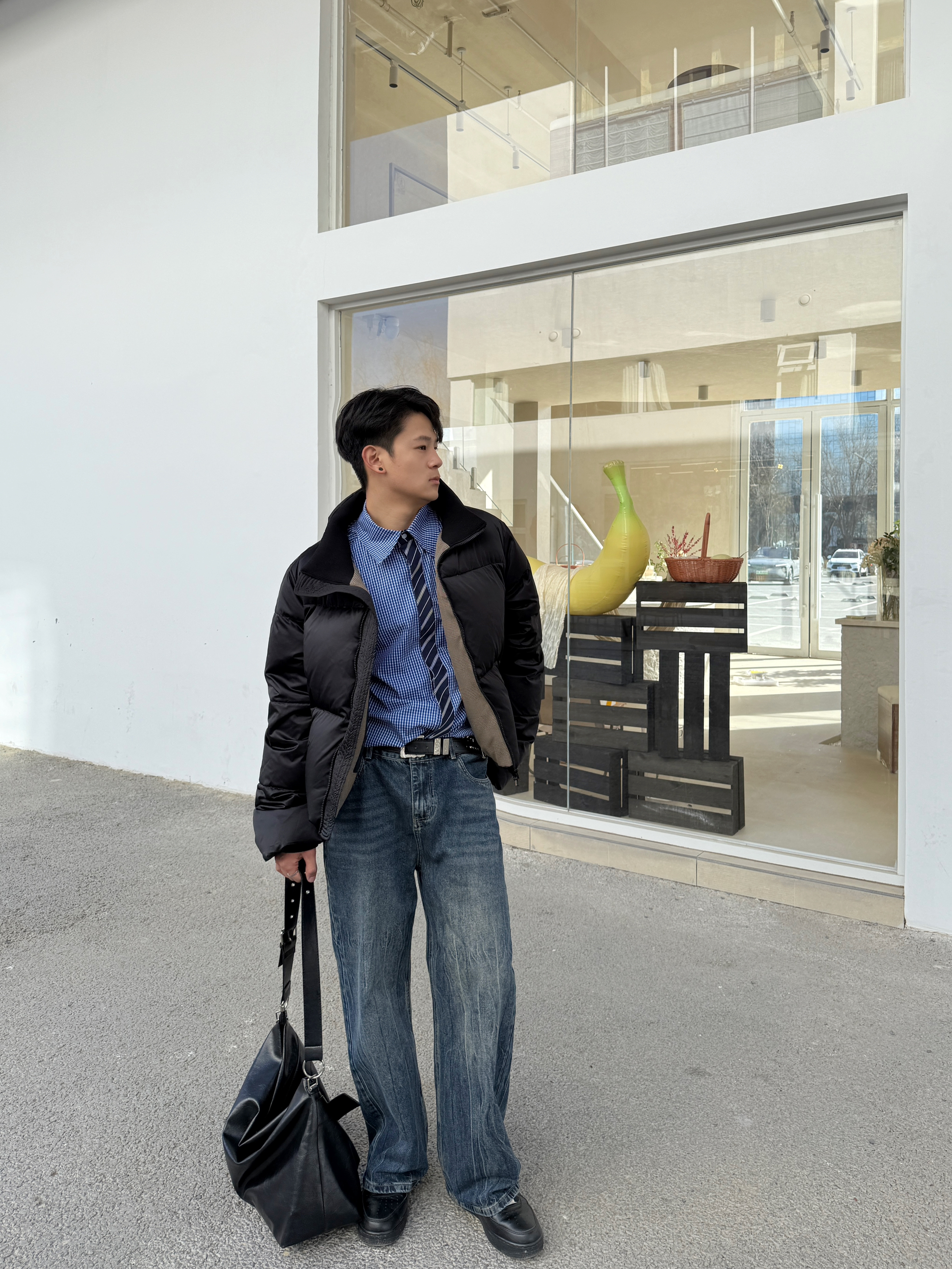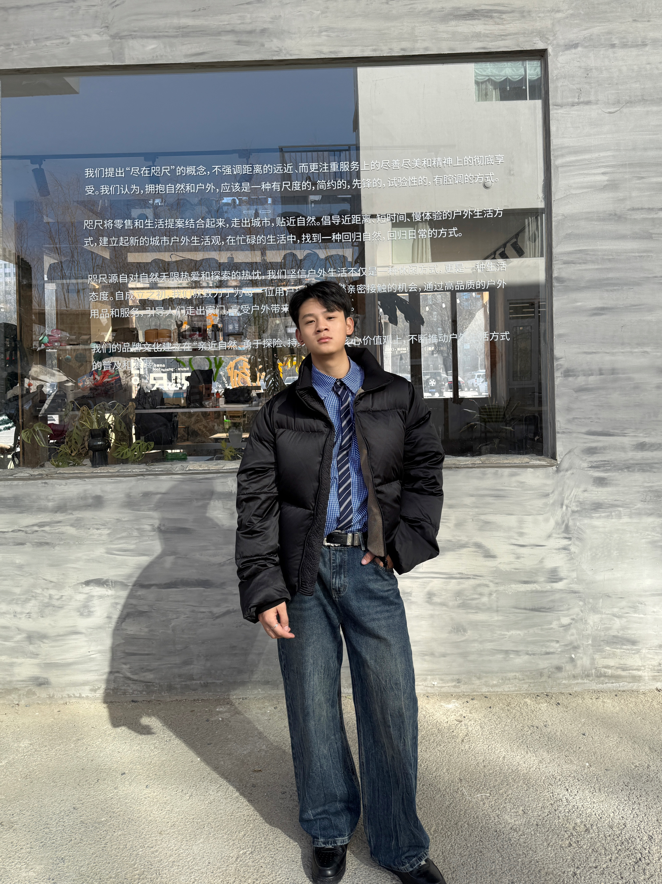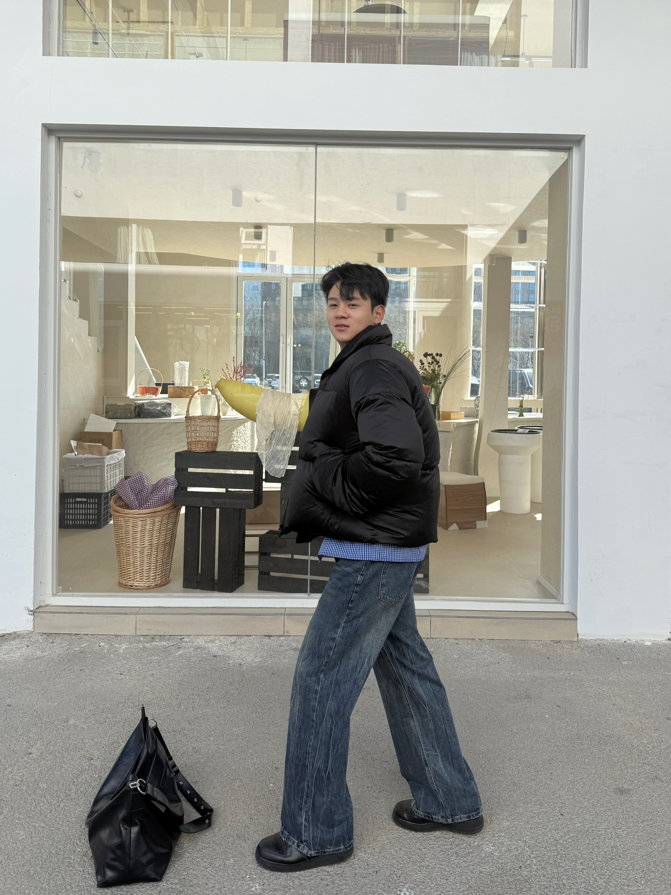 冬天的穿搭往往在于裤子的选择 来看看我的今日份ootd 上衣我选择一件短款棉服 蓝色衬衫作为内搭,层次感明显 裤子我选择一件美式水洗做旧牛仔裤 直筒微宽松的版型穿起来不挑腿型 水洗做旧牛仔面料,垂感十足 最后鞋子来一双黑色板鞋 这样一身下来复古感多一点