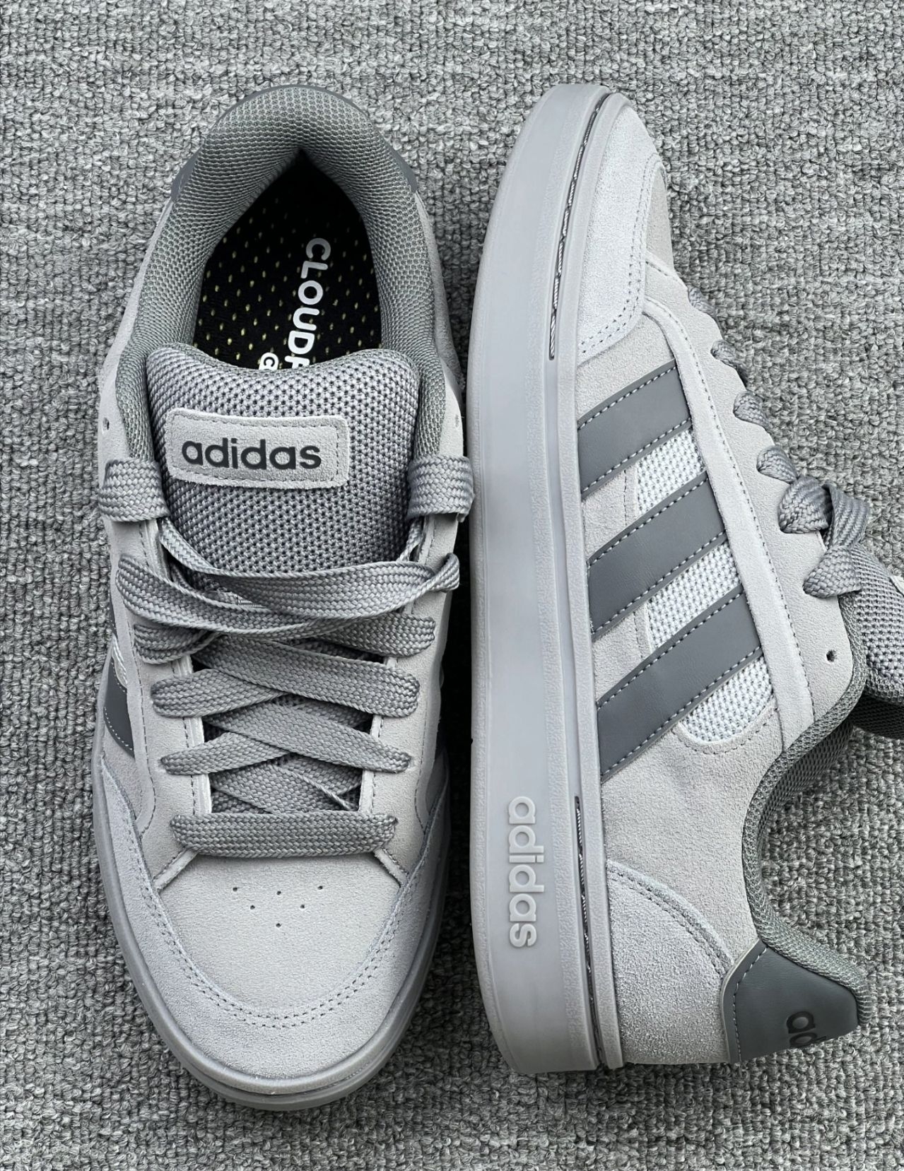 这双adidas GRAND COURT ALPHA SK8灰色板鞋 真的是颜值与“小麻烦”并存😮💨!麂皮材质摸着手感超赞 搭配网布拼接让春秋穿起来透气不闷脚 浅灰调还巨百搭 牛仔裤、束脚裤随便搭都好看👖 但麂皮太容易东西了 要注意 脚感方面 Cloudfoam鞋垫缓震中等 日常走路不累 鞋身重量也轻 上脚毫无负重感~ 不过鞋型偏窄 宽脚姐妹建议选大半码 久站或走远路脚底会有点酸胀感 而且...
