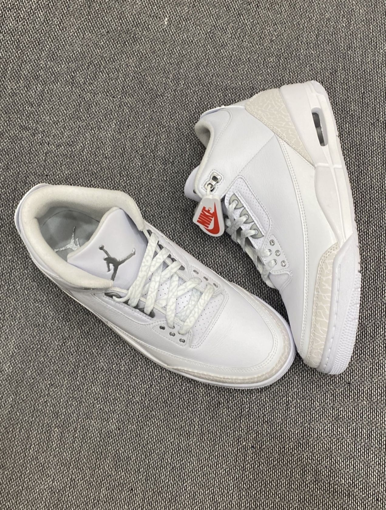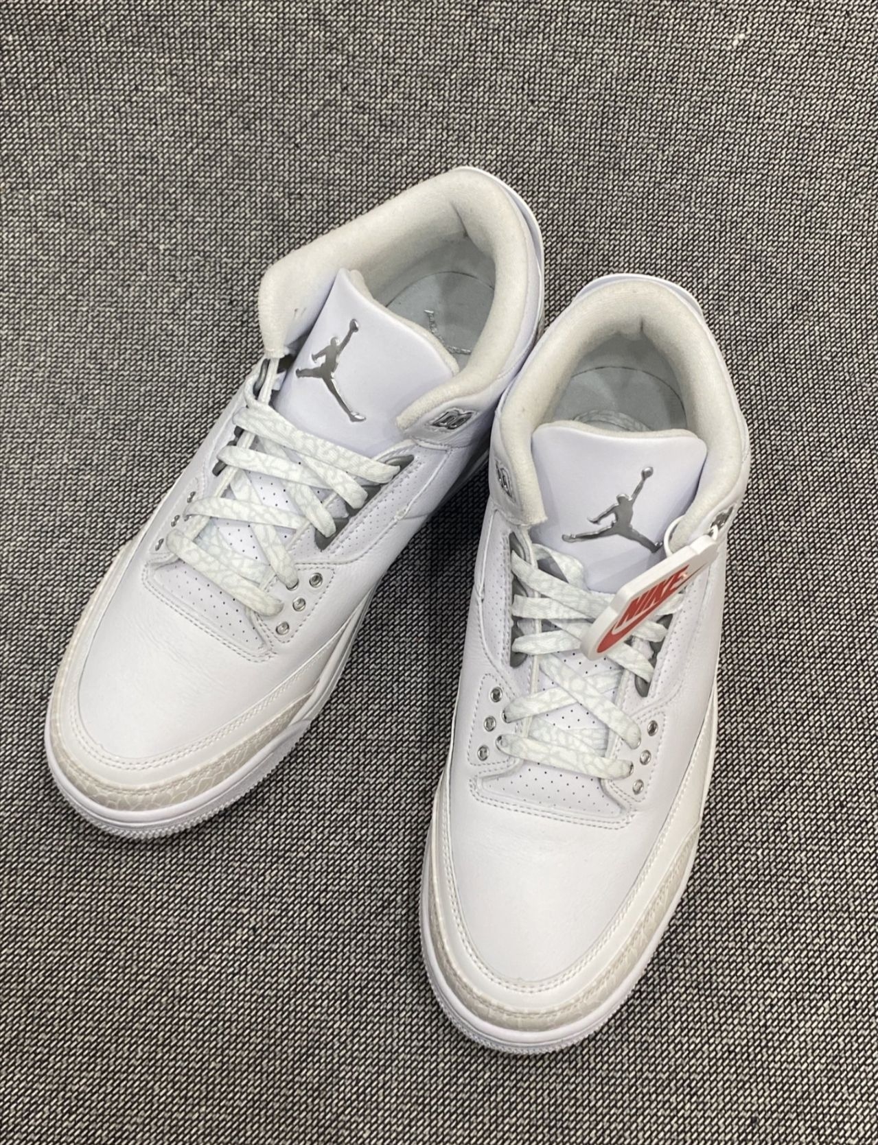 本篇笔记关联了Air Jordan 3 运动休闲鞋 潮流复古抓地支撑缓震合成革圆头 金属银/白色等商品,为用户提供真实的使用体验和购买参考。