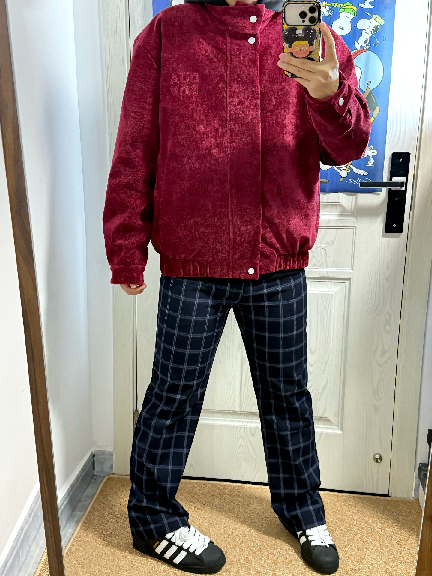 【酒红🍷肌理夹克➕格纹裤🧩/复古休闲风穿搭公式get!】,由用户 王小旭_ 分享,来自河南。这是一篇来自识货社区的真实用户分享笔记。