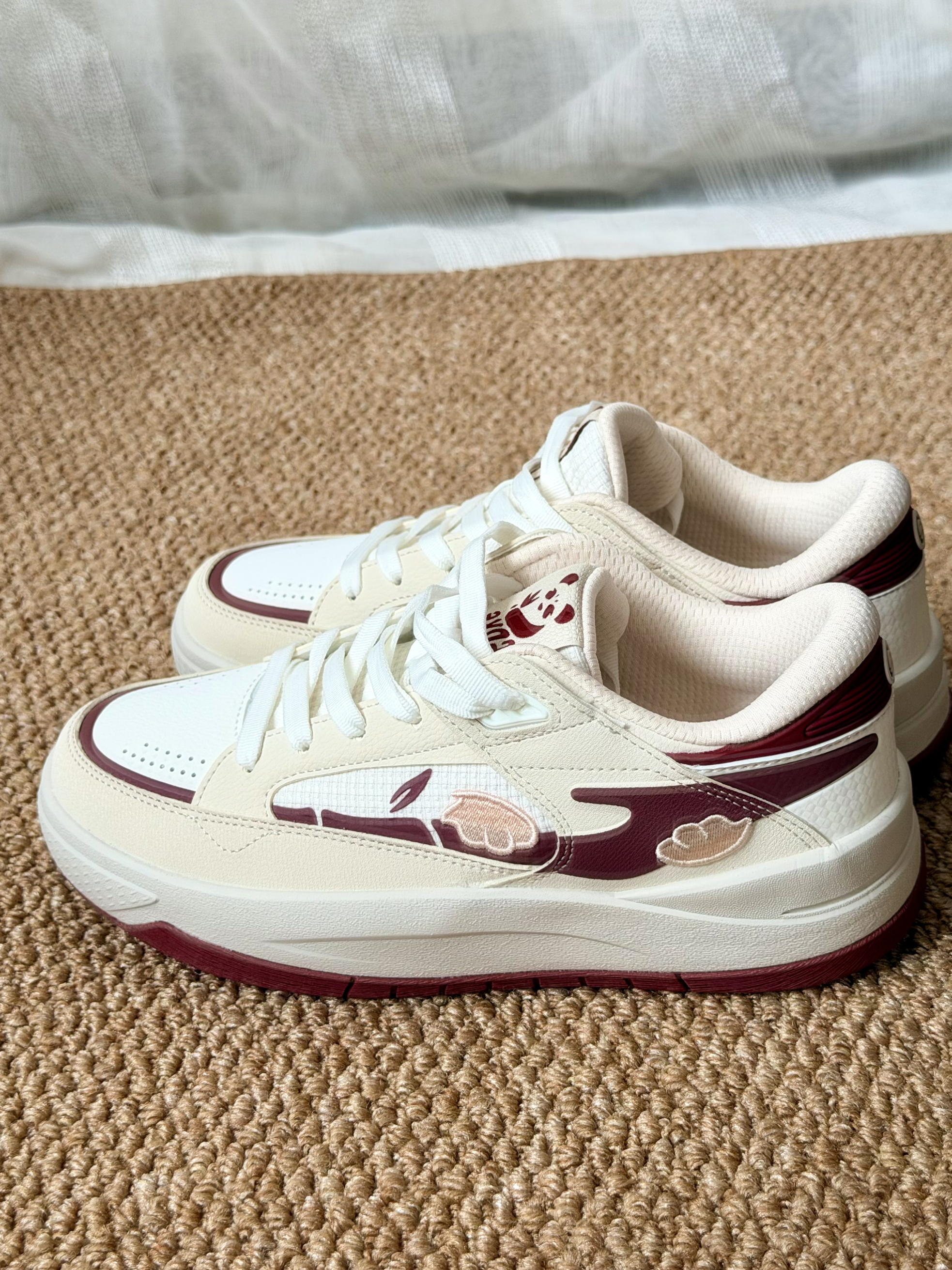 新入手了 鸿星尔克 的电池熊猫4lite板鞋! 米红配色复古又百搭挺有新年氛围感的~ 脚感蛮软弹的 而且鞋子轻盈一点也不笨重 过年走亲穿超合适走一天也不累! 鞋侧刺绣细节感满满熊猫元素还有点俏皮可爱✌️ 厚底还悄悄增高拉长身高比例🫶 100出头性价比是尊嘟香国货现在越来越 good 👍