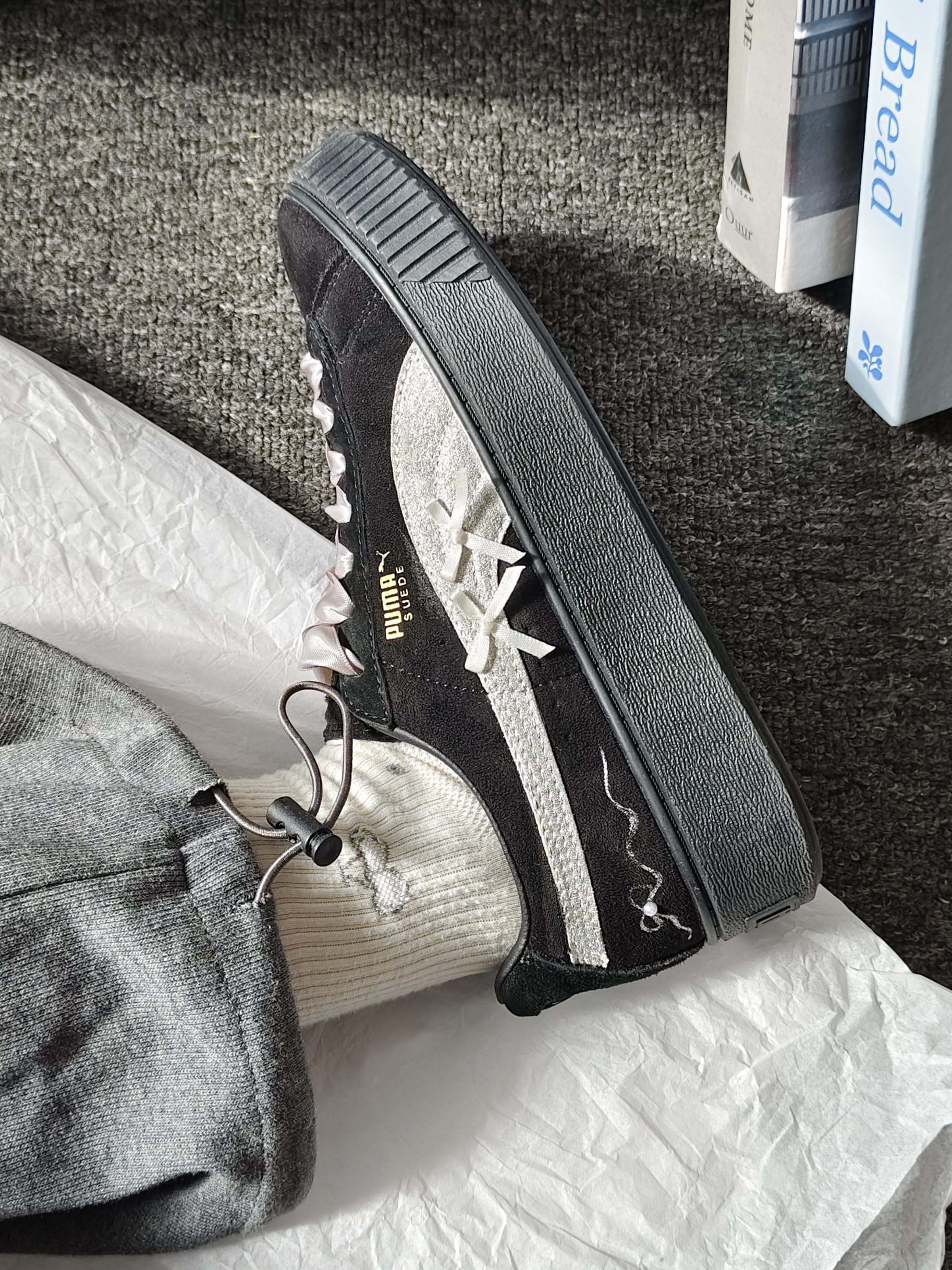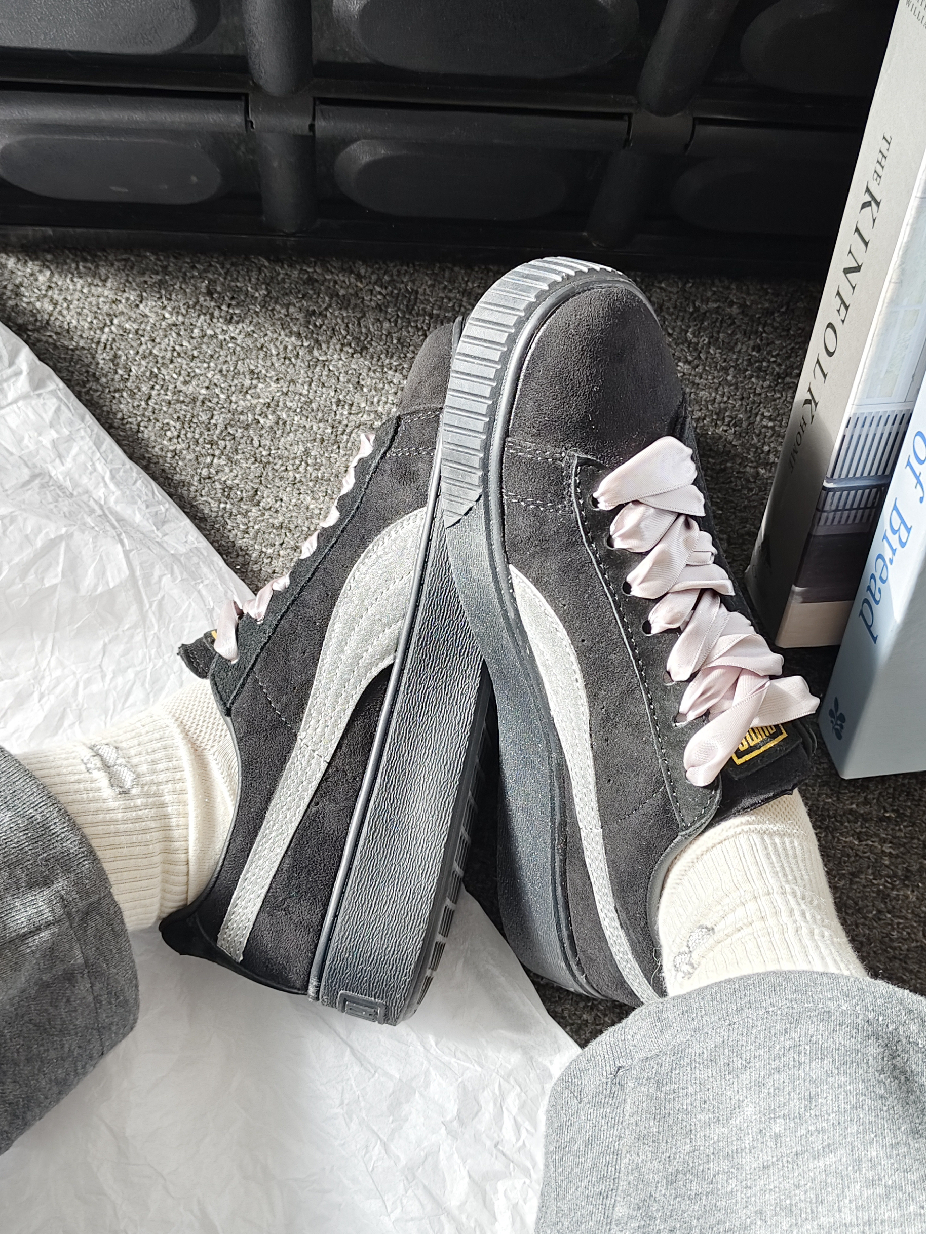 本篇笔记关联了Puma/彪马 Suede Platform Rihana 蕾哈娜 松糕鞋 板鞋 复古百搭防滑耐磨舒适厚底休闲 黑白金标/黑底等商品,为用户提供真实的使用体验和购买参考。