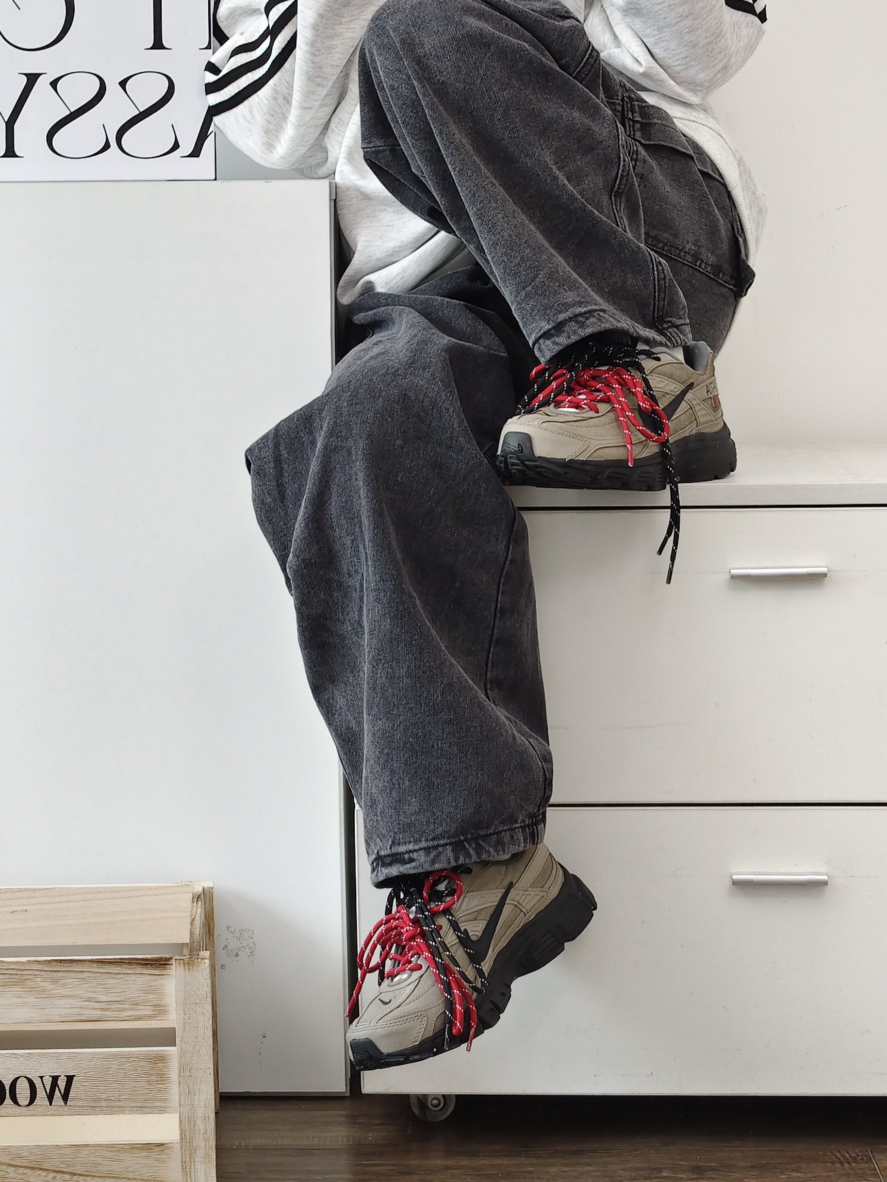 不得不说这双鞋的颜值是真的在线😻!绒面的质感摸起来很舒服,粉缎鞋带还能自己换风格,甜酷切换超方便。上脚后整体的搭配感拉满,出门随便拍都很出片,单论颜值这块,真的完全被拿捏了
