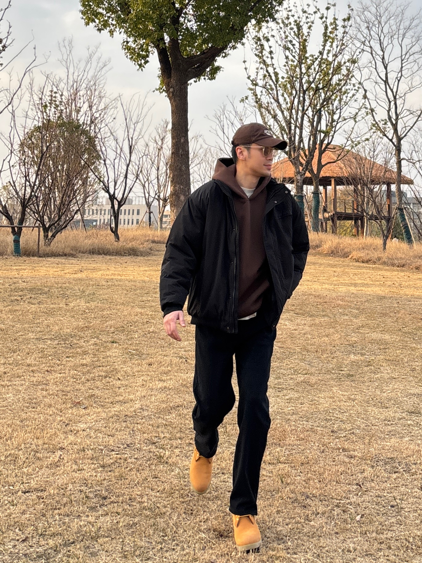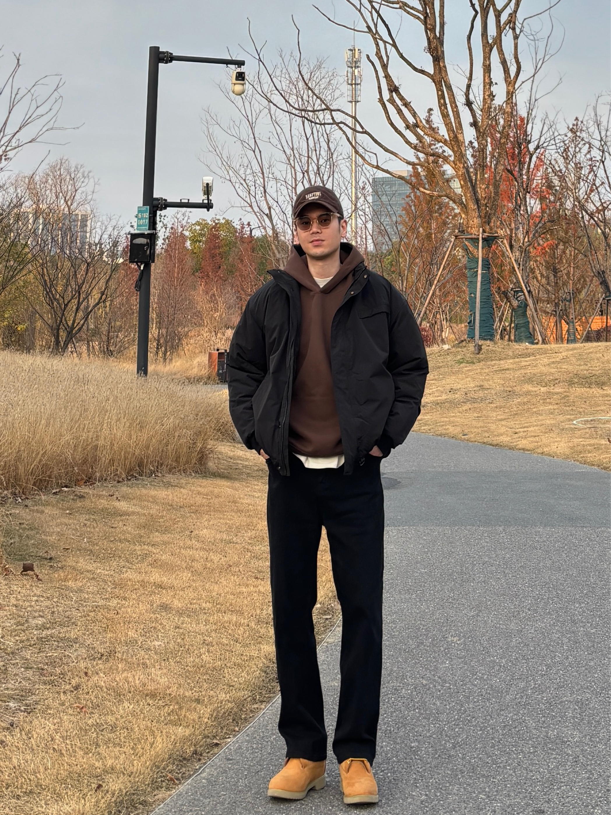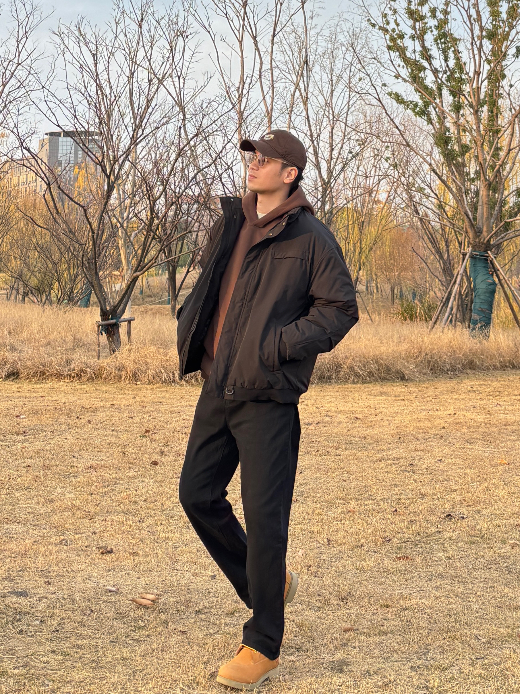 冬天男生想要穿出辨识度,那就来试试黑咖配色的工装穿搭吧🤩 上身黑色立领防风棉服,版型挺括不软塌,立领挡风还能修饰脖颈线条,工装风的设计自带硬朗感,穿起来特别有范儿。 内搭选择咖啡色连帽卫衣叠穿,基础款百搭不挑人,深咖色系和黑色系搭配高级感满满。 下装穿一条黑色水洗牛仔裤,直筒版型利落显腿长,小个子也能轻松驾驭✌️ 最后黄棕色中帮工装靴一上脚,复古工装氛围不就有了嘛😎 - 今日搭配 衣服裤子:NIC...