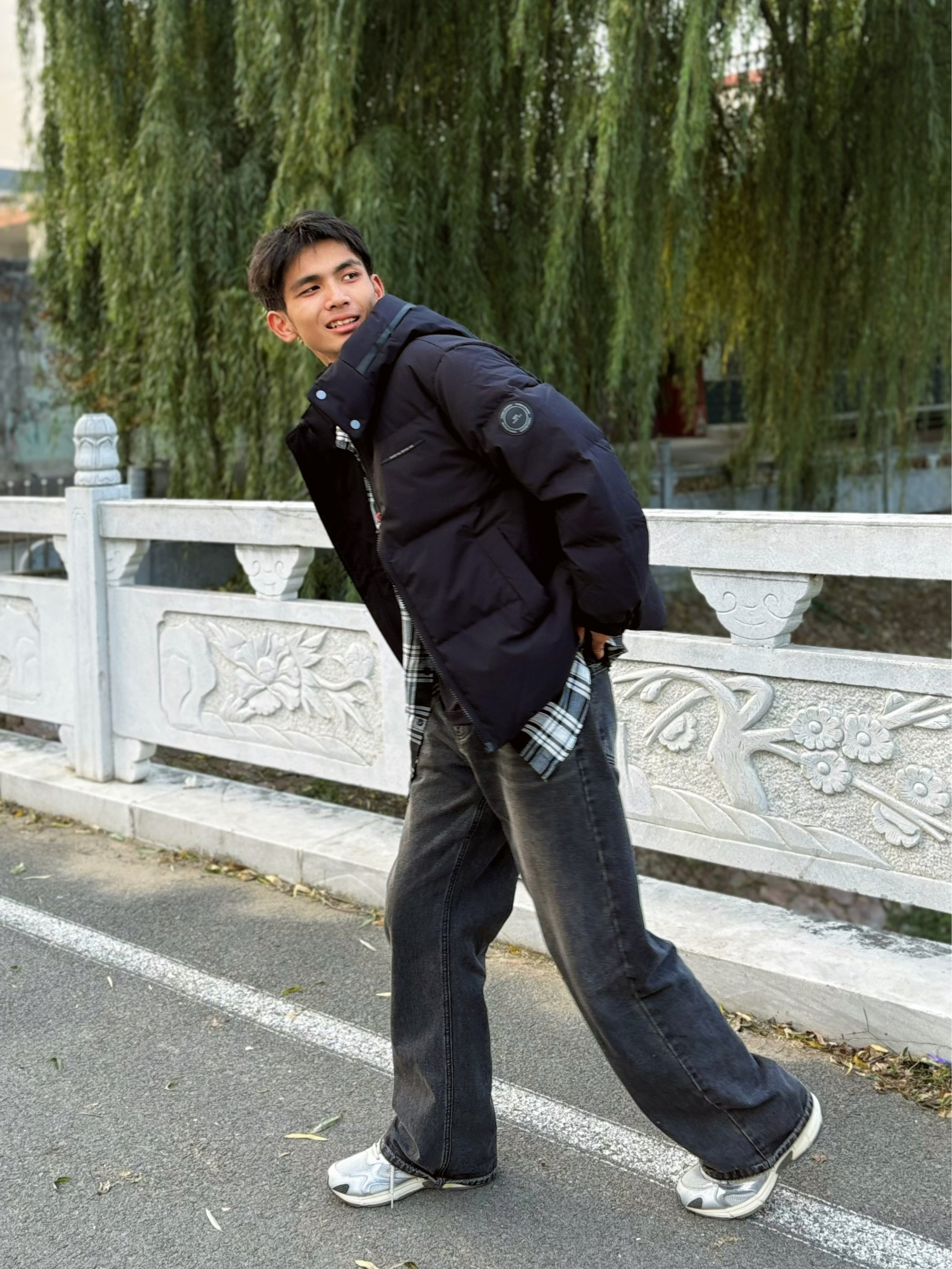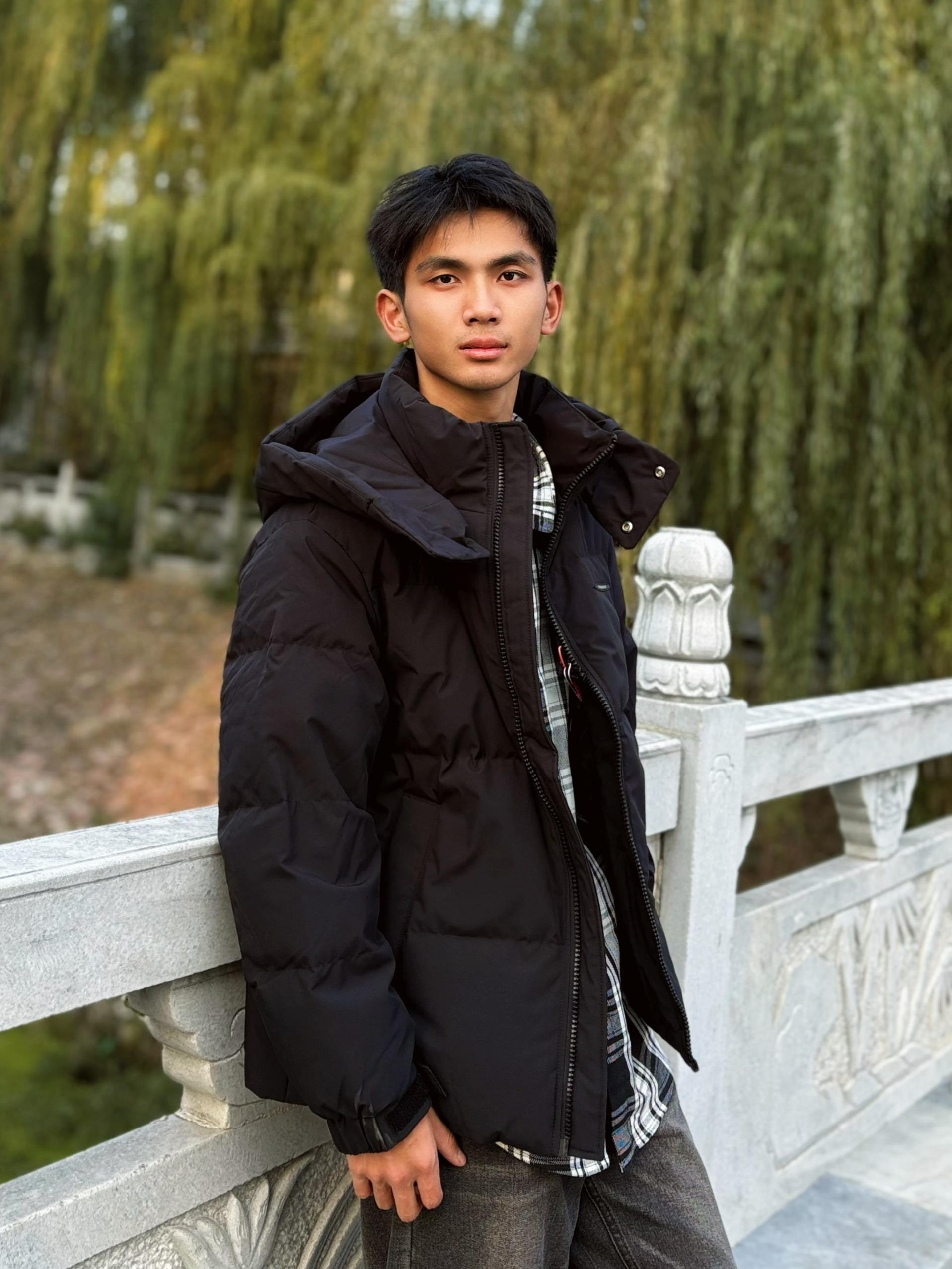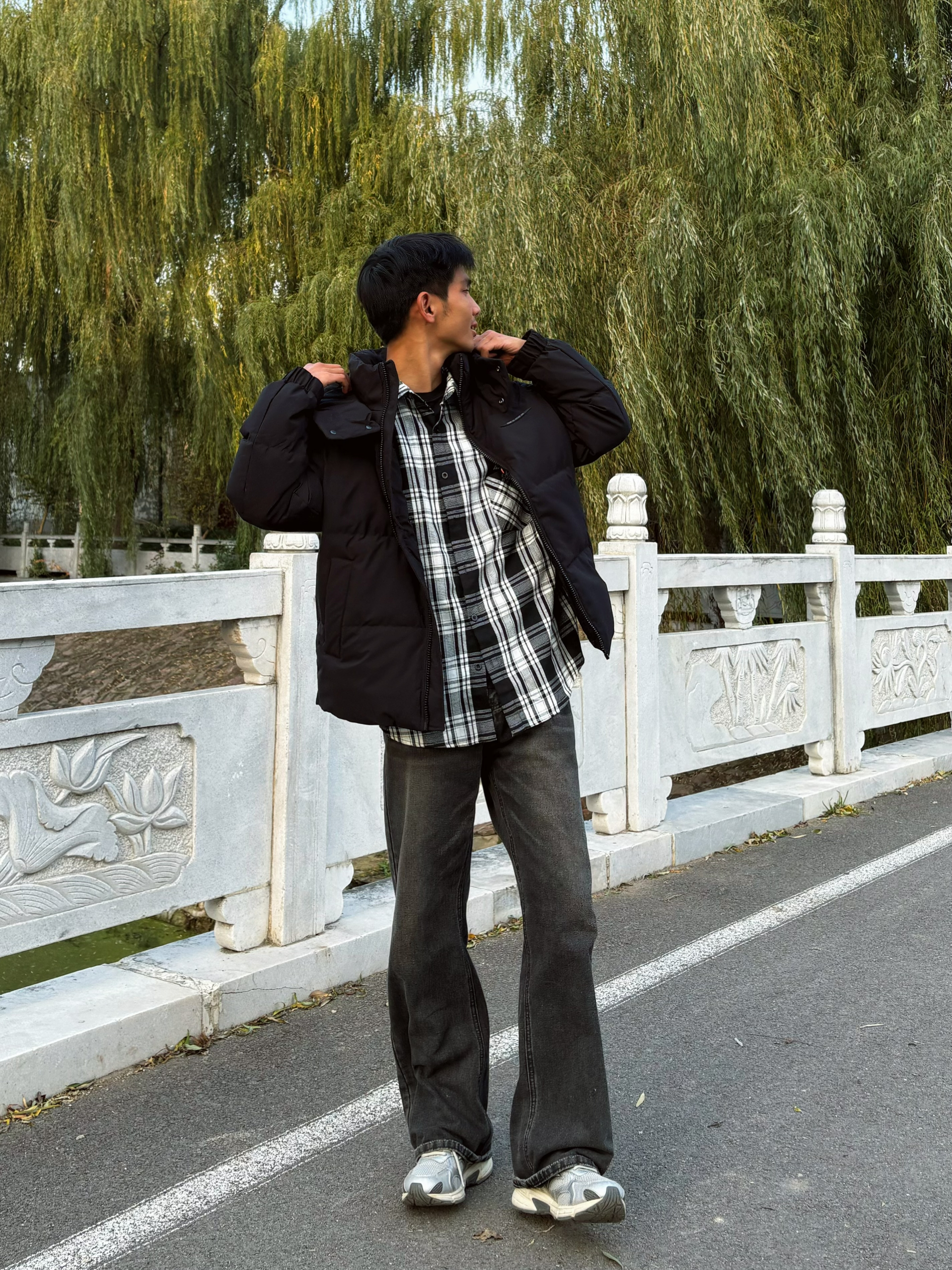 个人感觉鸭鸭这件羽绒服实穿性很强✨ 可拆卸帽子更有设计感了很好看 内搭格子衬衫👔增加层次 搭配黑灰拖地裤视觉上拉长比例~ 版型合身但留有活动空间👍 最喜欢这种简单的衣服显得人很干净🌟 而且早上出门保暖且不臃肿才是上班人想要的