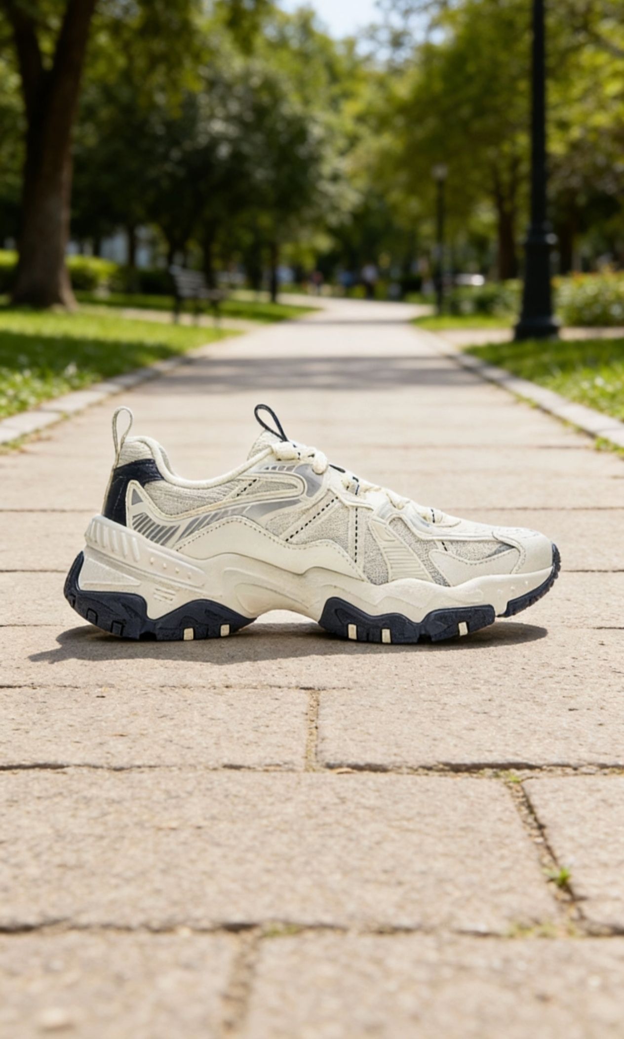 1️⃣ 颜值杀 香槟白×深藏蓝,低饱和撞色=自带“旧时光”滤镜。鞋面是奶敷敷的米白,不是冷白,所以——不!显!脏!我连擦鞋湿巾都省了。 2️⃣ 隐形增高5cm 比例直接三七分,但外底弧线做得缓,远看就是天生大长腿,不会“驴蹄”尴尬。 3️⃣ 踩屎感实测 ▪️云科技中底+记忆鞋垫,8000步打卡,脚底回弹还是Q的 ▪️上周暴雨☔️,橡胶大底在瓷砖地面急刹零打滑,静音不“唧唧”响,办公室社恐友好 4️...