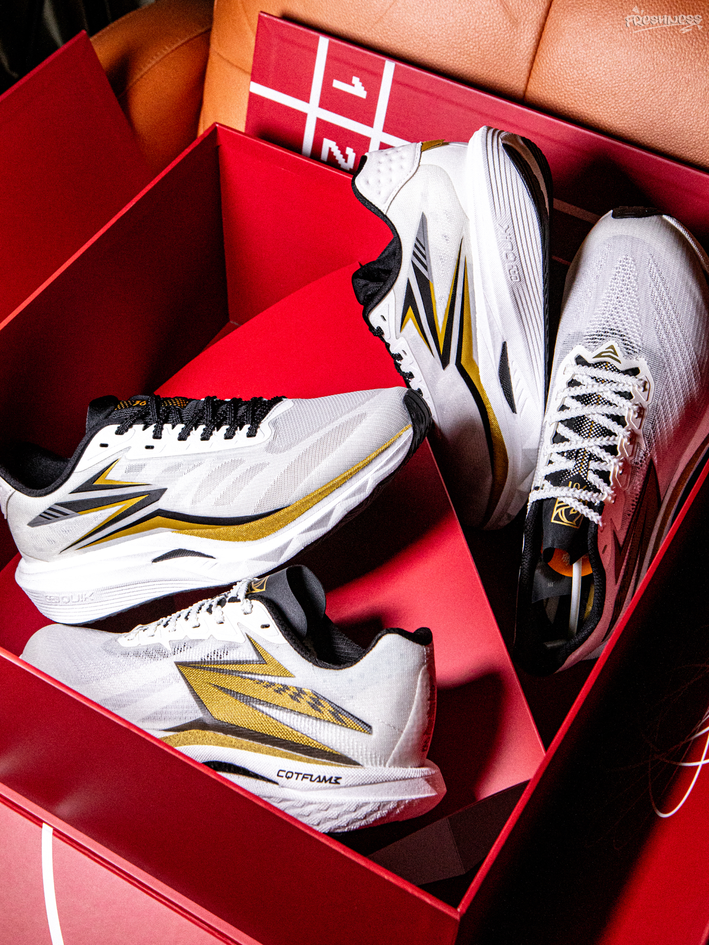 马上要到春节了,各个品牌也都拿出了各自的中国新年主题产品。度子今年推出的这个礼盒也太大了吧,"金榜题名"的主题也是很好的祝福了。这次的礼盒巨大,而且是有机关开合的,设计是真用心了。礼盒内包含了两双跑鞋,分别是飚速5PRO以及赛道小强,两双鞋也都是和主题相同的金榜题名配色。黑白金色三色组合看着是真很不错,除了鞋子之外还有附赠止汗带/软水壶以及跳绳,新的一年在什么地方也都要金榜题名起来呀! #36...