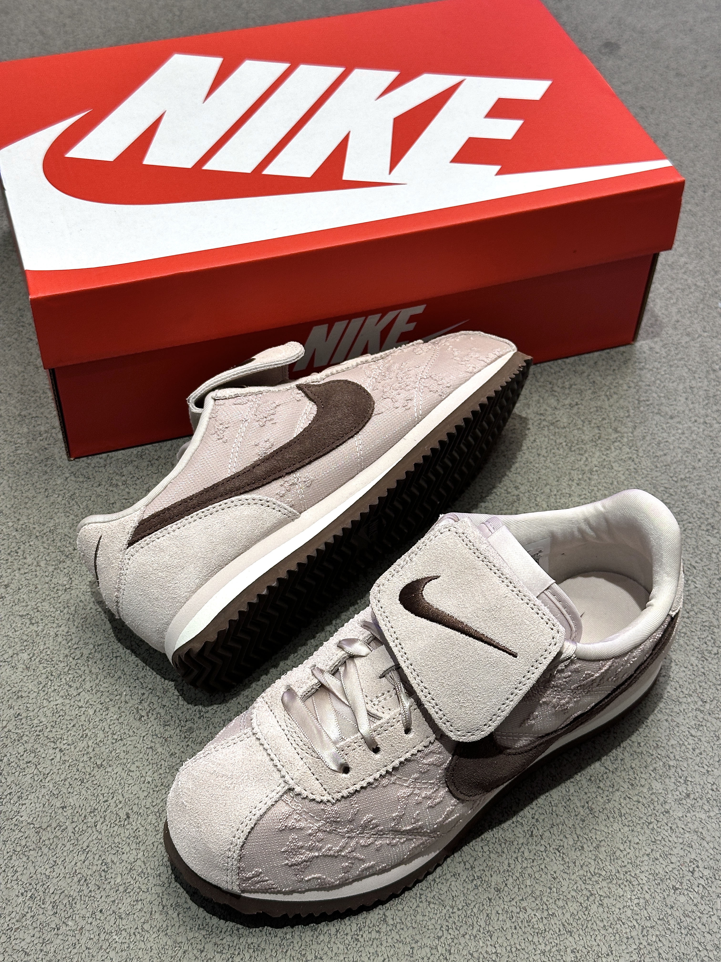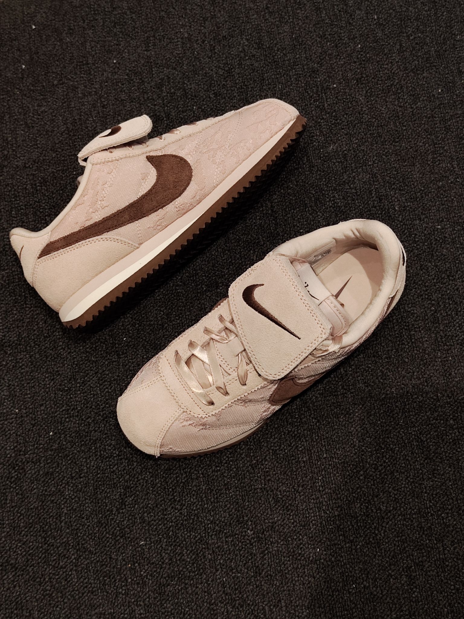 这双Nike阿甘鞋直接把温柔焊在脚上了! 鞋面是浅粉蕾丝拼接麂皮,自带朦胧的柔焦感,配上复古鞋型,甜而不腻。魔术贴设计还能藏住鞋带,懒人狂喜!💖 📌 浅粉蕾丝+麂皮Swoosh 📌 魔术贴设计,穿脱超方便 📌 经典阿甘底,复古又舒适 ✨ 温柔甜妹必冲,这双就是行走的春日浪漫!