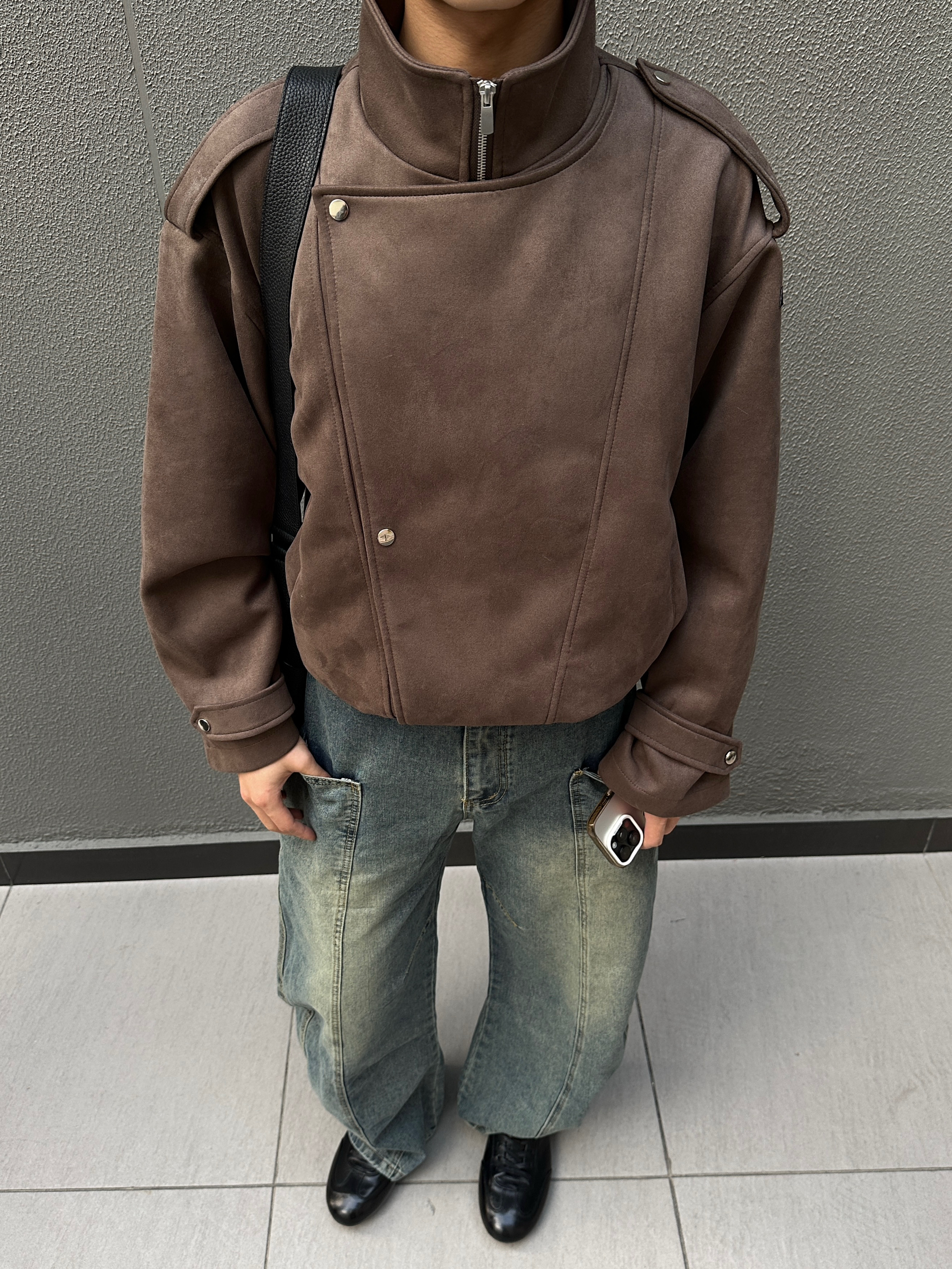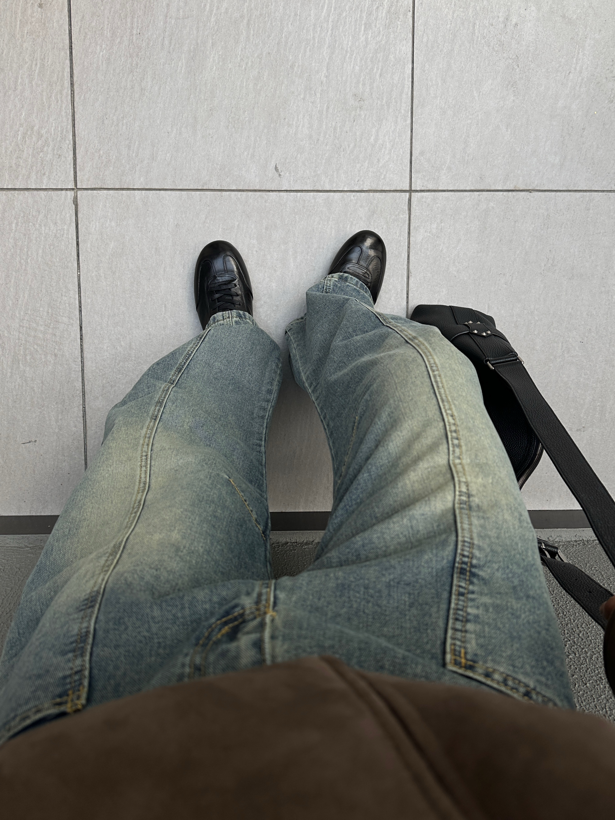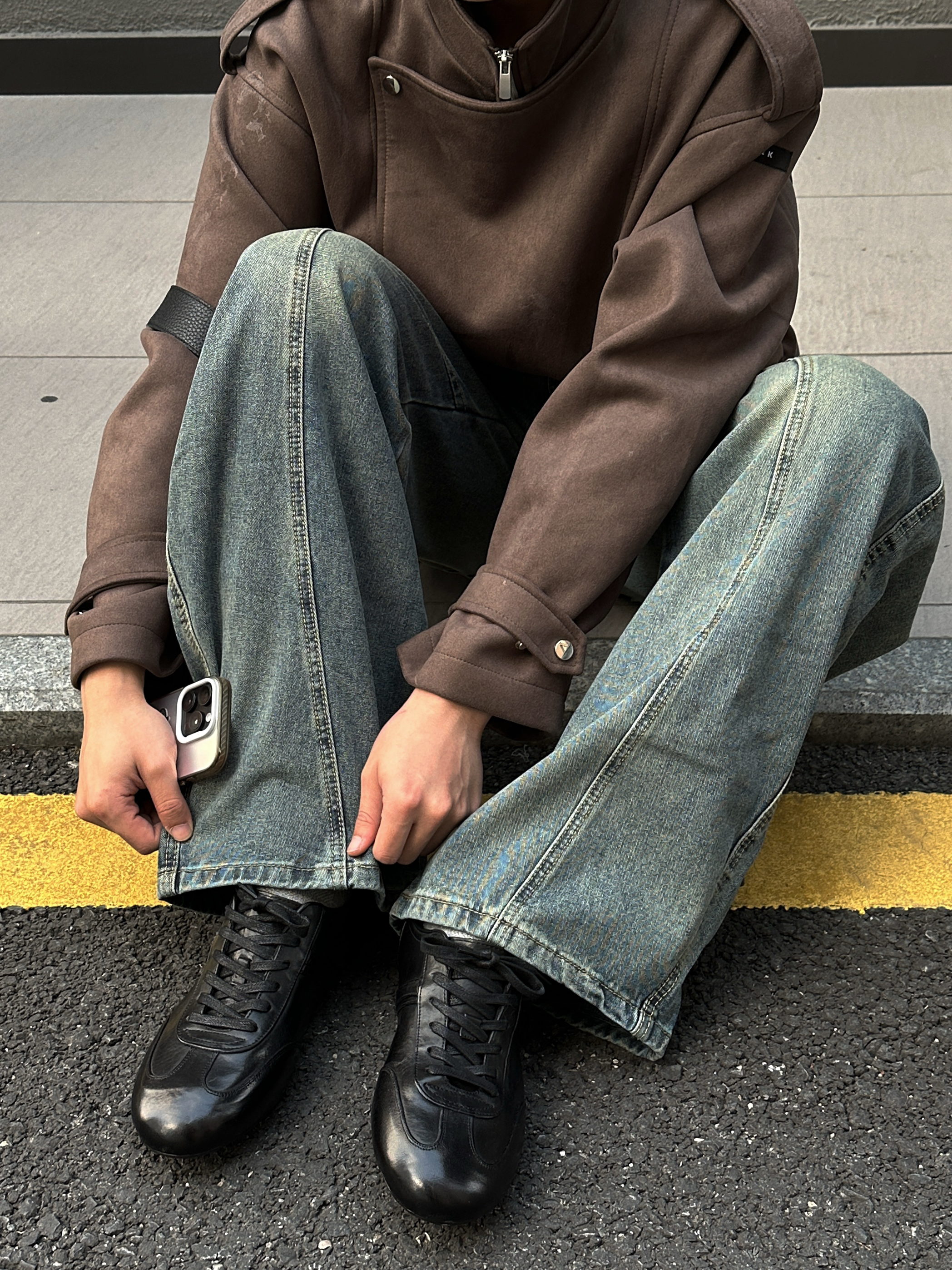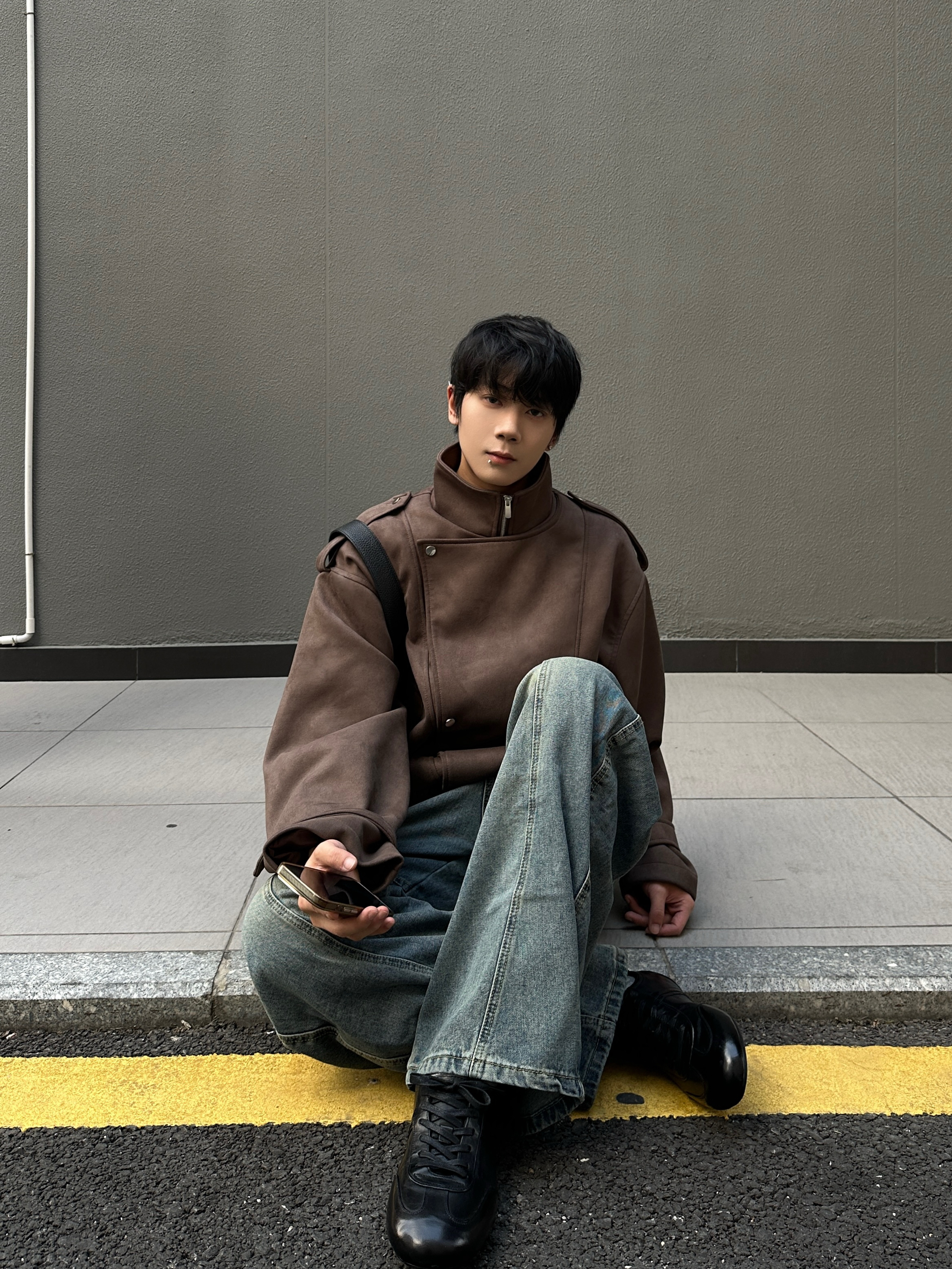 上衣是美式复古PU皮夹克 往身上一套就有街头那味儿了 宽松的版型不仅藏肉还显气场 搭做旧拼接口袋渐变牛仔裤 复古蓝调中和皮衣的厚重感 弯刀的版型还能藏住腿型小缺点 鞋子是马皮的黑色德训鞋 日常出街非常百搭 整套穿下来痞帅复古感拉满 出门溜达回头率直接爆棚!
