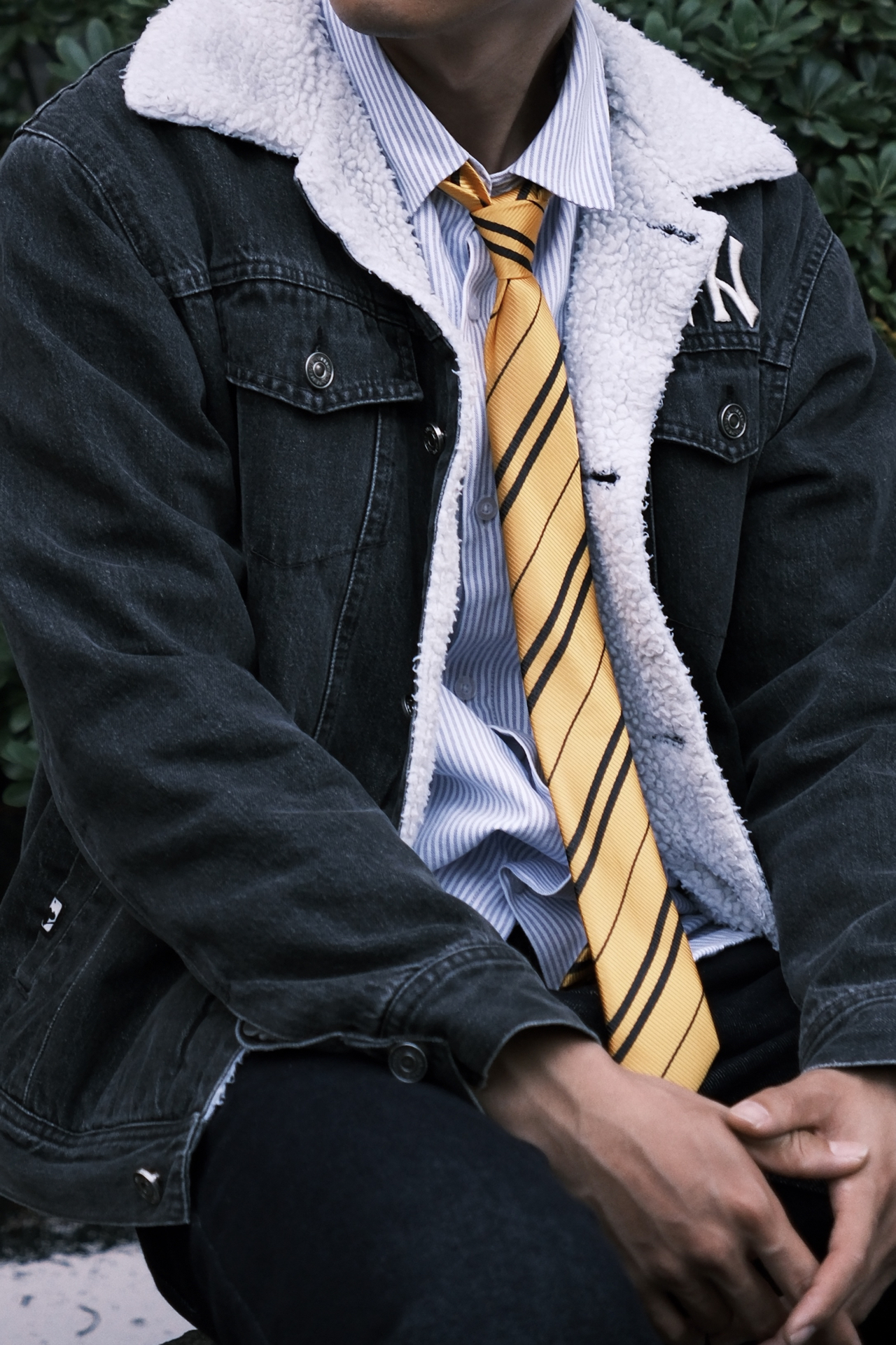 上身选择了蓝色衬衫搭配黄色领带,配色清爽又有亮点,外面叠穿一件棉夹克,保暖性在线的同时也不会显得臃肿。 下身搭配直筒牛仔裤,线条利落,对腿型的包容度很好。脚上是aj13熊猫,冬日必备的保暖aj! 再戴上一顶鸭舌帽,不仅增加整体造型的层次感,也能很好地修饰脸型。 整体穿搭干净耐看,兼顾了保暖性与日常出街的舒适度~ #基础款拿捏冬季穿搭