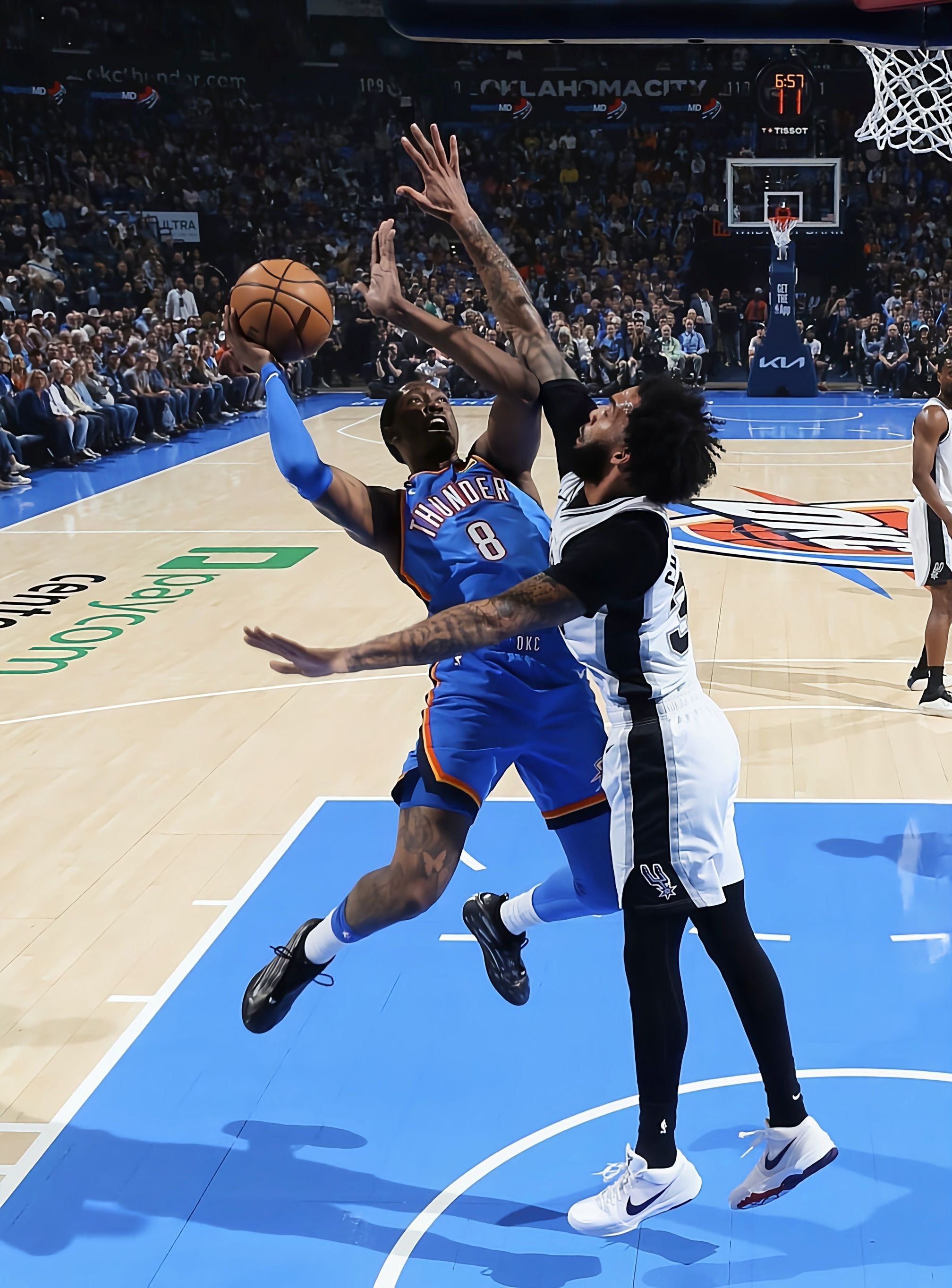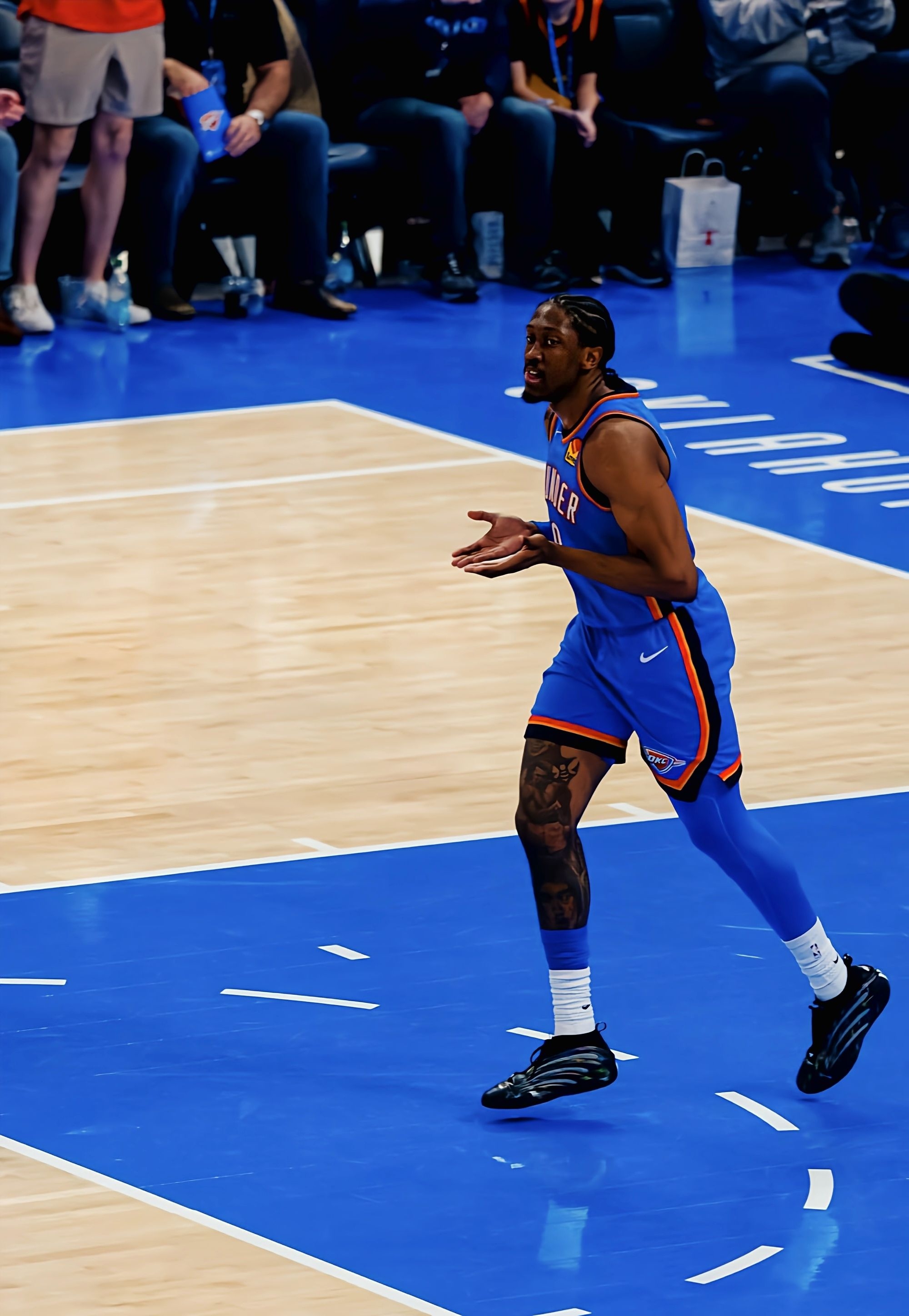 雷霆主场打马刺的比赛,最终雷霆119-98轻取对手,整场比赛看下来杰伦·威廉姆斯的表现依旧稳,而且赛后他的采访发言还挺有想法的。 杰伦这场出战30分钟,15投9中拿下20分3助攻2抢断,进攻端的突破和终结效率在线,防守端还贡献了2次抢断,不管是持球攻还是无球跑位,都给马刺的防线制造了不少麻烦。不过比起数据,我更注意到他脚上的鞋——这双adidas Harden Vol.9 PE黑闪电配色太吸睛...