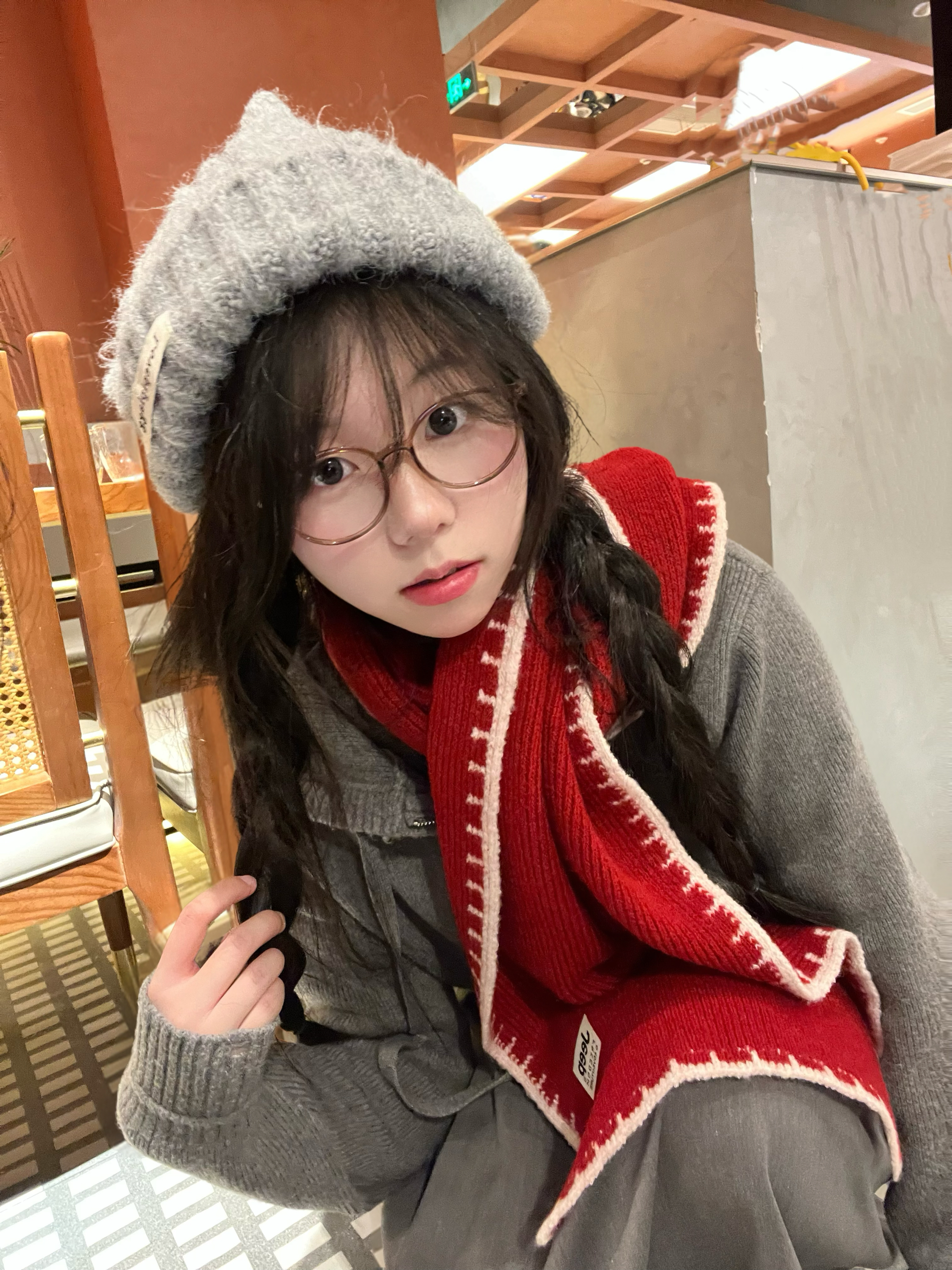 我带的这条jeep 红色针织面料软乎乎的 贴脖子上 很舒服 宽度刚好能绕两圈 保暖又显层次感 新年戴这个红色 亮眼吸睛 ❤️